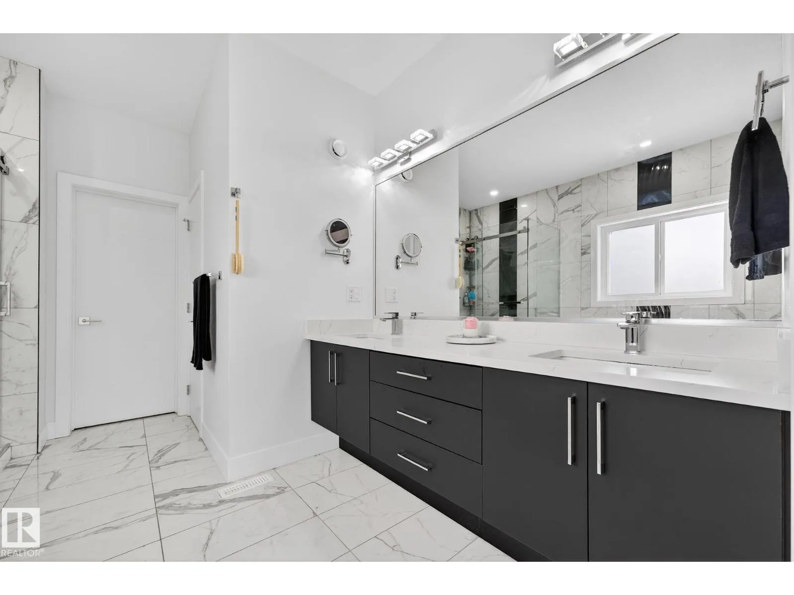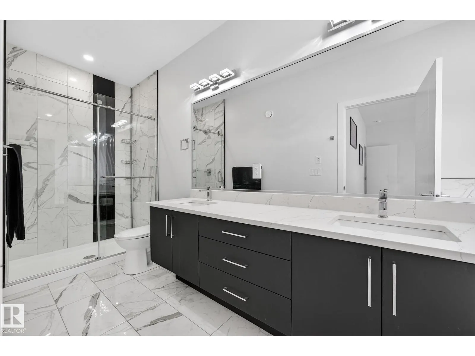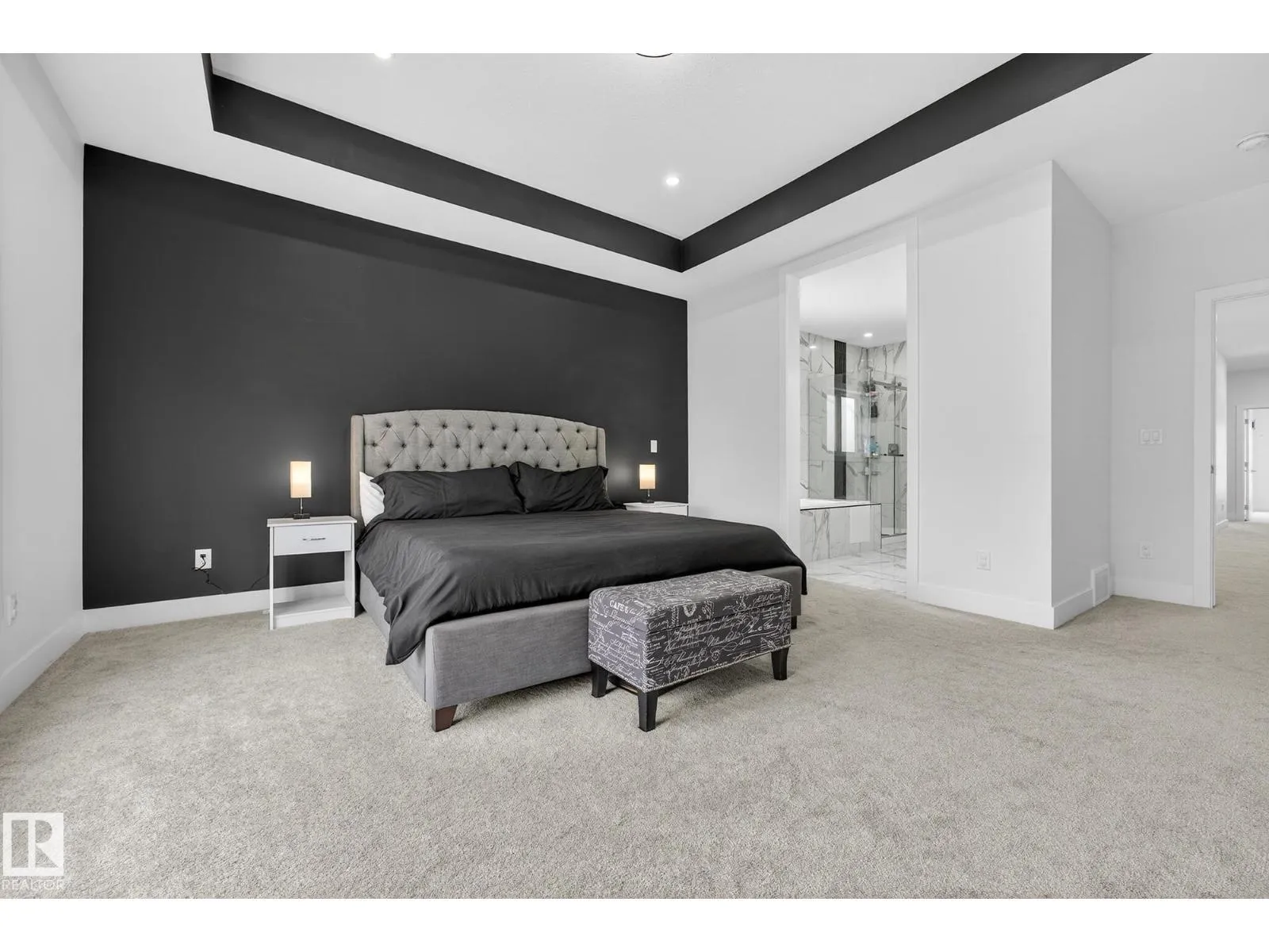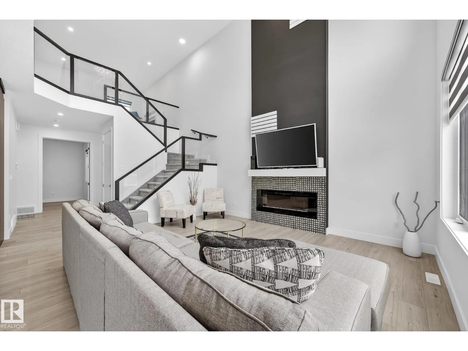 Sleek, modern and beautifully customized, this stunning home in sought-after Triomphe Estates offers luxury living on a pie-shaped lot tucked into a quiet cul-de-sac, just steps from walking trails and schools. The open-to-below main floor showcases soaring ceilings and expansive windows that flood the home with natural light. A versatile main floor office/den - ideal as a guest bedroom - is paired with a full bathroom for added flexibility. The designer kitchen features quartz countertops, matte black cabinetry, a butler's kitchen/walk-through pantry, and seamless flow into the spacious mudroom with access to the triple tandem garage. A convenient side entrance leads to the fully finished basement, complete with a fifth bedroom, theatre-style setup, and dedicated gym area. Upstairs offers two impressive primary suites, each with its own ensuite, plus two additional oversized bedrooms, a generous bonus room, and an upper-level laundry room. A rare blend of style, space, & function in one remarkable home! (id:27476)