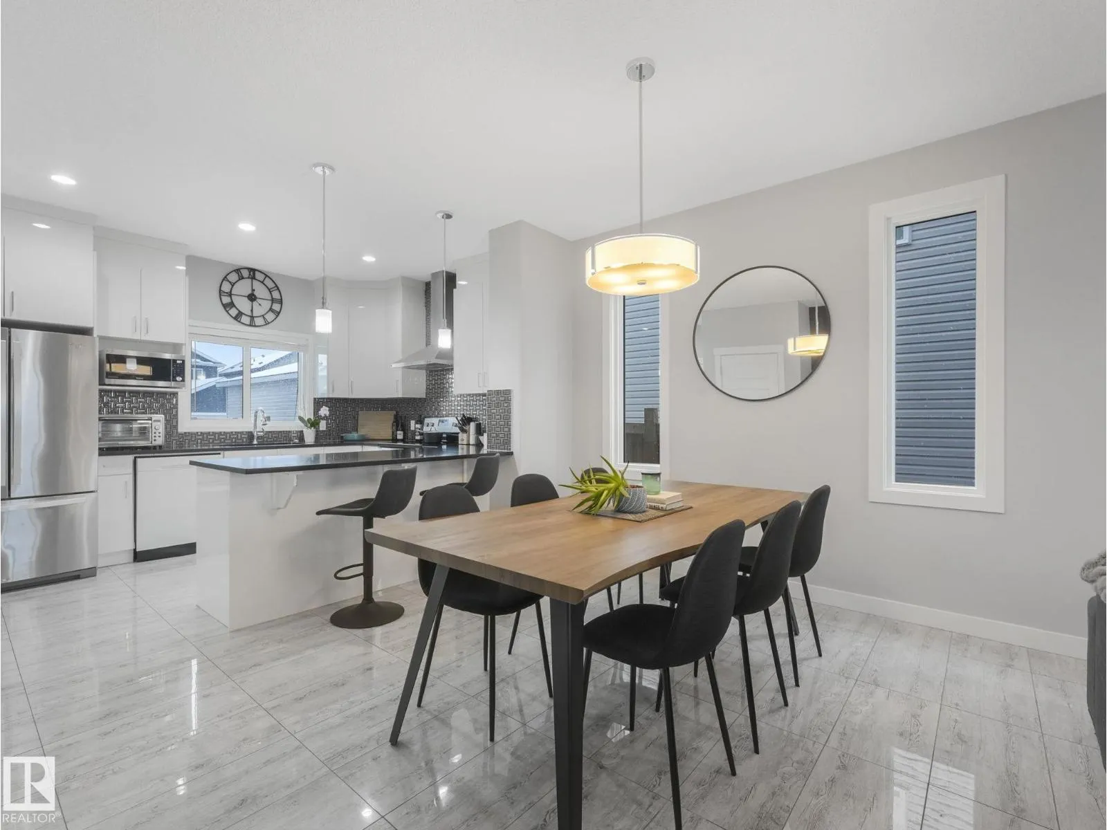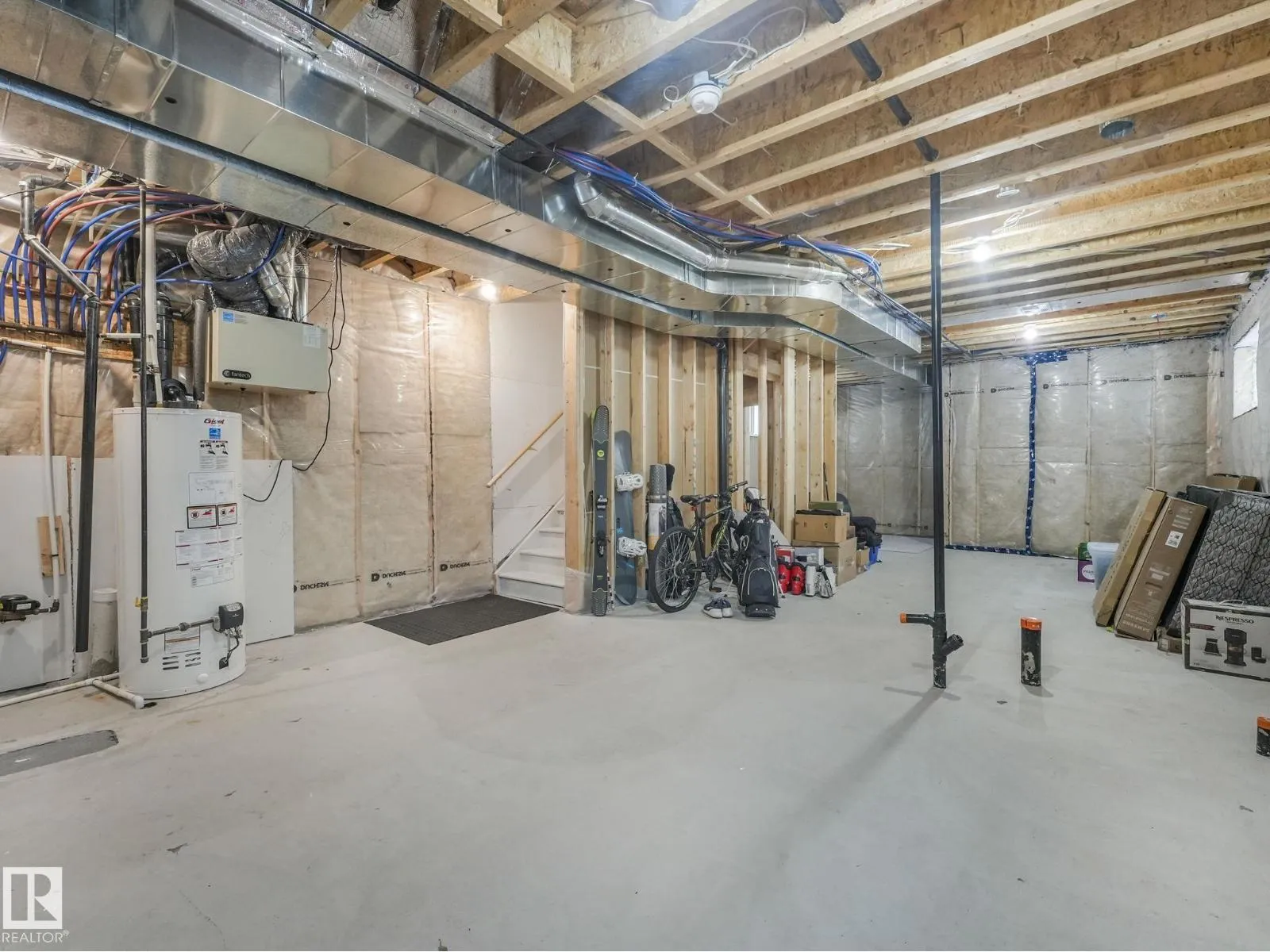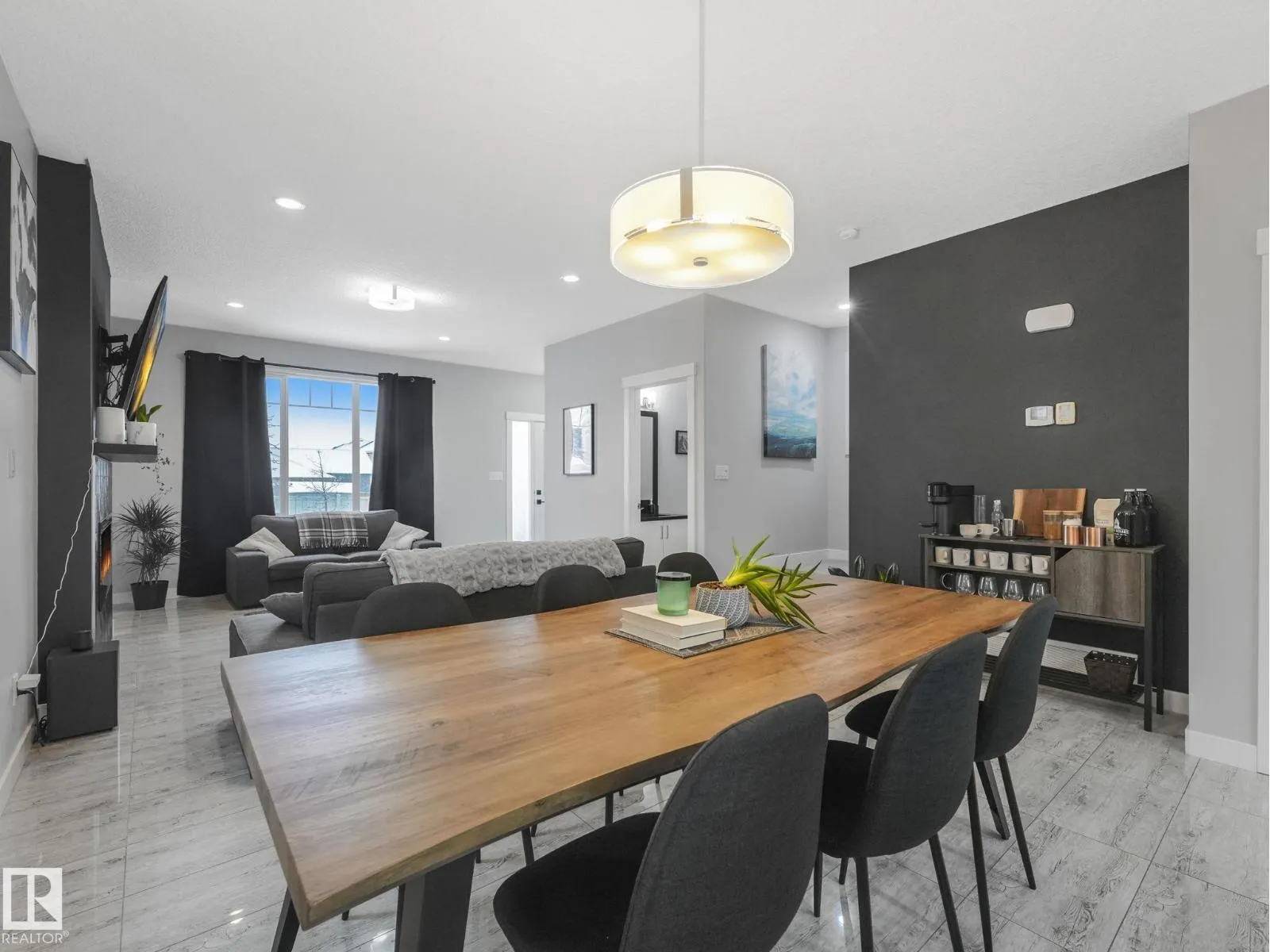 Built in 2017, this well-maintained two-storey offers just under 1,600 sq ft of bright, functional living space. The main floor features full-height white cabinetry, granite countertops, stainless steel appliances, and a large island that anchors the open layout. The dining area flows seamlessly into the living room with a sleek electric fireplace. Upstairs, the primary suite features a coffered ceiling, a walk-in closet, and an ensuite double vanity. Two additional bedrooms and a full bath complete the level. The backyard is designed for enjoyment, a private deck with built-in bench seating and a large concrete pad ideal for entertaining. An unfinished basement ready for your vision. (id:27476)