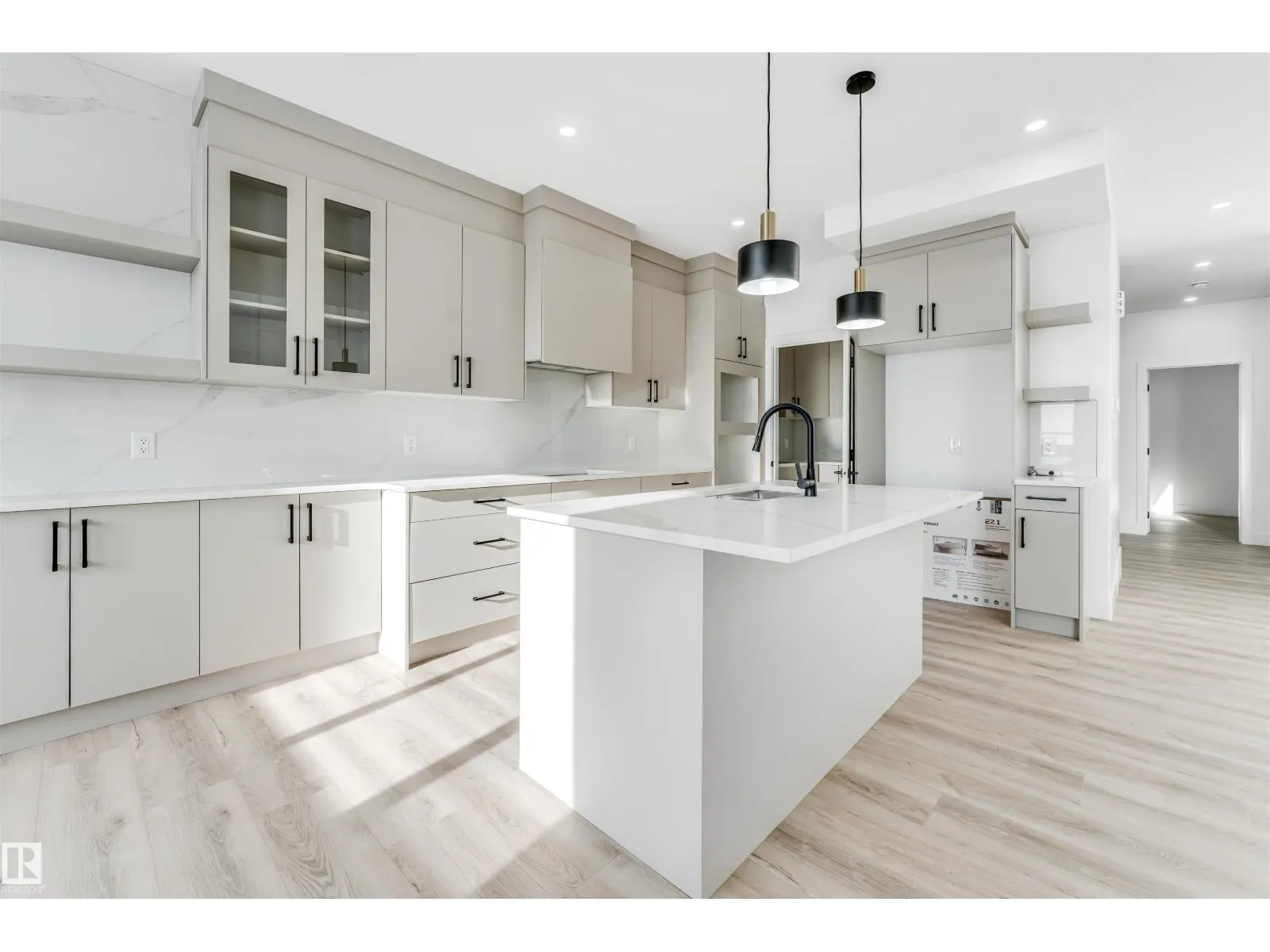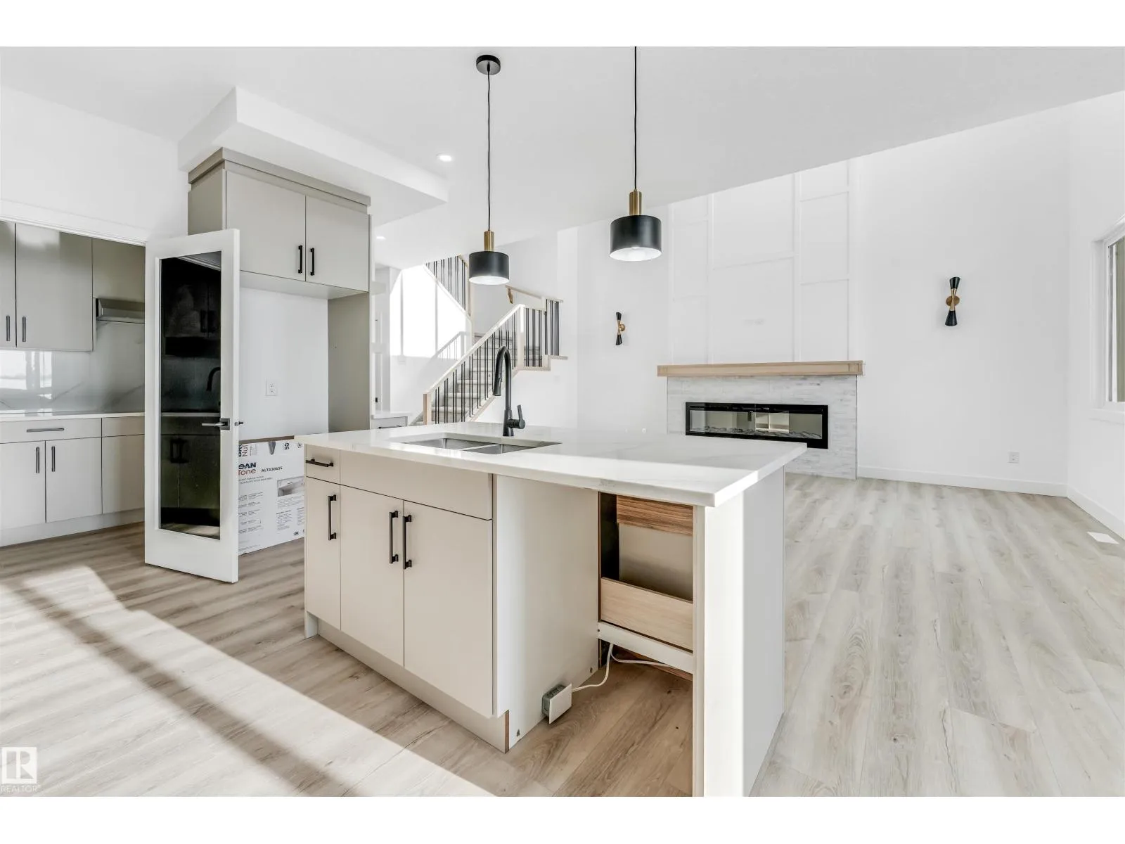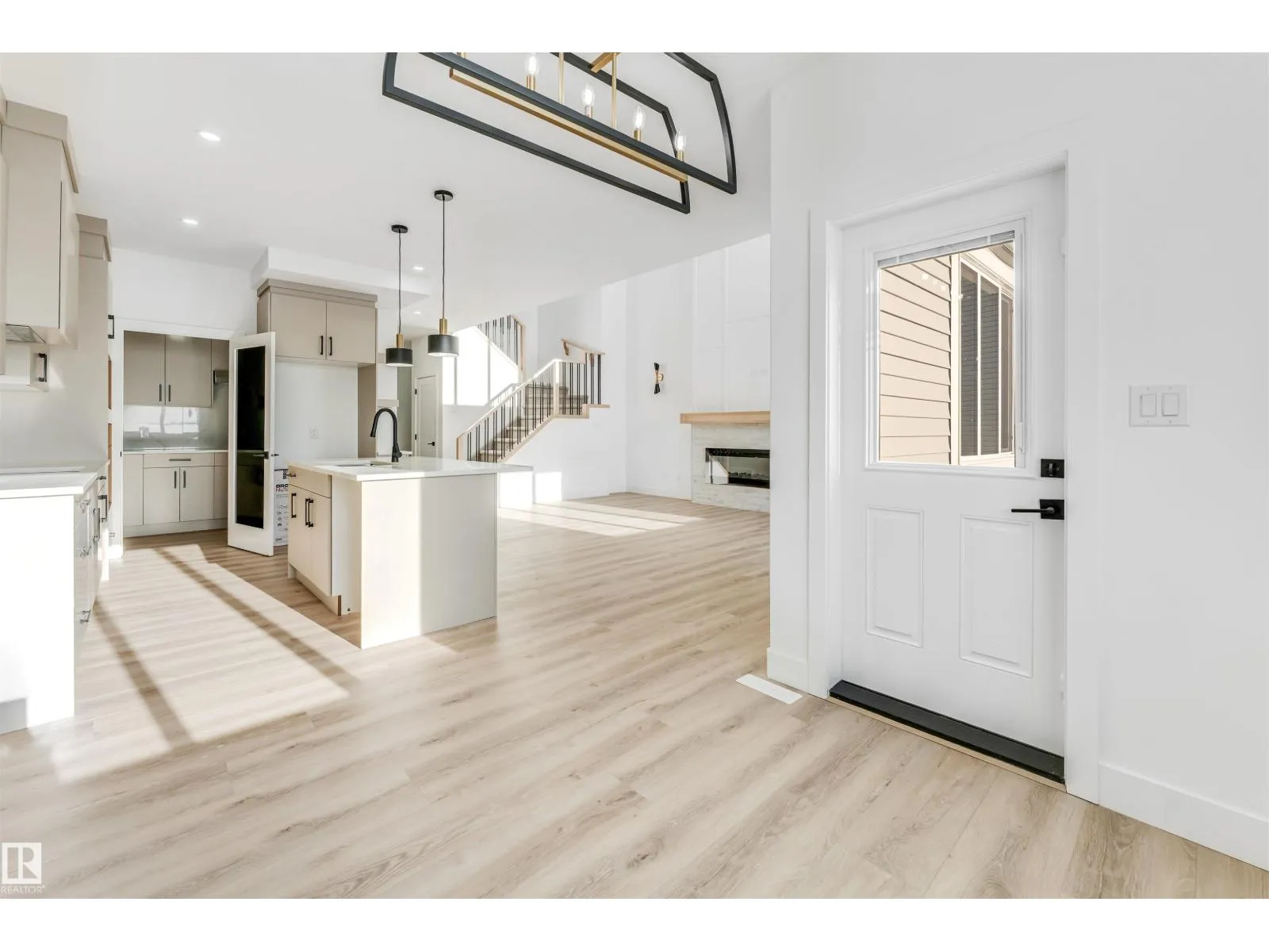 Welcome to this stunning 2,380 sq ft brand-new home situated on a pie-shaped 5,700+ sq ft lot, offering a spacious backyard perfect for outdoor enjoyment. Conveniently located just a short 2-minute walk to the school, this home combines comfort and practicality in an ideal setting. Thoughtfully designed, the main floor features a bedroom and full bathroom, perfect for guests or extended family. The fully extended kitchen is complemented by a dedicated spice kitchen, providing both functionality and style. The impressive open-to-above living area allows an abundance of natural light to fill the space throughout the day. Upstairs, youâll find four additional bedrooms, including a luxurious primary suite with double-door entry leading into the ensuite and seamlessly connected walk-in closet. Premium finishes are showcased throughout the home, including quartz countertops, luxury vinyl plank flooring, elegant spindle railings, and feature walls, delivering a refined and modern living experience. (id:27476)