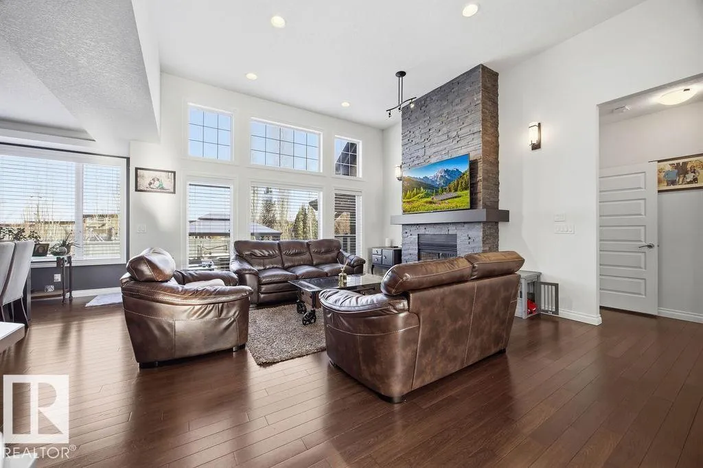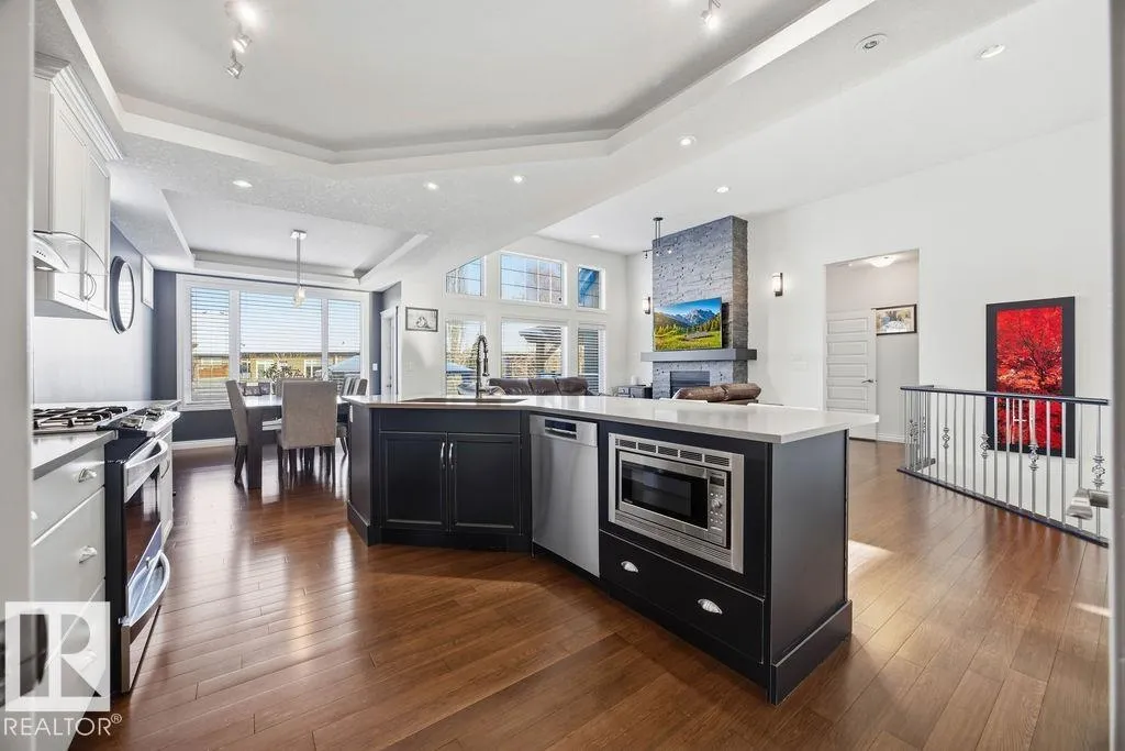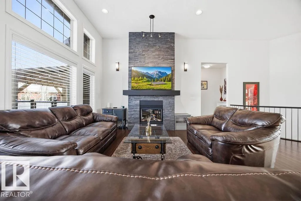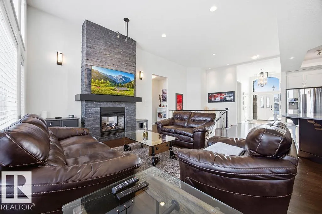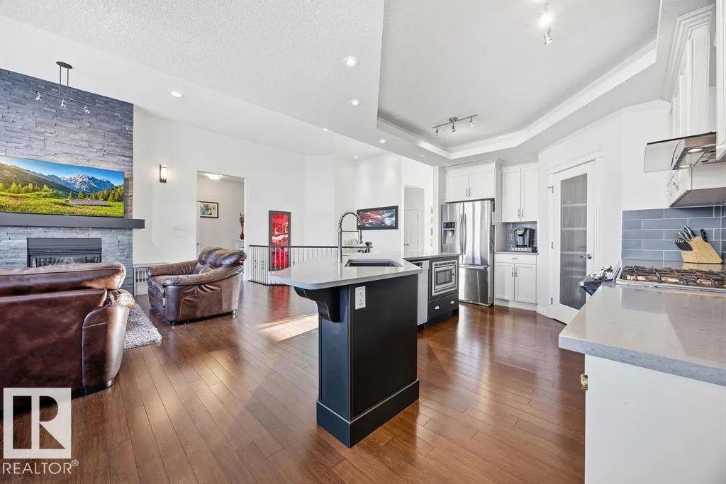 Lovely 1902 sq ft Bungalow with DREAM CAR TRIPLE GARAGE and fully fin basement located in Place Chaleureuse.Bright open design with coffered ceilings and hardwood galore on your main floor.Enjoy your dream kitchen with high end appliances,corner pantry,large center island,quartz tops and elegant back splash.Your dining overlooks a large mtce free deck with glass rail and enormous back yard with underground sprinkler with gazebo,pergola,hot tub and stamp concrete patio.Your living room has a showcase stone fireplace and there is also a double door executive den.Your primary bdrm has a fireplace and gorgeous ensuite with his & her sinks and glass shower.There is a 4 pce bath and 2nd bedroom with convenience of main floor laundry.Down stairs has in floor heat,2 additional bdrms,4 pce bathroom and a large recroom with wet bar and a 120 in screen with projector for movie nights.Other features include central air,water softner,water filtration system,heater in garage and aggregate driveway. A must SEE. (id:27476)