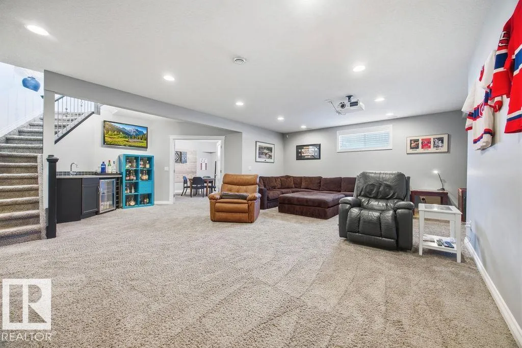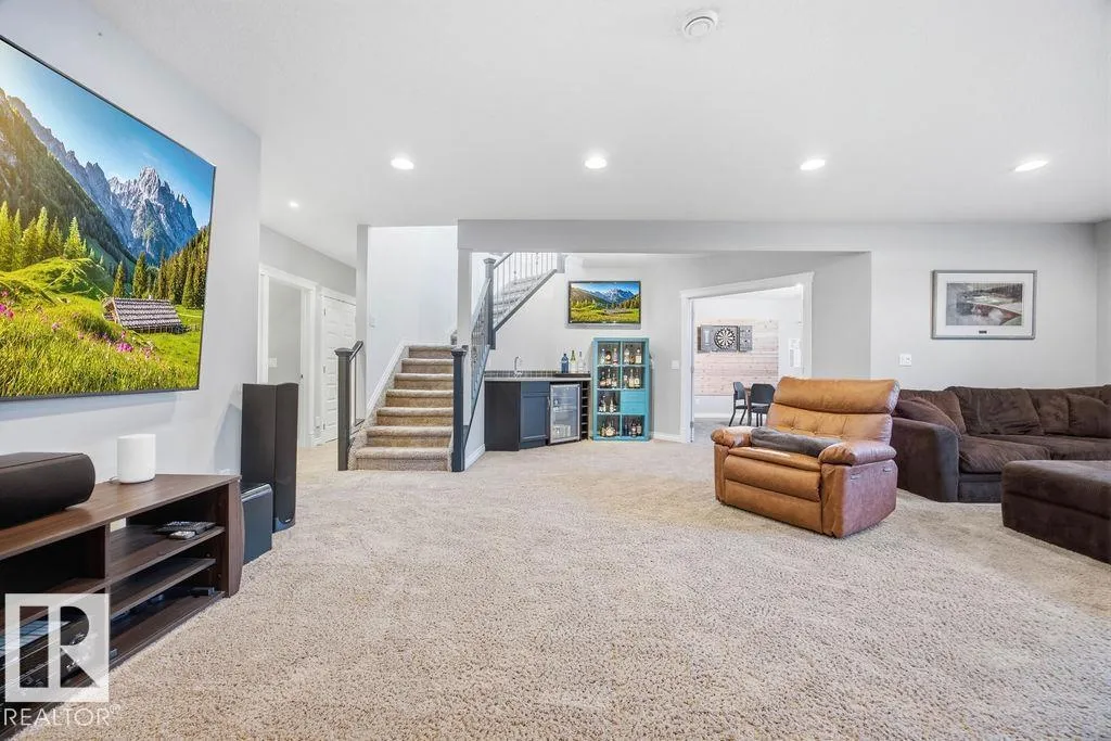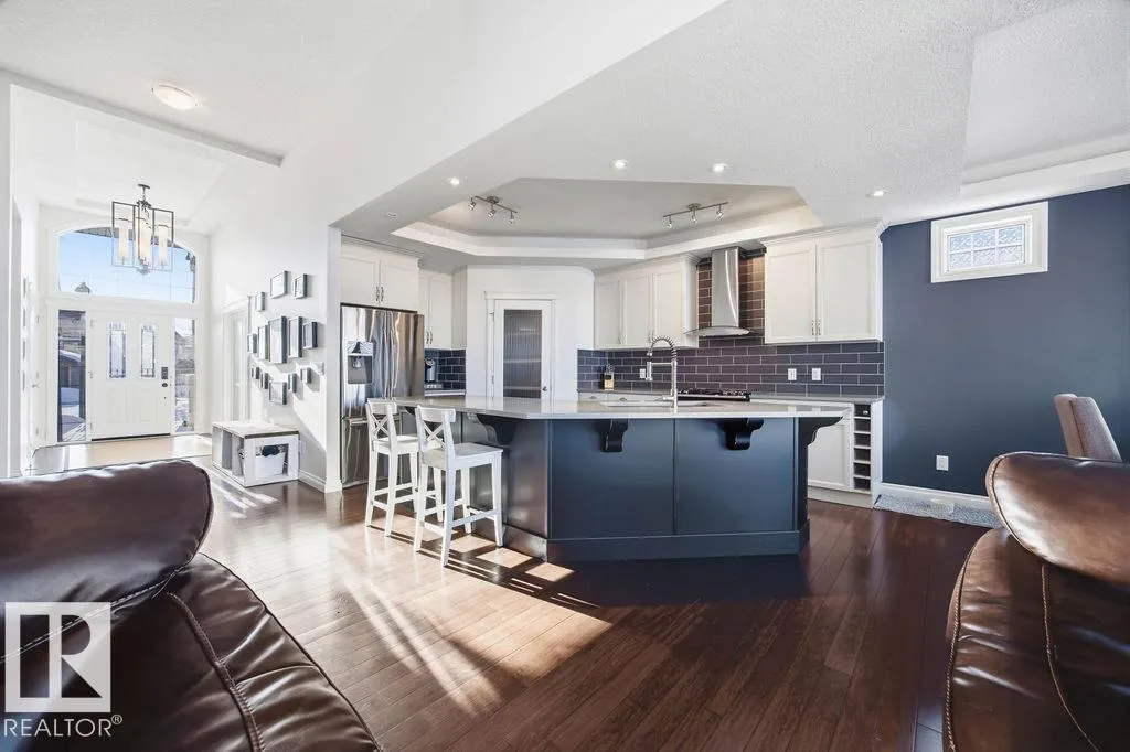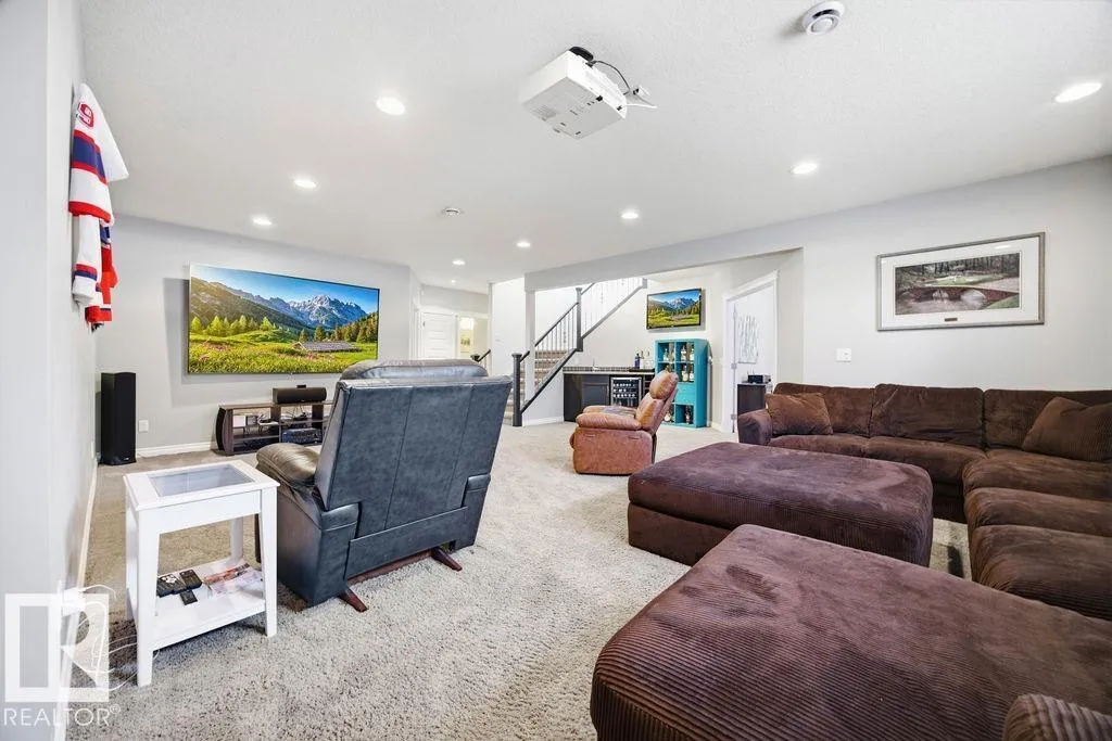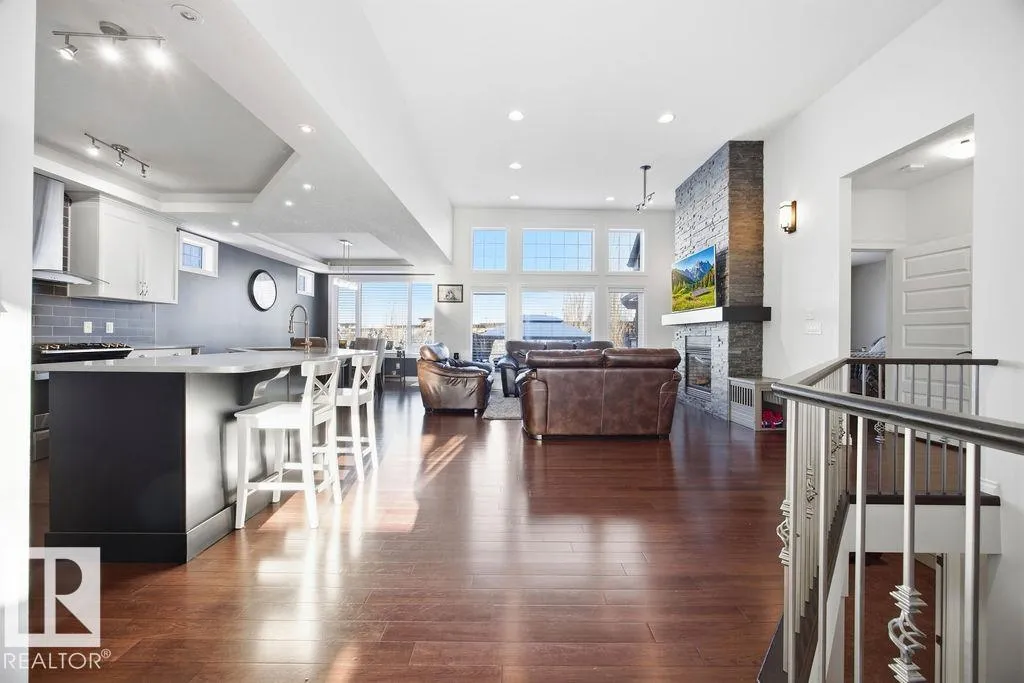Lovely 1902 sq ft Bungalow with DREAM CAR TRIPLE GARAGE and fully fin basement located in Place Chaleureuse.Bright open design with coffered ceilings and hardwood galore on your main floor.Enjoy your dream kitchen with high end appliances,corner pantry,large center island,quartz tops and elegant back splash.Your dining overlooks a large mtce free deck with glass rail and enormous back yard with underground sprinkler with gazebo,pergola,hot tub and stamp concrete patio.Your living room has a showcase stone fireplace and there is also a double door executive den.Your primary bdrm has a fireplace and gorgeous ensuite with his & her sinks and glass shower.There is a 4 pce bath and 2nd bedroom with convenience of main floor laundry.Down stairs has in floor heat,2 additional bdrms,4 pce bathroom and a large recroom with wet bar and a 120 in screen with projector for movie nights.Other features include central air,water softner,water filtration system,heater in garage and aggregate driveway. A must SEE. (id:27476)