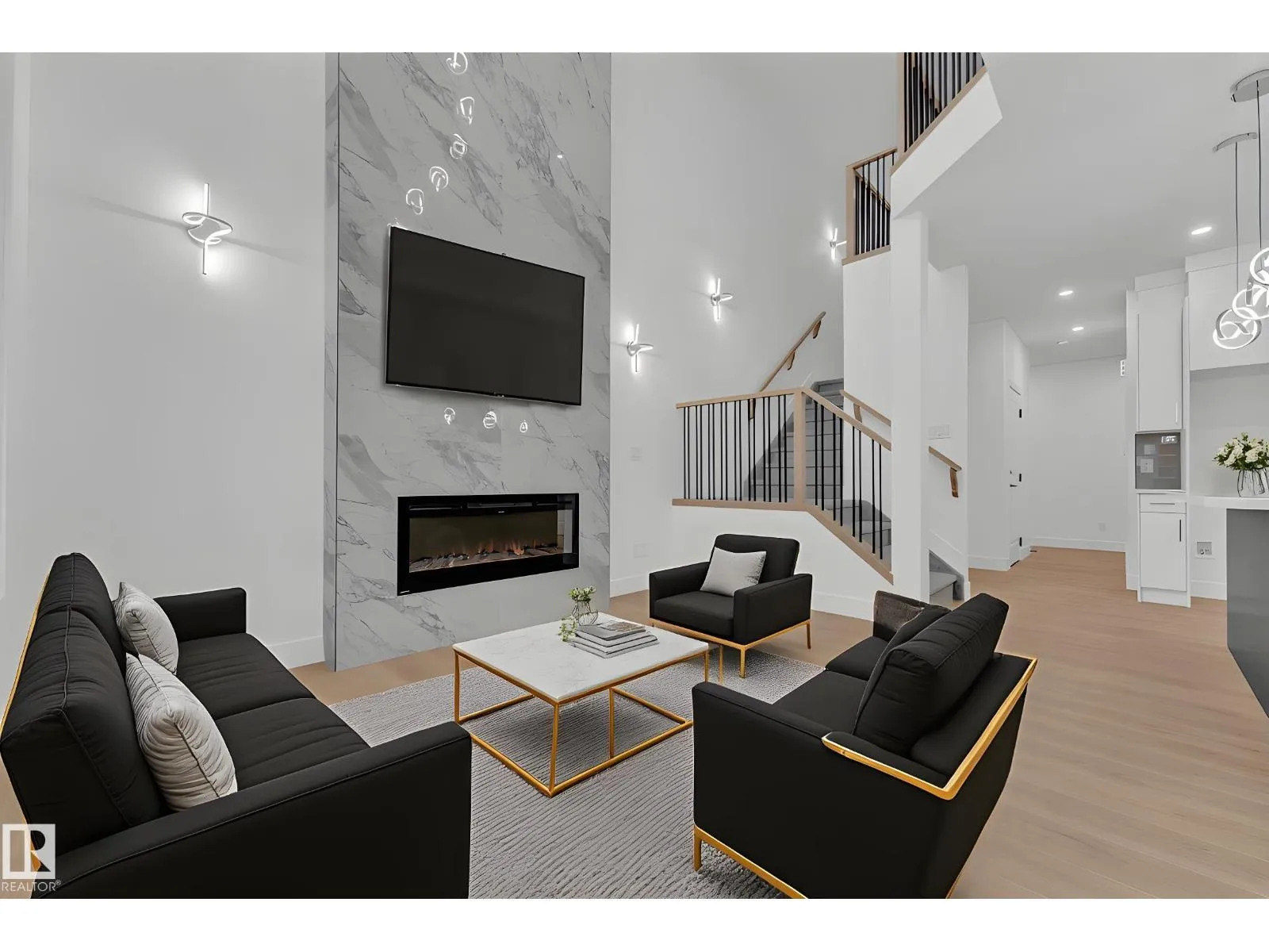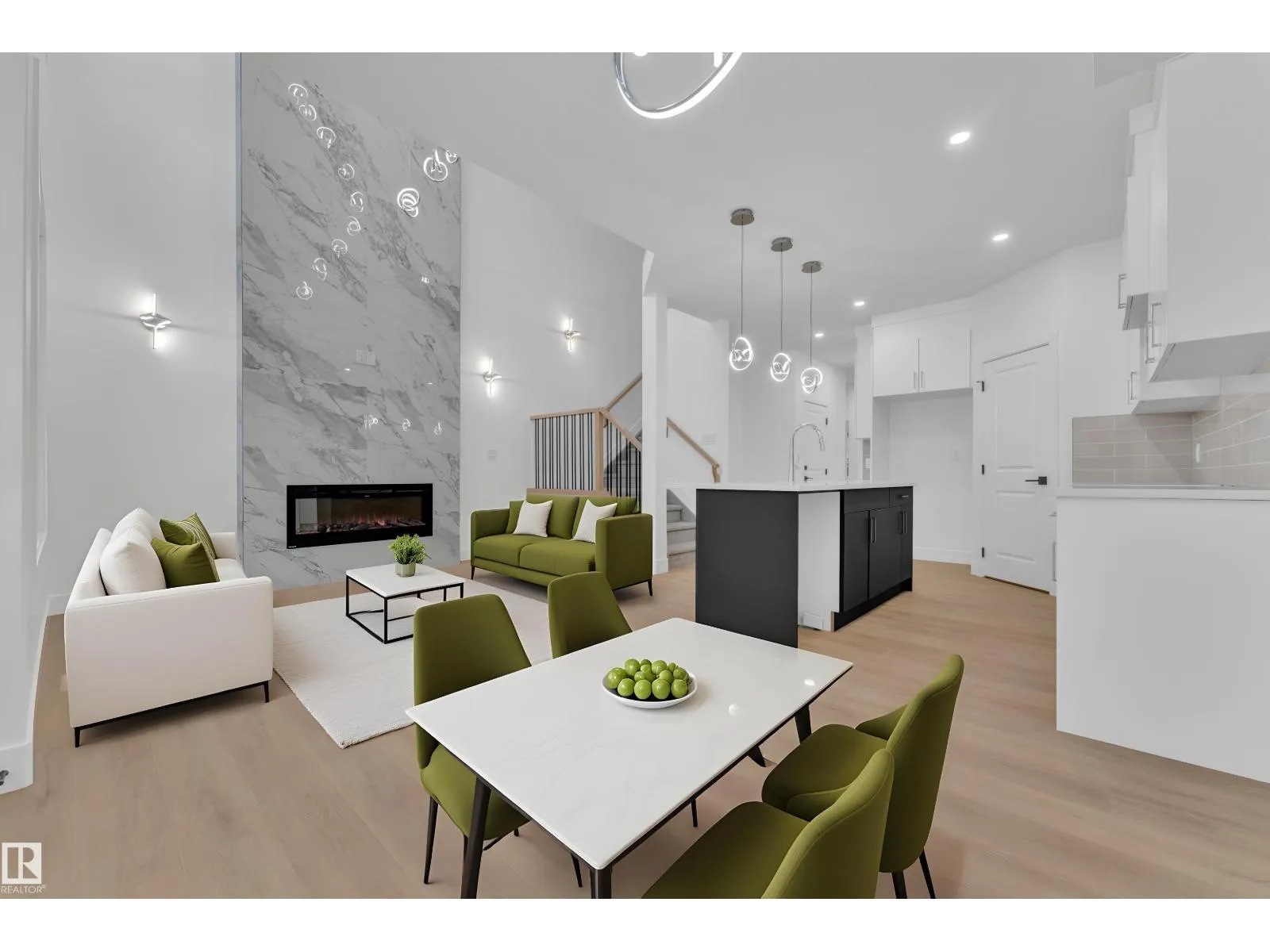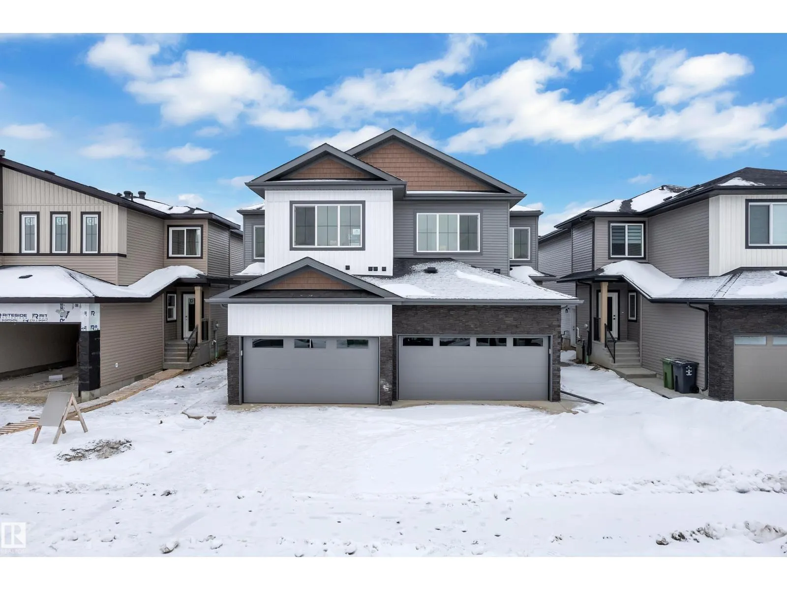 Welcome to this beautifully designed duplex in the growing community of Azur, Beaumont. Offering 1,782 sq ft of modern living space, this home features a bright open-to-above living area, creating a spacious and elegant atmosphere. The modern kitchen with pantry flows into a generous dining area, perfect for family gatherings. The main floor includes a full bedroom and full bath, ideal for guests or extended family. A separate side entrance offers excellent potential for a future basement suite. Upstairs features 3 spacious bedrooms, including a primary suite with walk-in closet and 4-piece ensuite, plus convenient upstairs laundry. Stylish feature walls add a modern touch throughout the home. Located in a family-friendly neighborhood, just steps from a future school and upcoming commercial plaza. ? Perfect for families or investors in one of Beaumontâs fastest-growing communities. (id:27476)