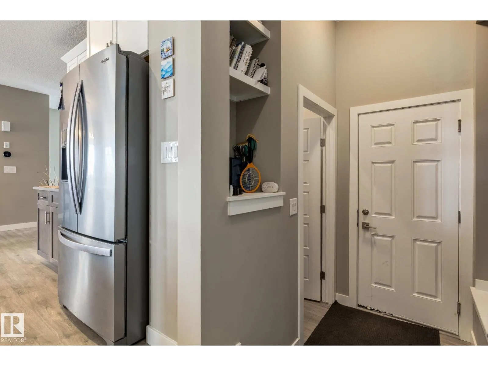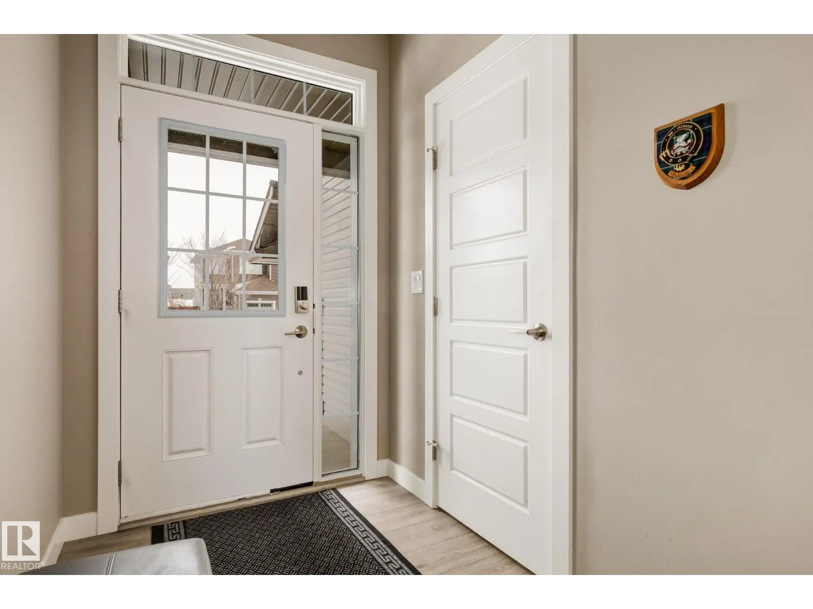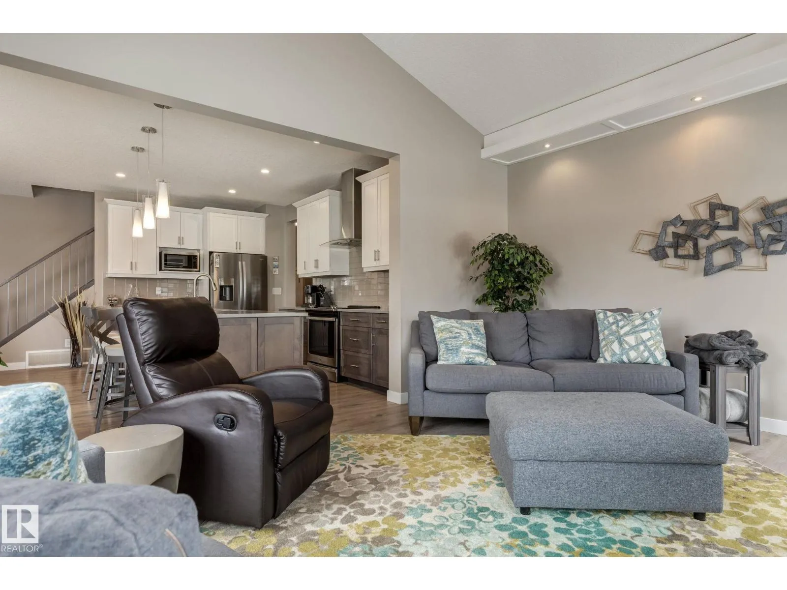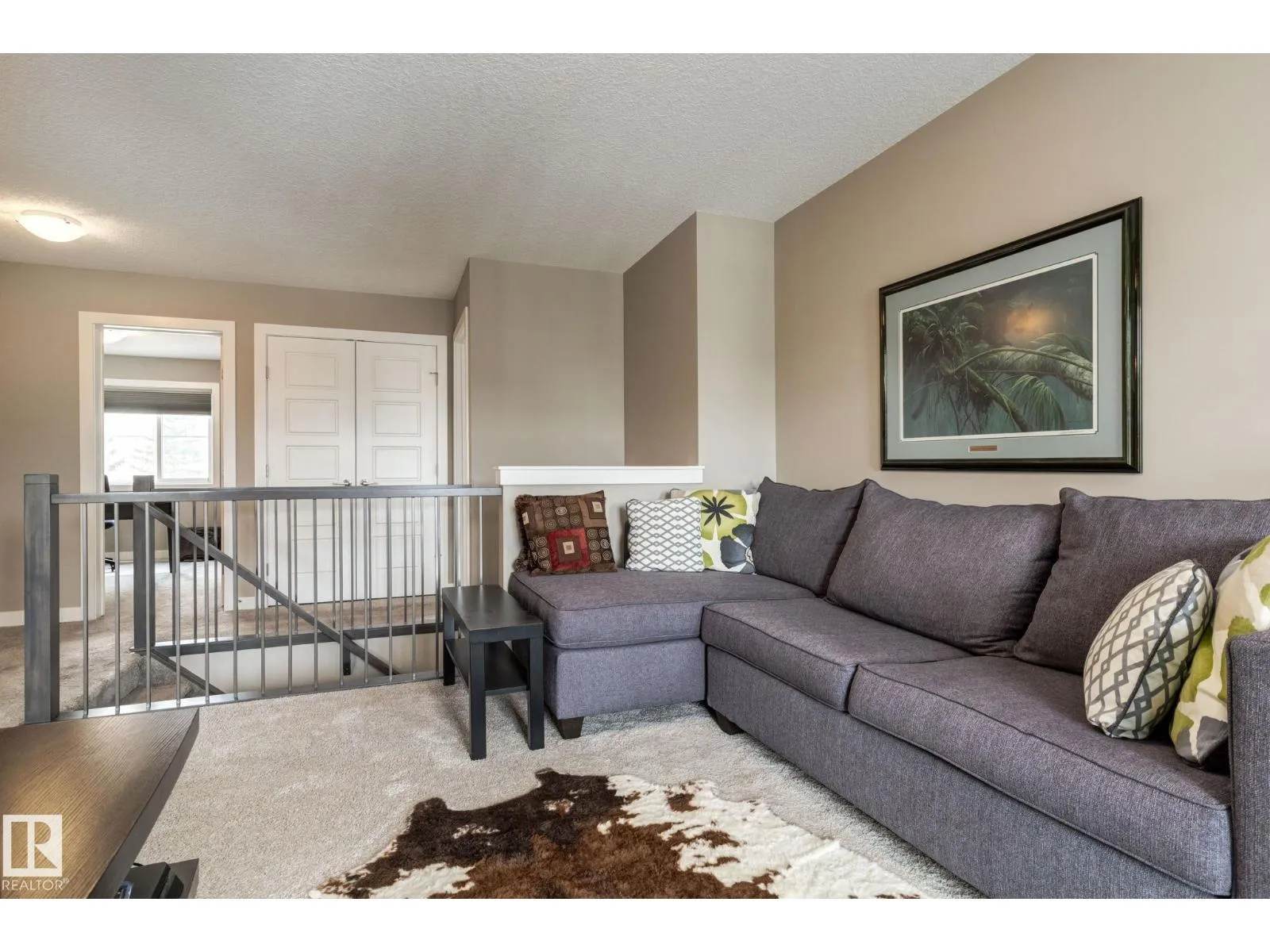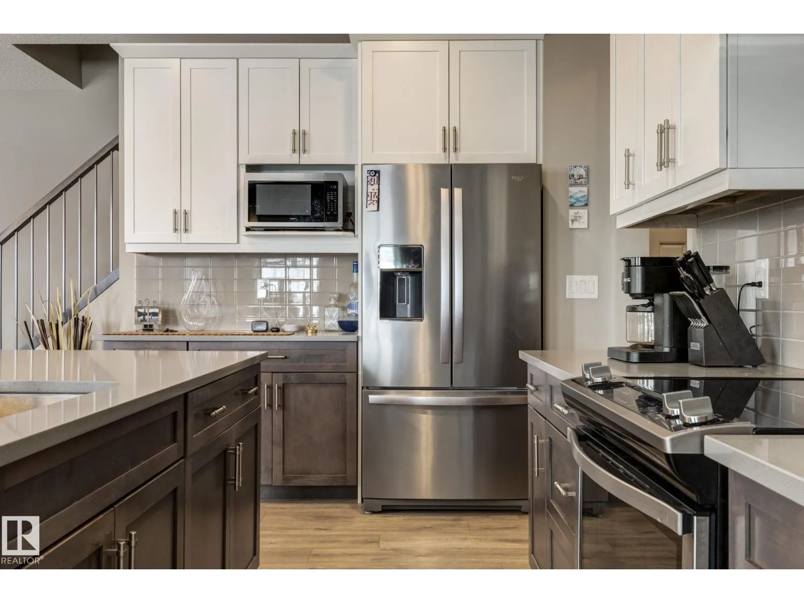 Welcome to this stylish two-storey home with fantastic curb appeal and an extra-wide, heated double garage. The bright, open-concept main floor features a modern kitchen with white uppers, dark lowers, subway tile backsplash, stainless appliances, and a large island with seating. The living room offers a stone-surround fireplace and big windows for natural light, while the dining area opens to the backyard. Upstairs, the primary bedroom includes a large ensuite with double sinks and a custom shower, plus access to an upper patio perfect for morning sun. High-quality window coverings and central A/C add comfort throughout. The unfinished basement offers future potential. The backyard is fully finished with a large tiled area, fire pit, 18Ã8 composite deck, 10Ã12 gazebo, 8Ã8 shed, and beautiful golf-course sunset views. Located in a desirable neighbourhood close to parks and amenities, this move-in-ready home is a must-see. (id:27476)