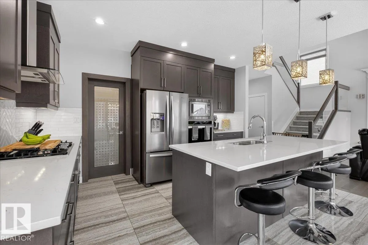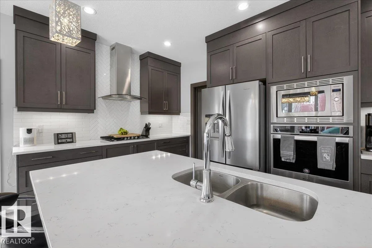 This 2 story in the desirable Montrose is sure to impress. Home features many windows, office right at the entrance, huge mud room by garage entrance with custom shelving with ample storage, butler style pantry. Kitchen has a large quartz island, built in microwave & oven. Counter top Gas stove, Ceiling high cabinets. dining area is right off the kitchen and open to the living room w/ gas fireplace and 18ft ceiling. Second level has a large family area open to main level, great for entertaining! Two good sized Bedrooms (one with a walk in closet) another full bath. Master suite has an amazing ensuite w/ jaccuzzi tub, stand alone shower, jack & jill sinks, large walk in closet w/custom shelving. Basement has a roughed in bath ready for you to finish! Hard to come by massive FOUR car HEATED garage. Additional off street parking. Situated on a large pie shaped lot, with a fully fenced backyard and a two tier deck, stamped concrete side walkway and storage. This is one you don't want to miss! (id:27476)