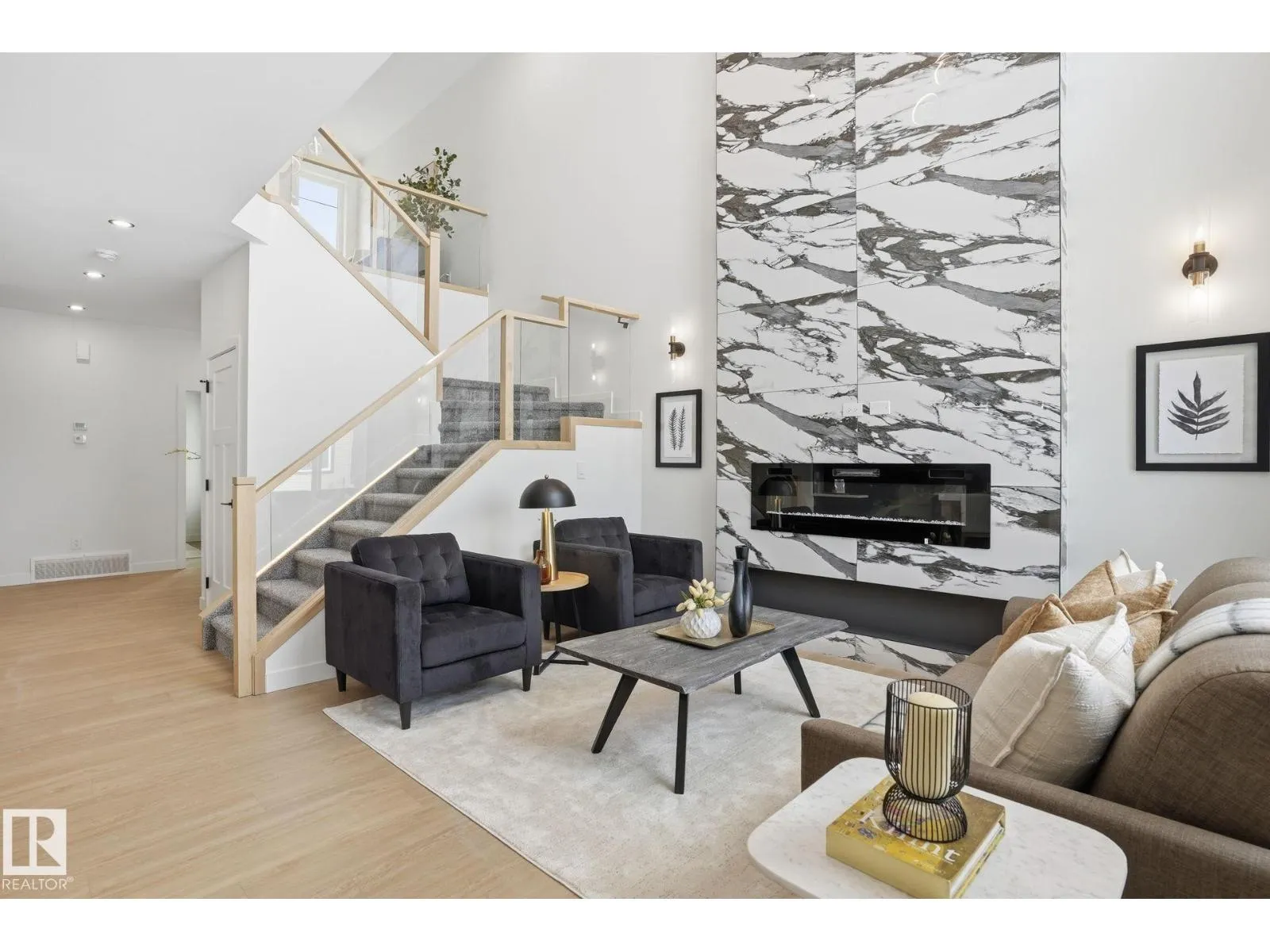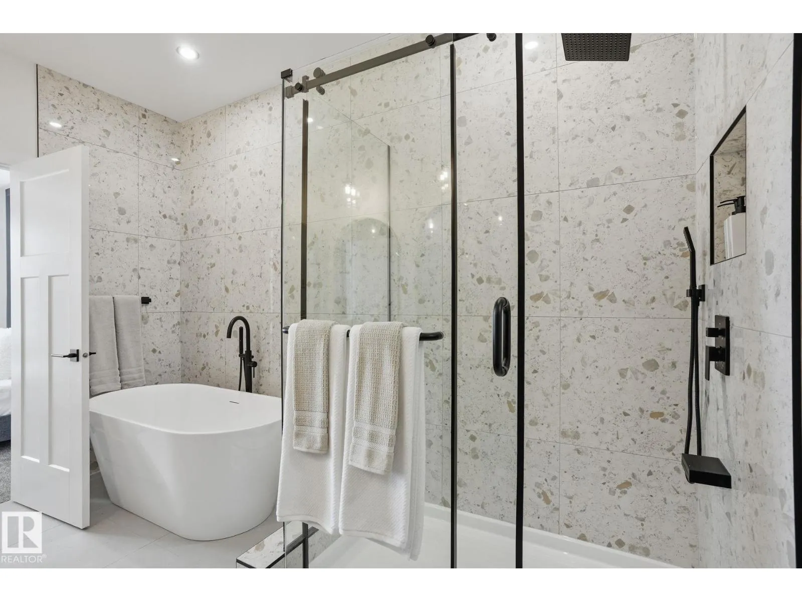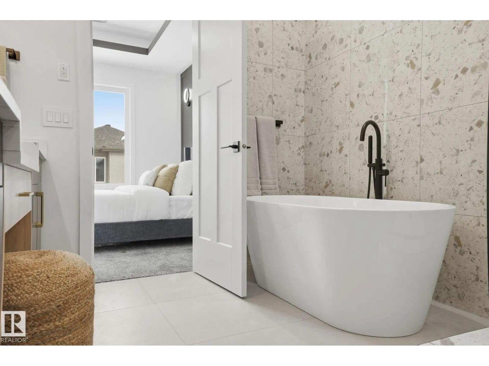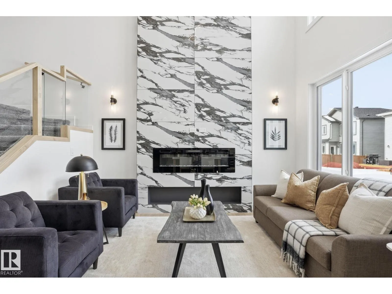 Experience refined living in this quick-possession luxury home in Beaumont, featuring a double attached garage and a separate side entrance. The main floor is thoughtfully designed with a main floor bedroom, 3-pc bath with a walk-in shower, and spacious mudroom, leading into a breathtaking open-concept living space. A chef-inspired gourmet kitchen is complemented by a dedicated spice kitchen - perfect hosting the whole family - while the great room impresses with a striking tiled fireplace and dramatic open-to-above ceilings that flood the home with light. Upstairs, discover a beautifully planned retreat with a bonus space, 4pc bath and convenient laundry with sink and quartz countertop. Three bedrooms include a lavish primary suite showcasing a spa-inspired 5-pc ensuite with double sinks, a seated makeup vanity, freestanding tub, and a custom walk-in closet designed for elevated everyday living. $5,000 appliance credit included to select your choice of appliances! (id:27476)