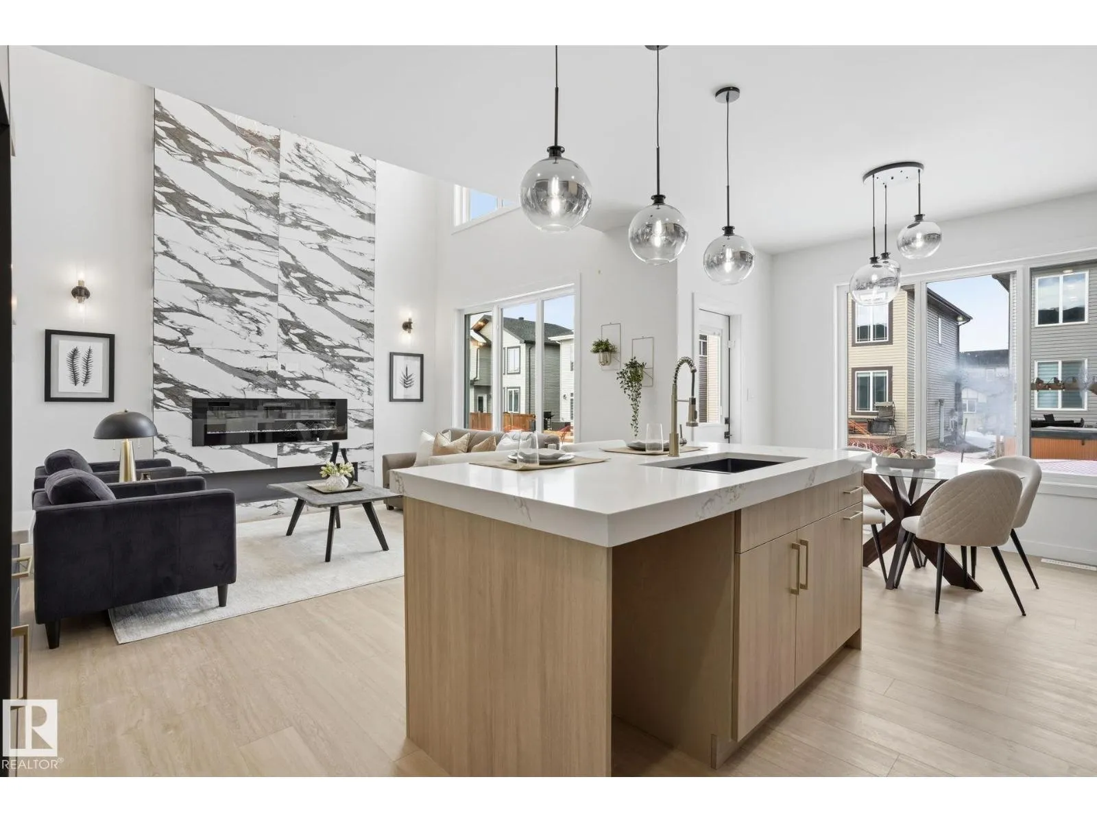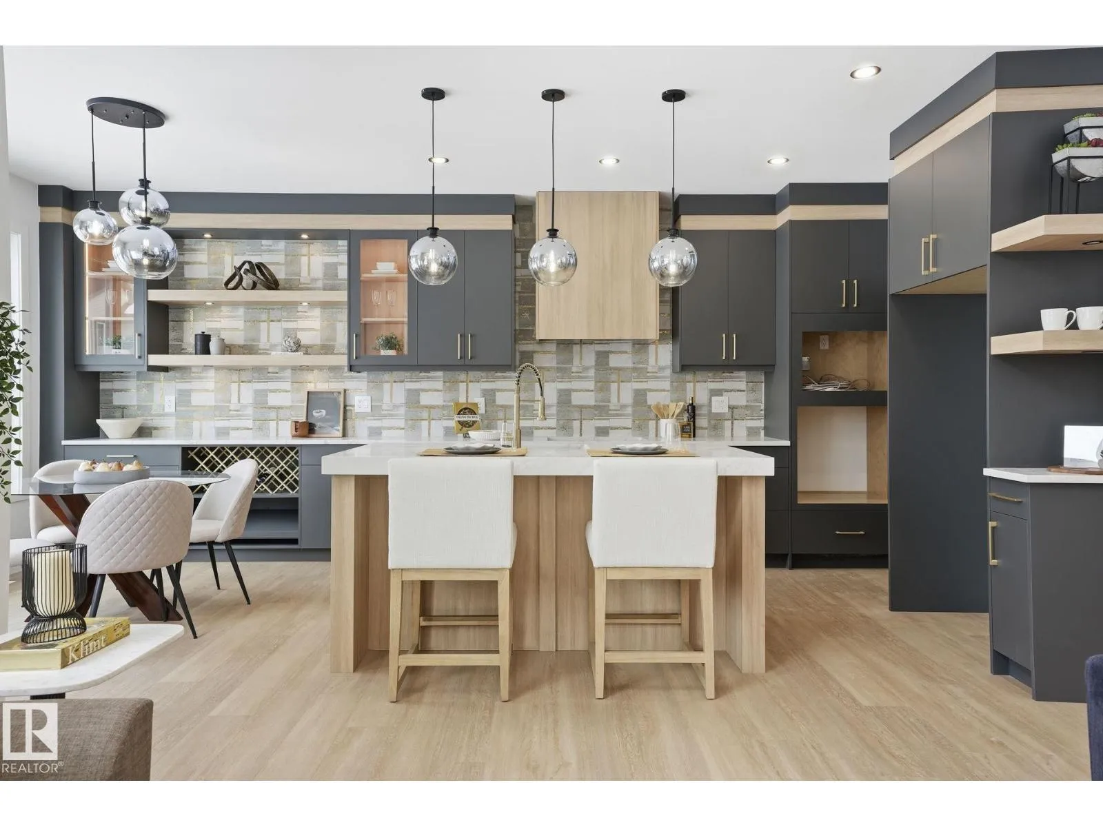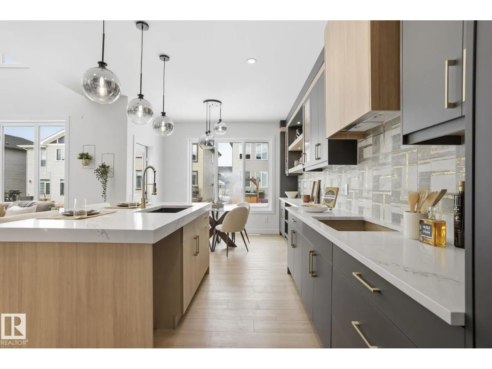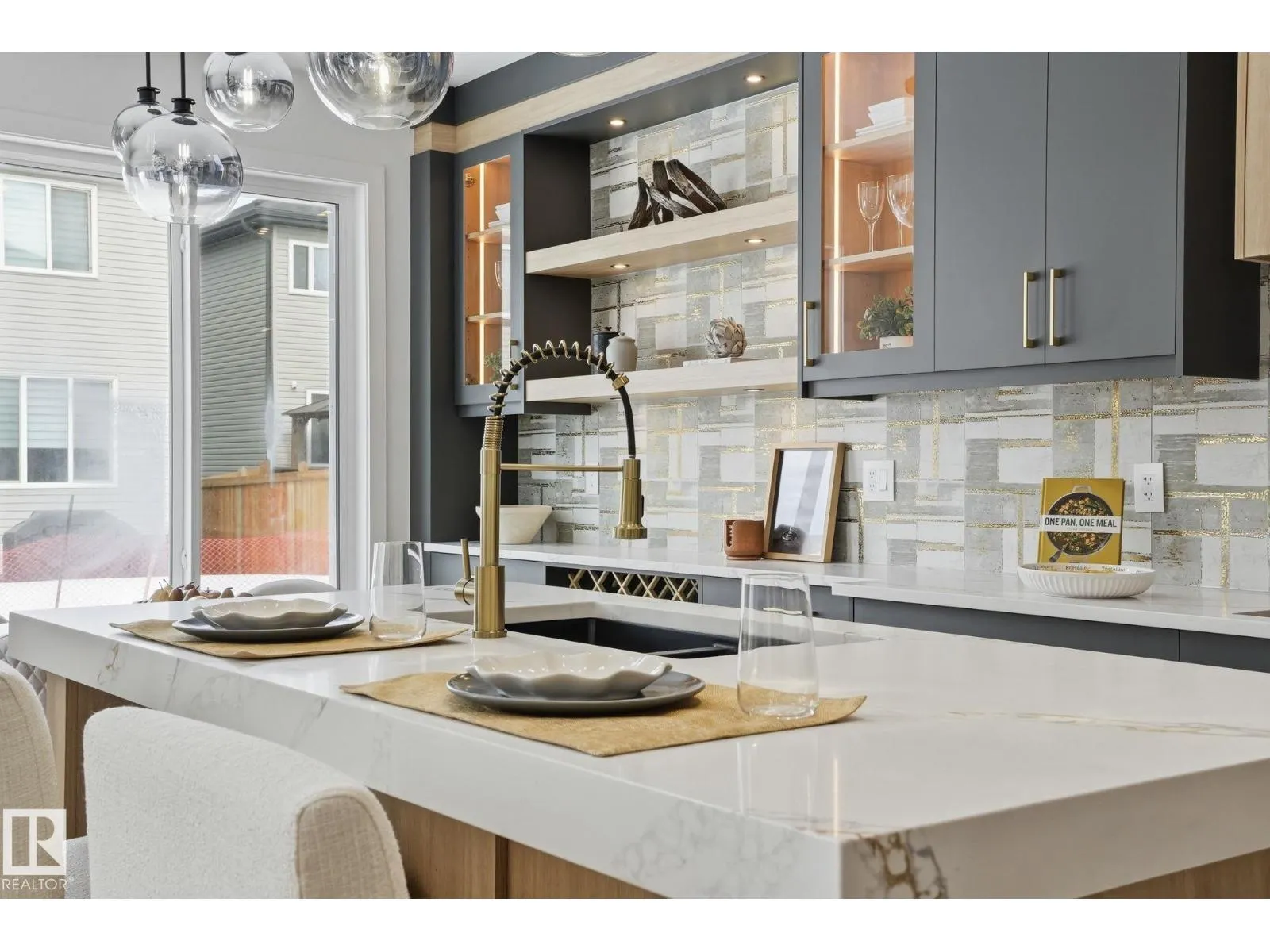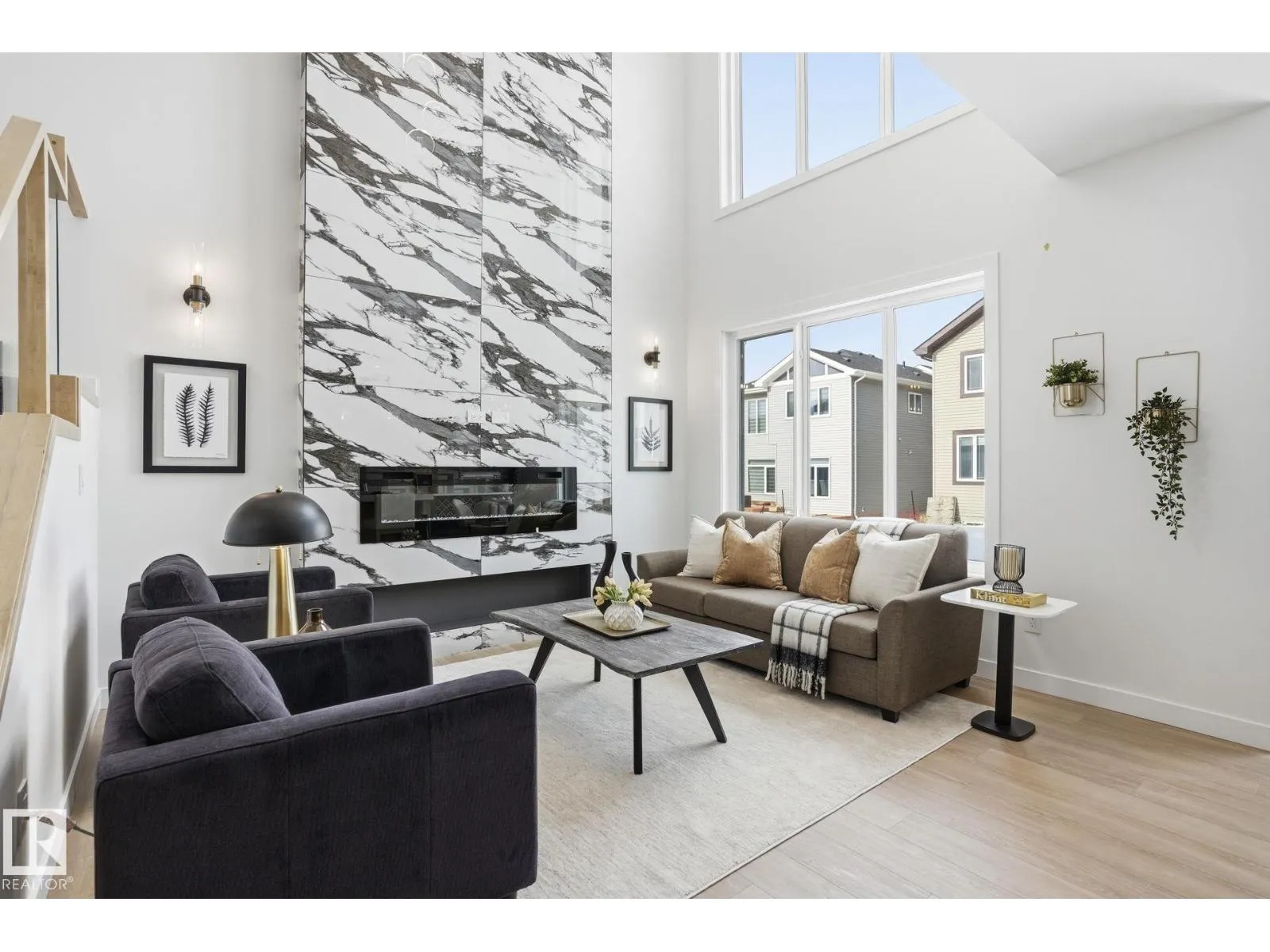 Experience refined living in this quick-possession luxury home in Beaumont, featuring a double attached garage and a separate side entrance. The main floor is thoughtfully designed with a main floor bedroom, 3-pc bath with a walk-in shower, and spacious mudroom, leading into a breathtaking open-concept living space. A chef-inspired gourmet kitchen is complemented by a dedicated spice kitchen - perfect hosting the whole family - while the great room impresses with a striking tiled fireplace and dramatic open-to-above ceilings that flood the home with light. Upstairs, discover a beautifully planned retreat with a bonus space, 4pc bath and convenient laundry with sink and quartz countertop. Three bedrooms include a lavish primary suite showcasing a spa-inspired 5-pc ensuite with double sinks, a seated makeup vanity, freestanding tub, and a custom walk-in closet designed for elevated everyday living. $5,000 appliance credit included to select your choice of appliances! (id:27476)