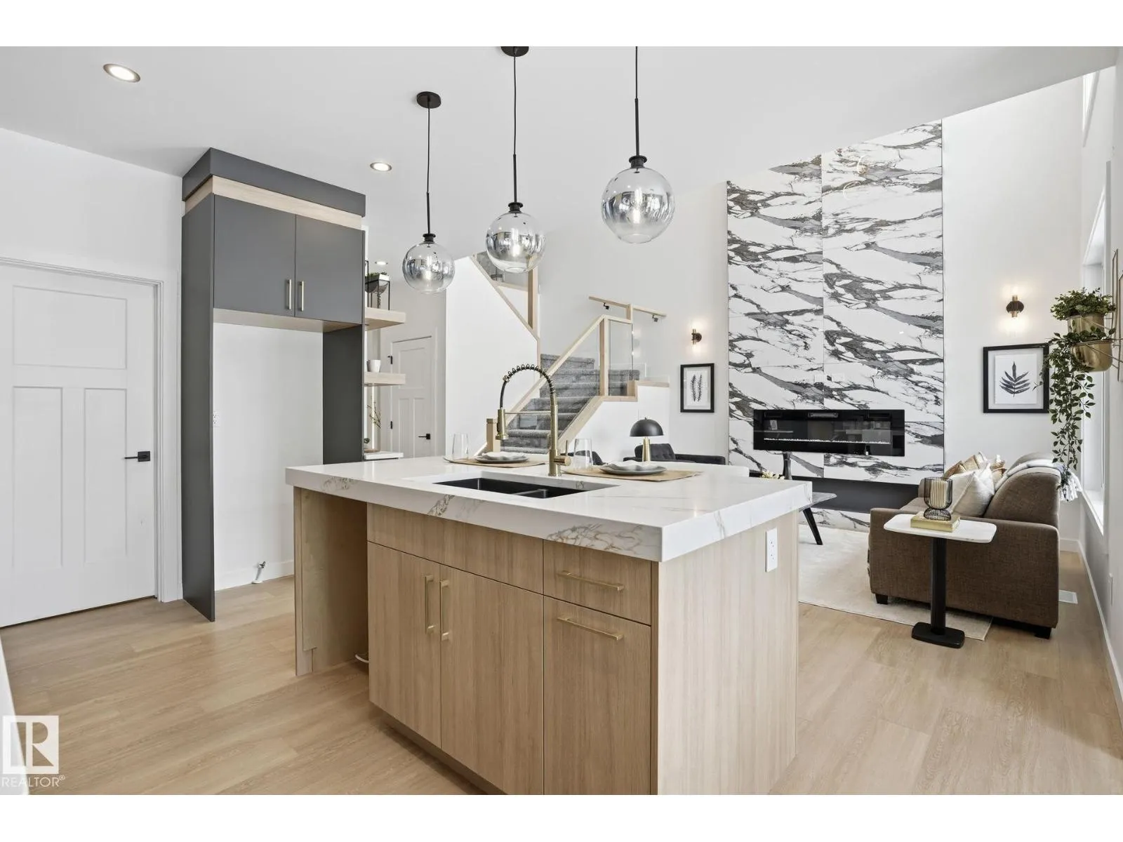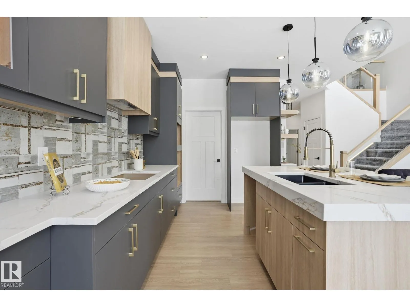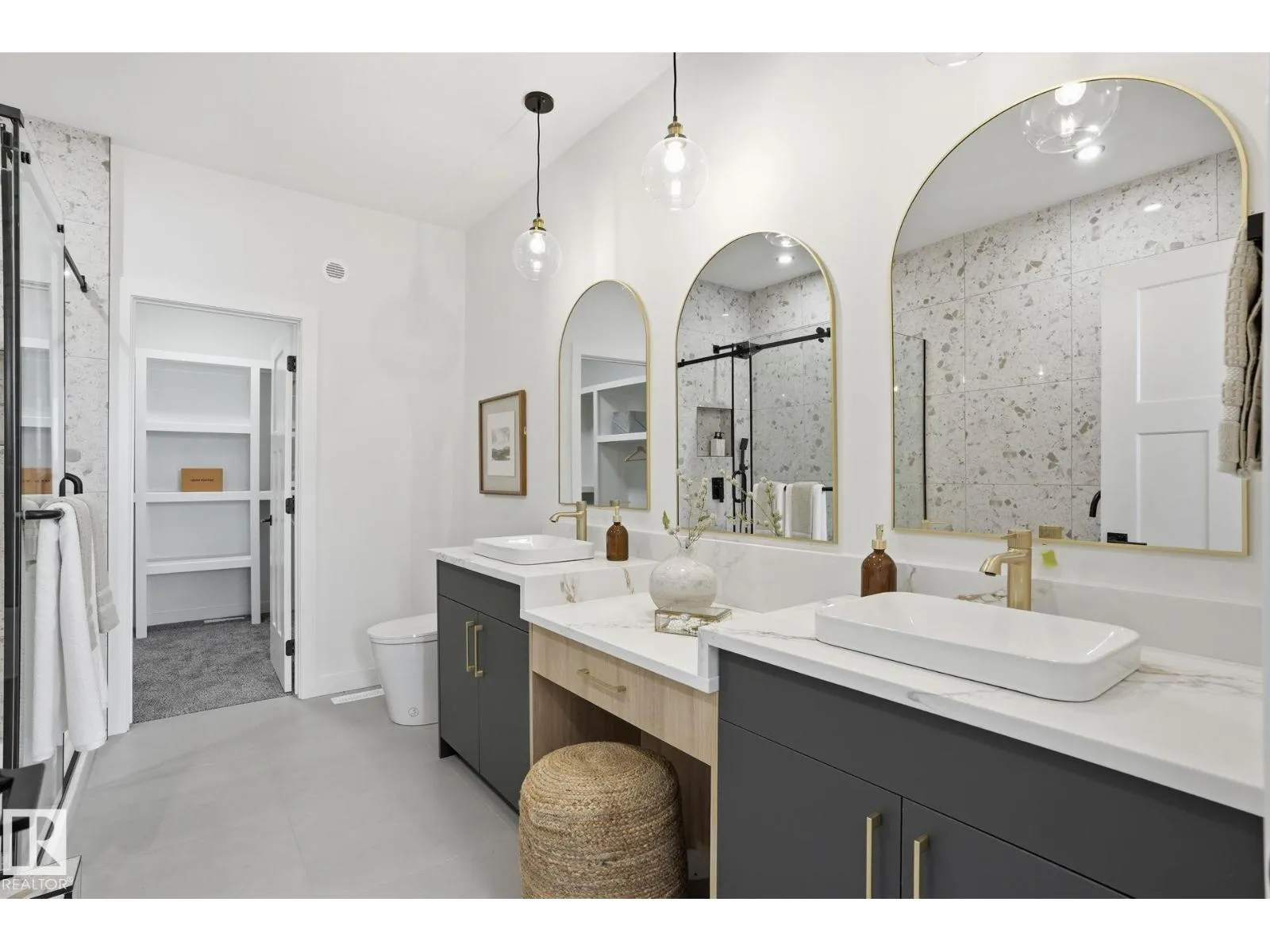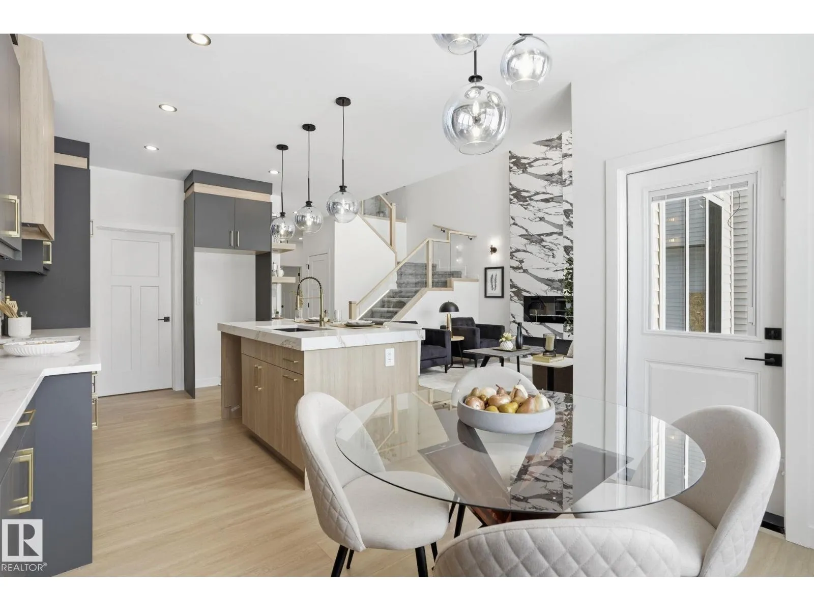Experience refined living in this quick-possession luxury home in Beaumont, featuring a double attached garage and a separate side entrance. The main floor is thoughtfully designed with a main floor bedroom, 3-pc bath with a walk-in shower, and spacious mudroom, leading into a breathtaking open-concept living space. A chef-inspired gourmet kitchen is complemented by a dedicated spice kitchen - perfect hosting the whole family - while the great room impresses with a striking tiled fireplace and dramatic open-to-above ceilings that flood the home with light. Upstairs, discover a beautifully planned retreat with a bonus space, 4pc bath and convenient laundry with sink and quartz countertop. Three bedrooms include a lavish primary suite showcasing a spa-inspired 5-pc ensuite with double sinks, a seated makeup vanity, freestanding tub, and a custom walk-in closet designed for elevated everyday living. $5,000 appliance credit included to select your choice of appliances! (id:27476)