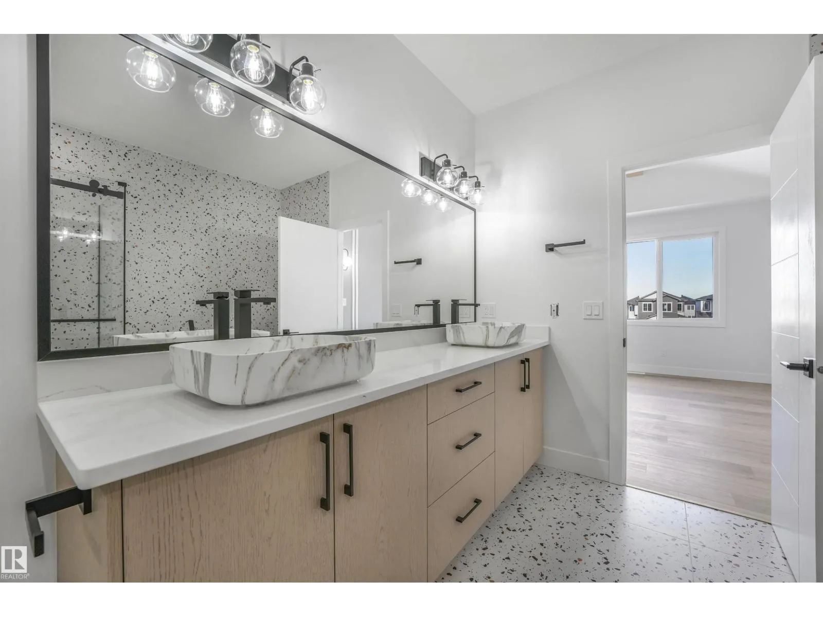 Welcome to this stunning 2,130 sq. ft. home in the highly desirable community of Triomphe in Beaumont. Thoughtfully designed for modern family living, this residence offers 4 spacious bedrooms, 3 full bathrooms, and exceptional attention to detail throughout. The main floor features a bright and airy open-concept layout, highlighted by a contemporary chefâs kitchen complete with a separate spice kitchen, sleek cabinetry, and ample workspace. The spacious dining area flows seamlessly into the impressive open-to-below great room, where expansive windows fill the space with natural light and create a grand yet inviting atmosphere. Upstairs, youâll find three well-appointed bedrooms, including a luxurious primary retreat designed for comfort and relaxation. A dedicated prayer room adds both flexibility and functionality to the upper level. Showcasing quality craftsmanship and refined finishes throughout, this exceptional home is ideally located close to parks, schools, and all amenities Beaumont has to offer. (id:27476)