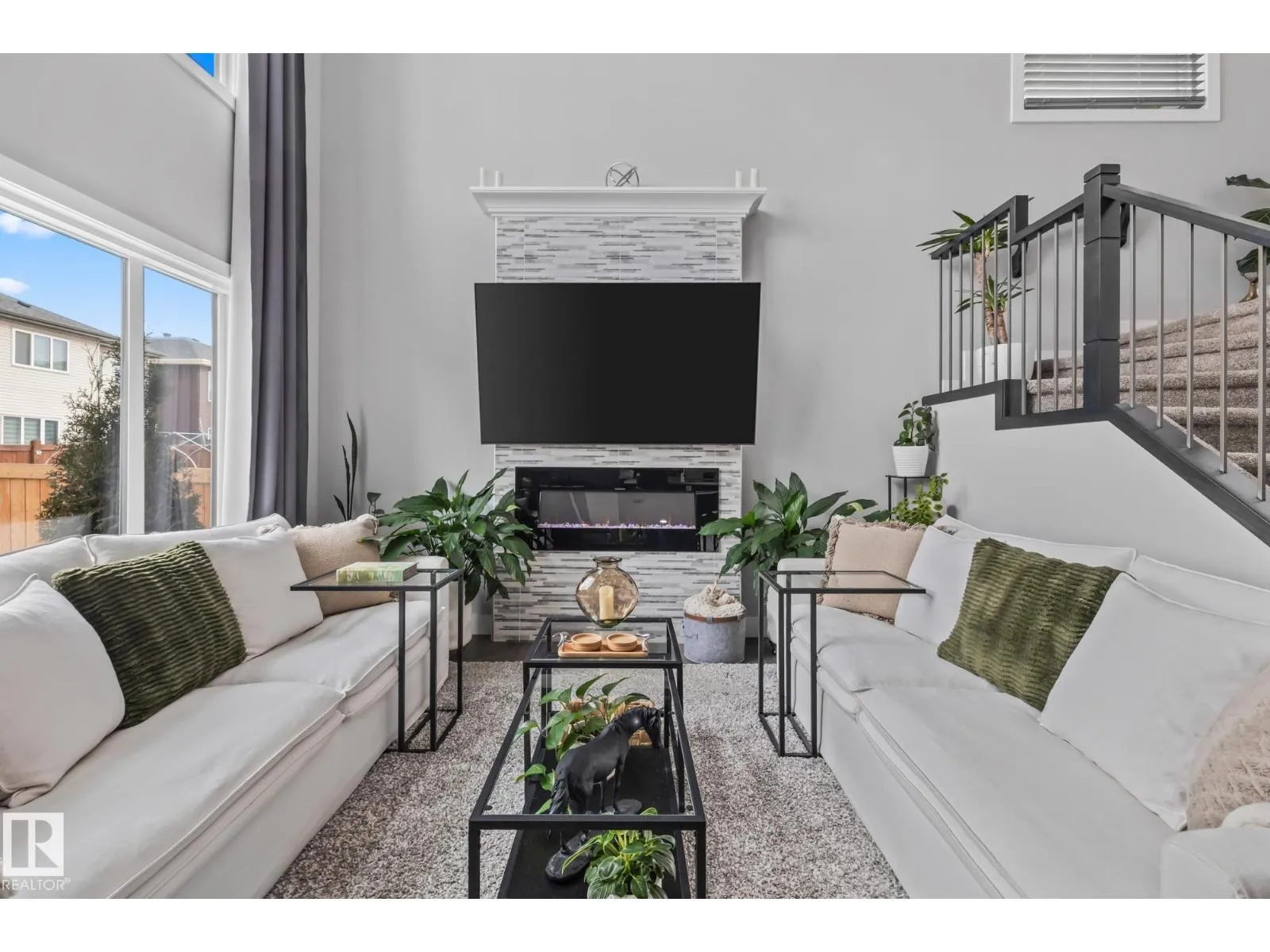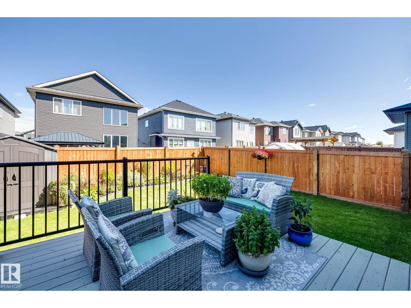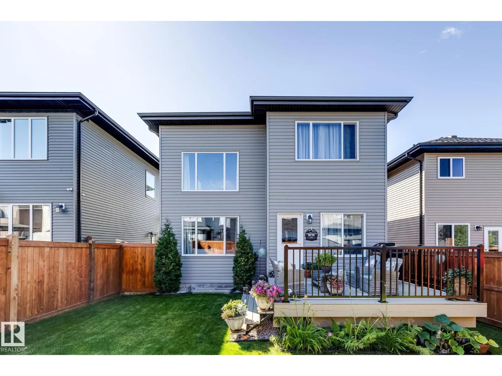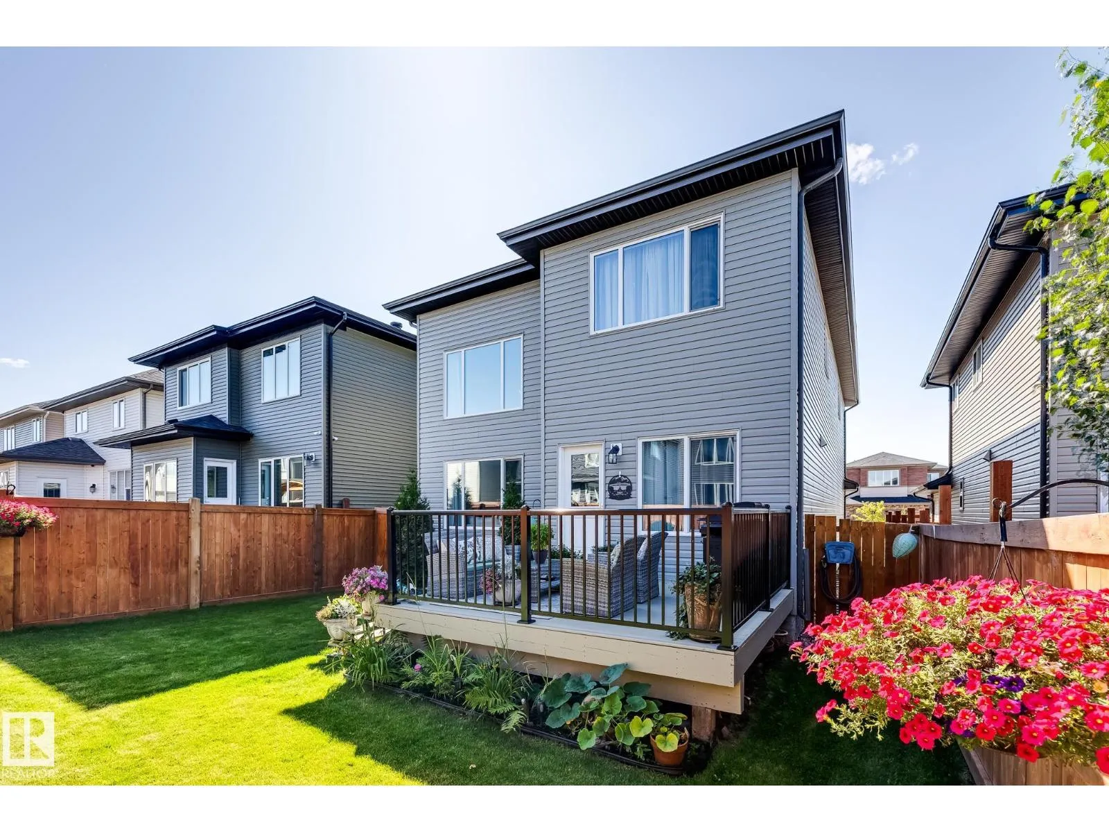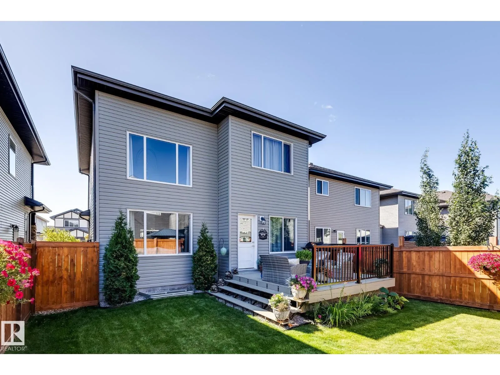 Tucked away on a quiet street in sought-after Triomphe Estates, this beautifully maintained 2,147 sq.ft. home blends refined finishes with effortless functionality. The main floor welcomes you with engineered hardwood and porcelain tile, a private front office, and a dramatic great room with soaring ceilings, remote-controlled window coverings, and a sleek electric fireplace. The kitchen impresses with quartz countertops, a large island, built-in appliances, LED accent lighting, and a walk-through pantry connecting to the laundry and double attached garage with floor drain. Upstairs, an open-to-below bonus room adds light and space. The primary suite is a serene retreat with walk-in closet and luxurious 5-piece ensuite featuring soaker tub and oversized shower. Two additional bedrooms and a full bath complete the level. The unspoiled basement offers 9â ceilings, large windows and a separate entrance. Fenced yard with large deck and perennials. Close to parks and schools. (id:27476)