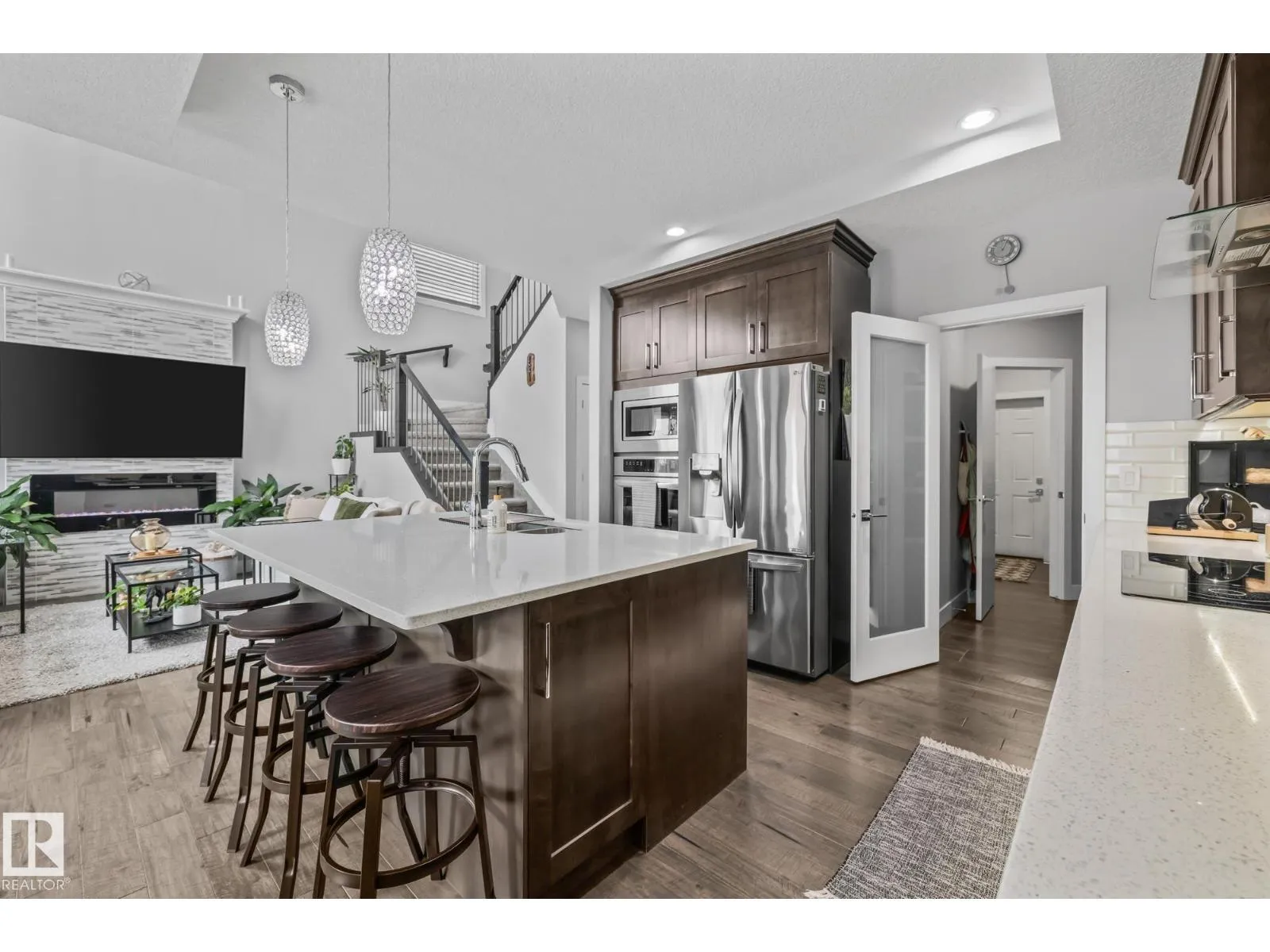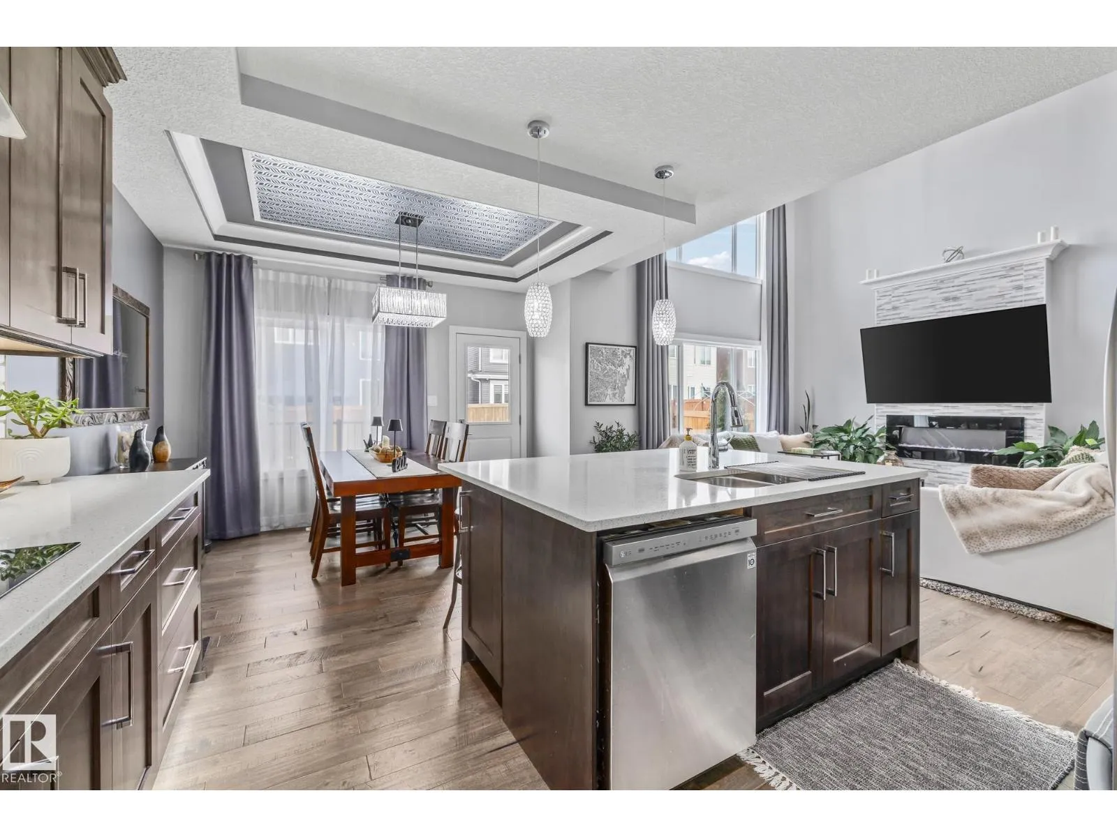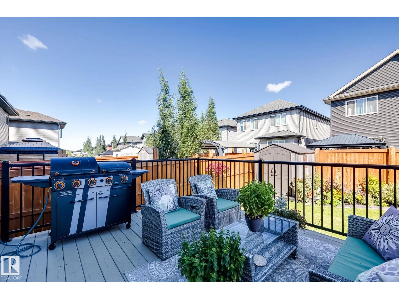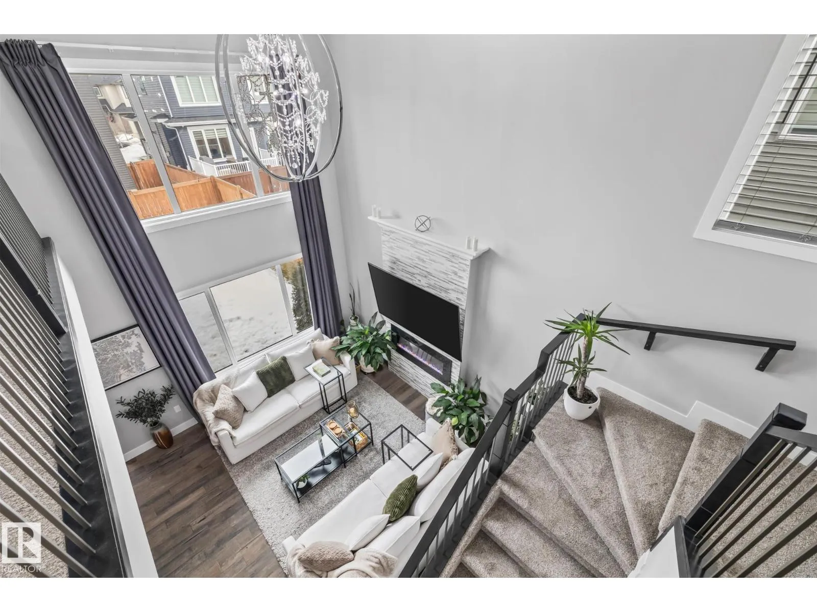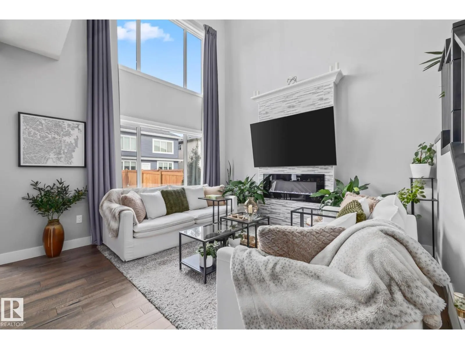 Tucked away on a quiet street in sought-after Triomphe Estates, this beautifully maintained 2,147 sq.ft. home blends refined finishes with effortless functionality. The main floor welcomes you with engineered hardwood and porcelain tile, a private front office, and a dramatic great room with soaring ceilings, remote-controlled window coverings, and a sleek electric fireplace. The kitchen impresses with quartz countertops, a large island, built-in appliances, LED accent lighting, and a walk-through pantry connecting to the laundry and double attached garage with floor drain. Upstairs, an open-to-below bonus room adds light and space. The primary suite is a serene retreat with walk-in closet and luxurious 5-piece ensuite featuring soaker tub and oversized shower. Two additional bedrooms and a full bath complete the level. The unspoiled basement offers 9â ceilings, large windows and a separate entrance. Fenced yard with large deck and perennials. Close to parks and schools. (id:27476)
