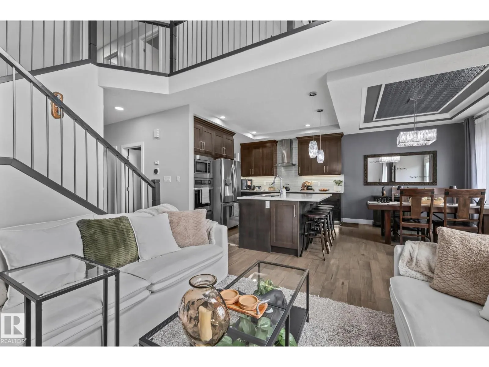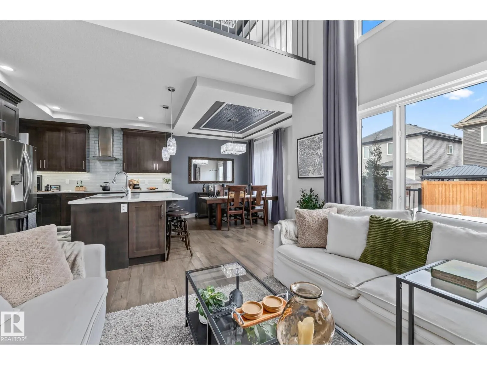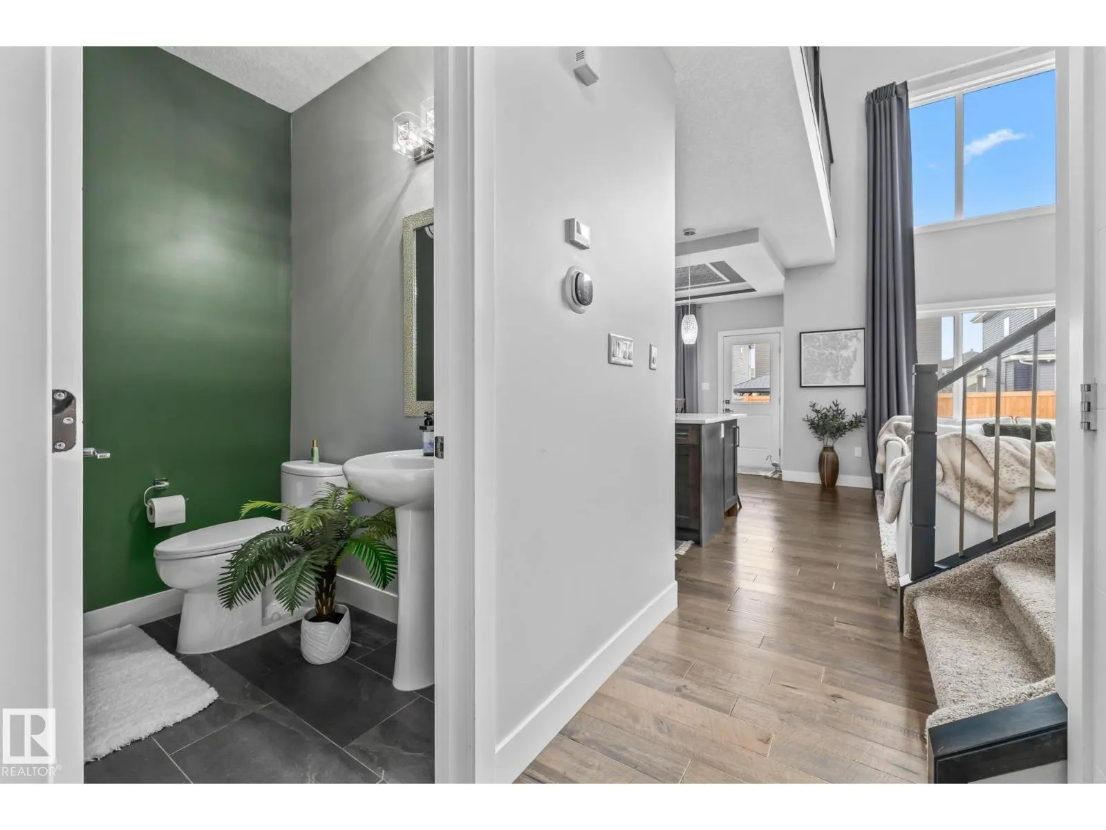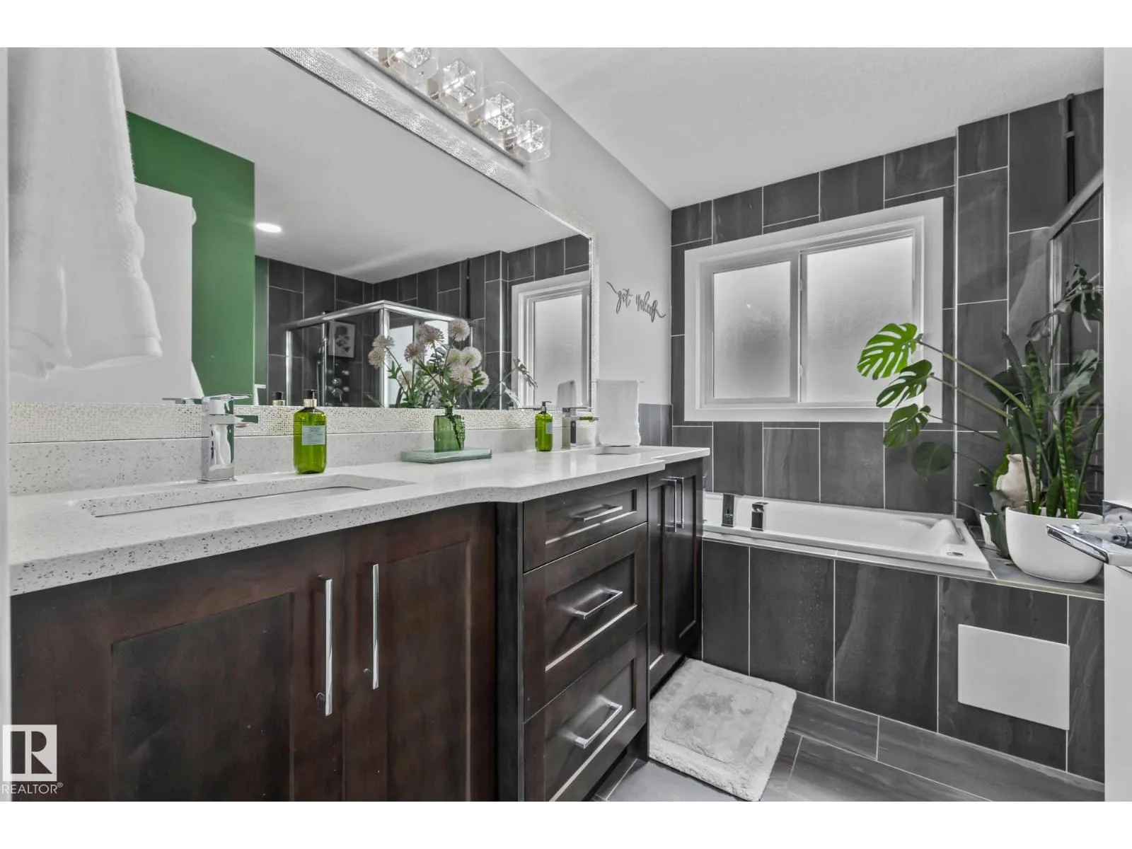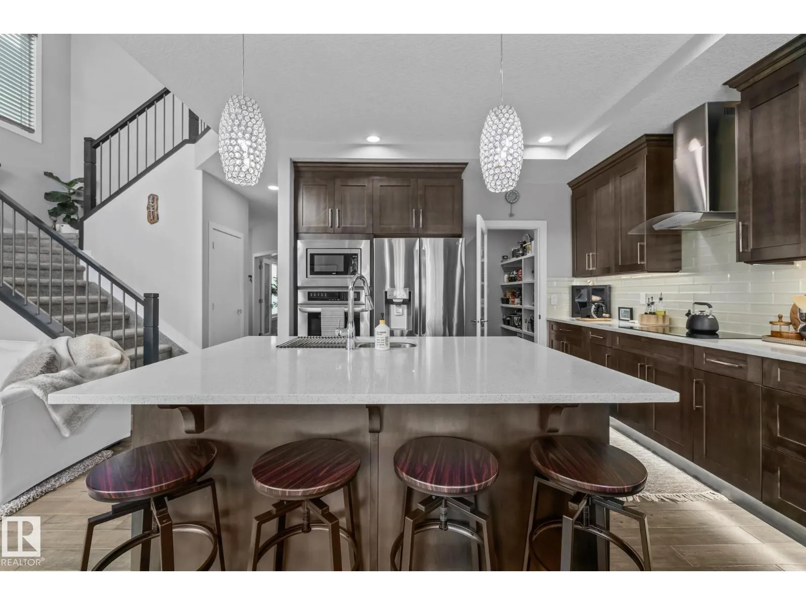Tucked away on a quiet street in sought-after Triomphe Estates, this beautifully maintained 2,147 sq.ft. home blends refined finishes with effortless functionality. The main floor welcomes you with engineered hardwood and porcelain tile, a private front office, and a dramatic great room with soaring ceilings, remote-controlled window coverings, and a sleek electric fireplace. The kitchen impresses with quartz countertops, a large island, built-in appliances, LED accent lighting, and a walk-through pantry connecting to the laundry and double attached garage with floor drain. Upstairs, an open-to-below bonus room adds light and space. The primary suite is a serene retreat with walk-in closet and luxurious 5-piece ensuite featuring soaker tub and oversized shower. Two additional bedrooms and a full bath complete the level. The unspoiled basement offers 9â ceilings, large windows and a separate entrance. Fenced yard with large deck and perennials. Close to parks and schools. (id:27476)