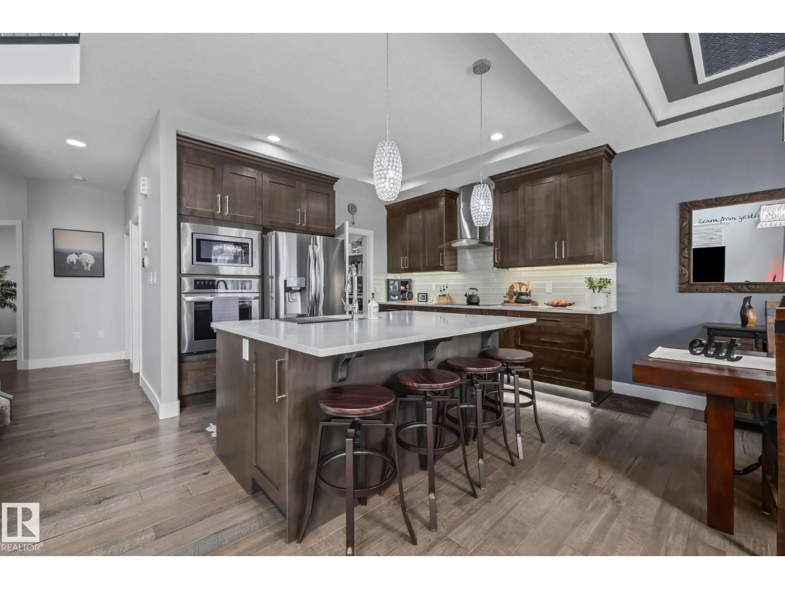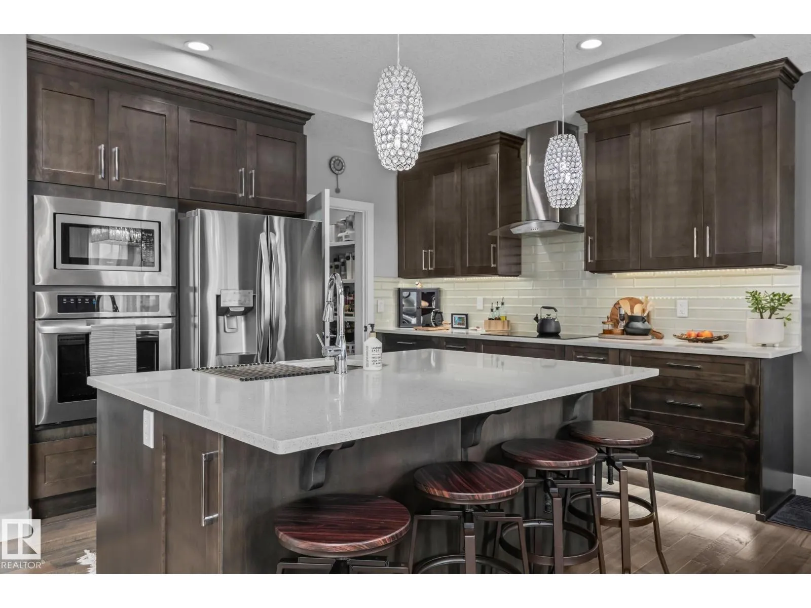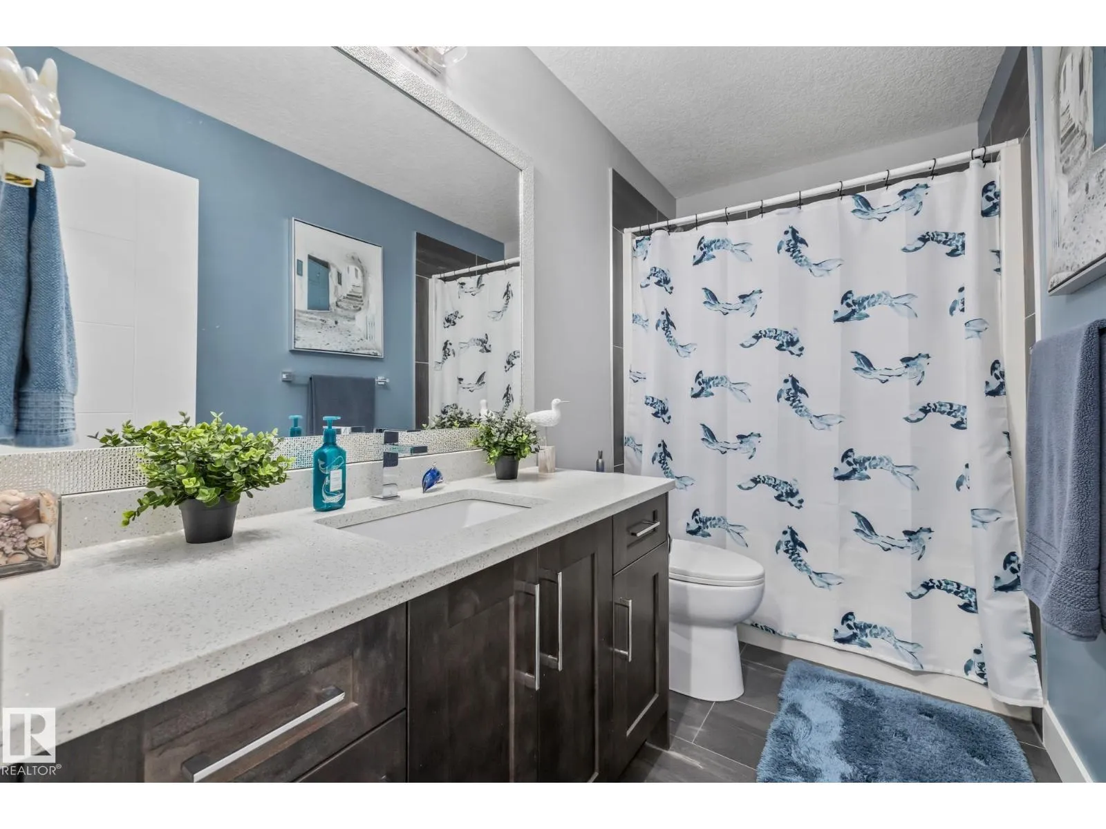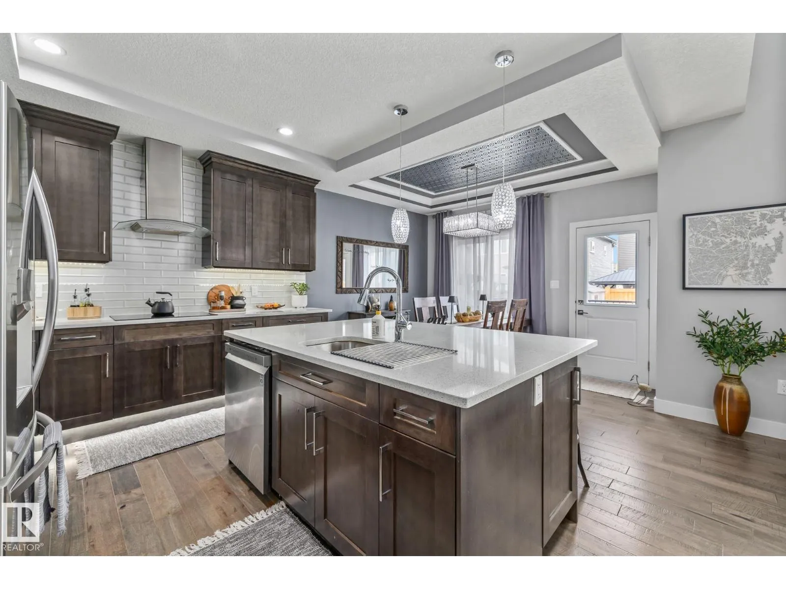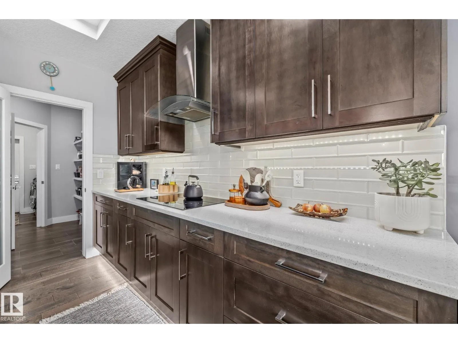 Tucked away on a quiet street in sought-after Triomphe Estates, this beautifully maintained 2,147 sq.ft. home blends refined finishes with effortless functionality. The main floor welcomes you with engineered hardwood and porcelain tile, a private front office, and a dramatic great room with soaring ceilings, remote-controlled window coverings, and a sleek electric fireplace. The kitchen impresses with quartz countertops, a large island, built-in appliances, LED accent lighting, and a walk-through pantry connecting to the laundry and double attached garage with floor drain. Upstairs, an open-to-below bonus room adds light and space. The primary suite is a serene retreat with walk-in closet and luxurious 5-piece ensuite featuring soaker tub and oversized shower. Two additional bedrooms and a full bath complete the level. The unspoiled basement offers 9â ceilings, large windows and a separate entrance. Fenced yard with large deck and perennials. Close to parks and schools. (id:27476)