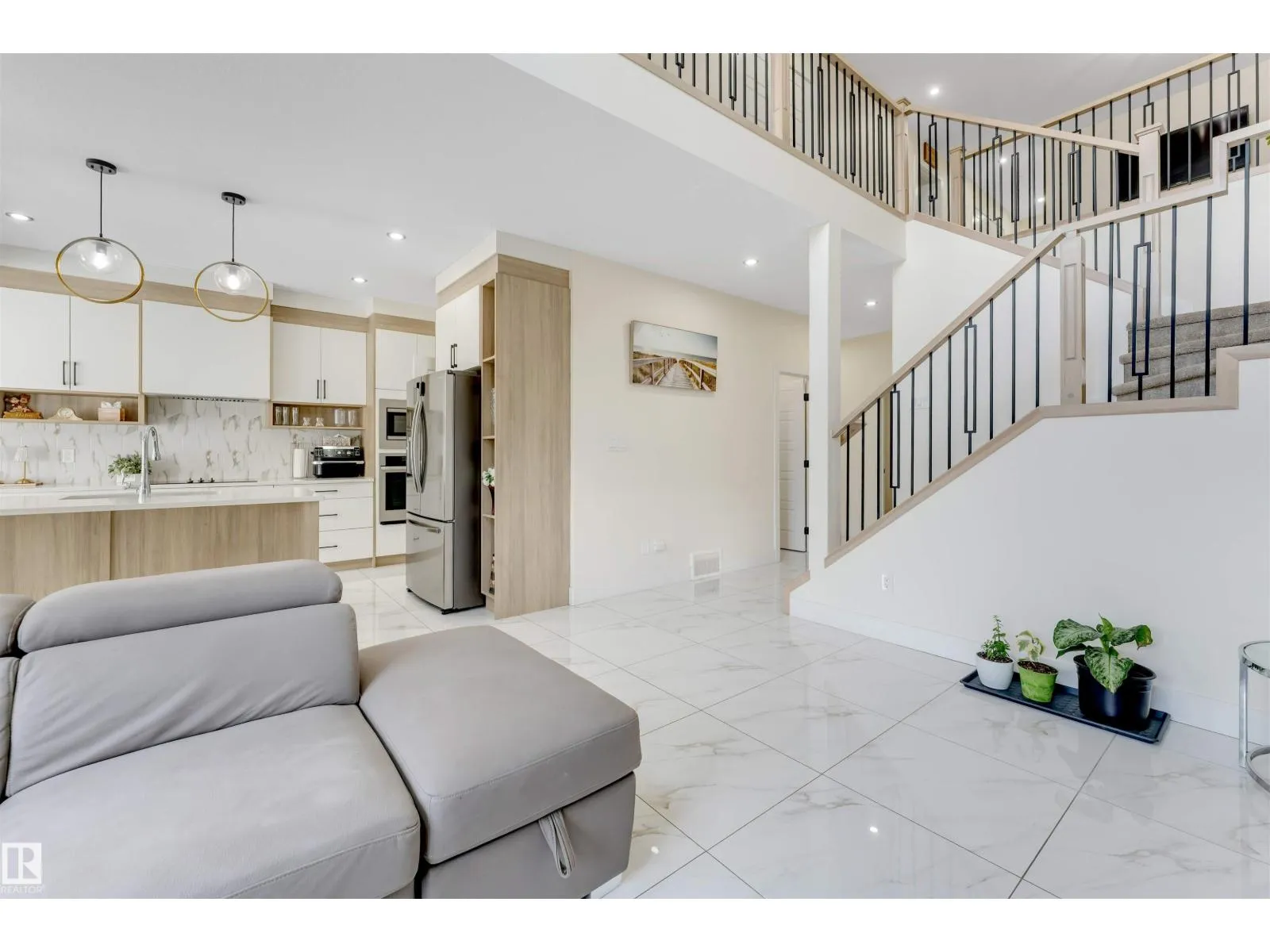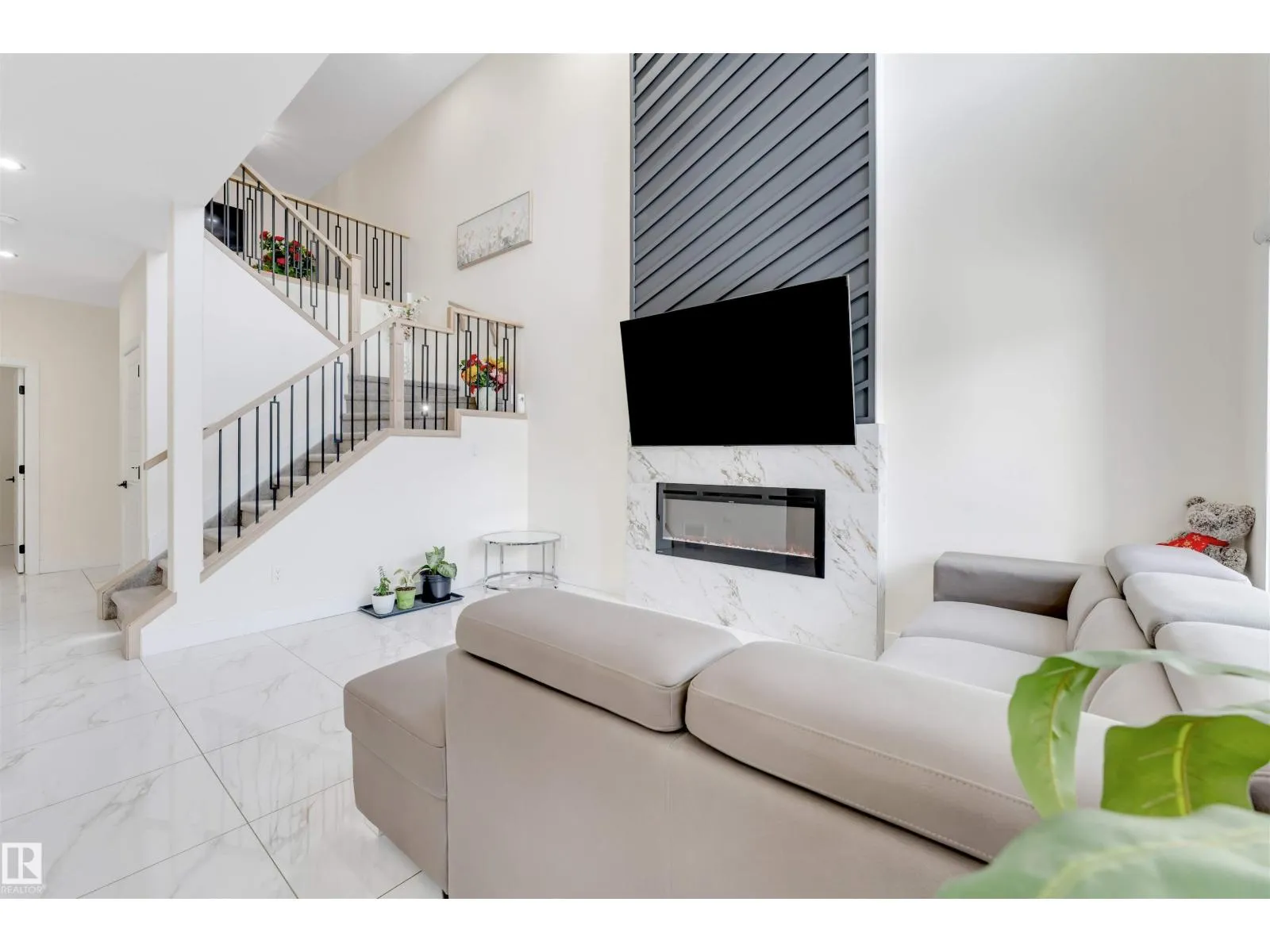 Luxury Living in Triomph Estates, Beaumont â 4 BEDS + DEN/OFFICE , SPICE KITCHEN & More! Welcome to this stunning 2,183 sq. ft. home in the sought-after Triomph Estates of Beaumont, located on a quiet closed street with a SEPARATE ENTRANCE to the basement and BACK ALLEY access. Step into a breathtaking open-to-below living area, featuring a striking accent wall with an electric fireplace, adding warmth and elegance. The modern gourmet EXTENDED kitchen boasts glass countertops, while the spice kitchen with a gas cooktop is perfect for culinary enthusiasts. The main floor includes a den and a full bathroom, ideal for guests or a home office. Upstairs, a huge bonus room complements 4 spacious bedrooms, including a master suite with an accent wall, 5-piece ensuite, and walk-in closet. Laundry is conveniently upstairs. With an unfinished basement, back alley access, and a peaceful location on a quiet closed street, this home offers endless possibilities. Experience luxury and functionality! (id:27476)
