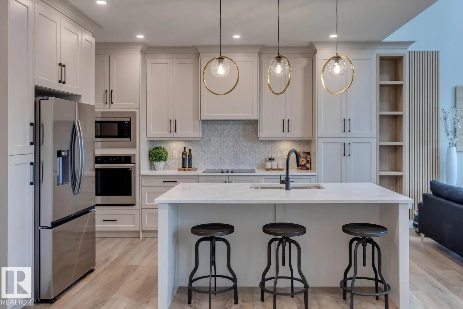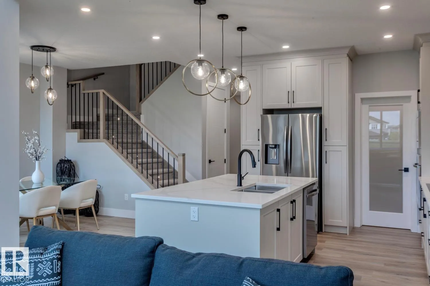 BACKS ONTO GREENSPACE! Welcome to this beautiful 3 bedroom + den, 3 bathroom home that includes a SPICE KITCHEN, OPEN TO ABOVE IN LIVING ROOM, SIDE SEPARATE ENTRANCE and STAINLESS STEEL APPLIANCES. This home features beautiful luxury vinyl plank, upgraded plumbing and lighting and more. The functional layout offers a bedroom on the main level which can also be used as a den, a full bath, generous dining area, huge living room with fireplace and a breathtaking kitchen. The custom kitchen features soft close cabinets, quartz countertops and fully equipped with stainless steel appliances. Not to forget, the kitchen also includes a spice kitchen that walks through to the mudroom. The upper level is where you will find the additional 3 bedrooms, 2 full bath, bonus room and laundry. The primary bedroom is absolute stunning and includes its own walk-in closet and beautiful 5pc ensuite with his and her sinks. (id:27476)