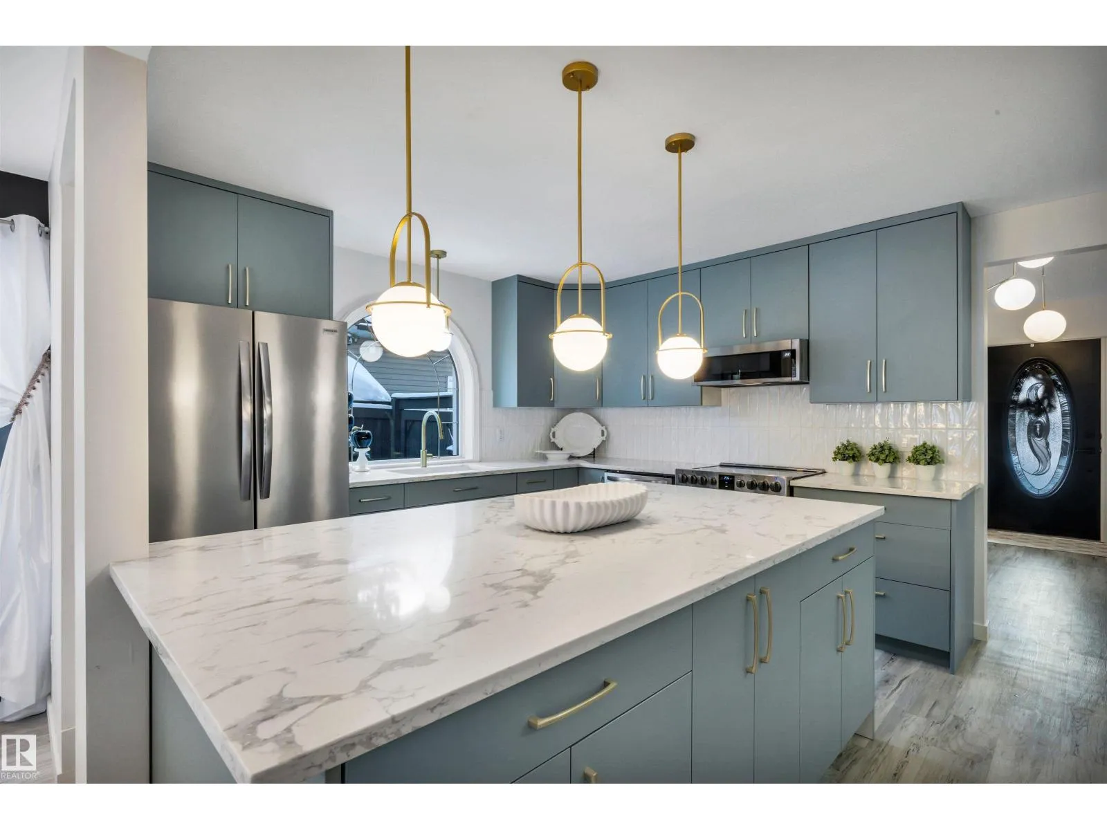 BUNGALOW with LOFT! No detail was overlooked in the design and modern renovation of this home, WOW factor the minute you enter, the kitchen is an entertainers dream with huge island, loads of cabinets, top of the line stainless appliances and QUARTZ counters, open to dining room accented by wood burning fireplace and new French doors to the stunning backyard, main level offers 2 bedrooms, primary with new 3 piece bath, 2nd bedroom is a good size with access to full updated 4 piece bath, living room surrounded by windows, stunning spiral staircase to the loft (perfect for home office!) lower level offers industrial style finishing creating high ceilings and open spaces, 2 rooms (used as bedrooms, not egress windows), rec room and beautiful 3 piece bathroom. Updates include complete new kitchen, new bathrooms, new flooring, paint, lighting, doors, casings, baseboards. Why settle for average? Amazing safe, walkable location in the heart of Beaumont. (id:27476)