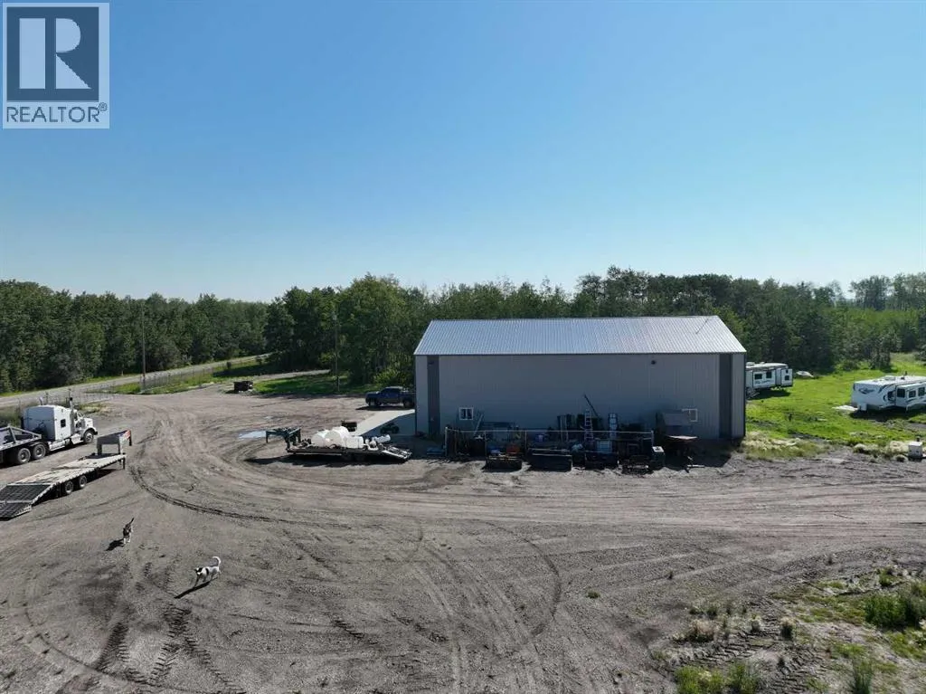 141 acres of land situated in the robust County of Grande Prairie! Massive shop on a concrete pad foundation also has attached residence built in 2012. The oversized, 54â x 80â shop has two overhead doors, sump and in floor heating plus wrap around concrete patio off the front and kitchen entry. Main floor features a family room open to the garage, 2-piece bathroom, den and utility room. Second floor features an open concept kitchen, dining and living room area.Custom features throughout includes hardwood & tile flooring, kitchen with wood cabinets & tile backsplash. Two bedrooms includes large bedroom with walk in closet plus there is laundry and 4 piece main bathroom.This unique parcel consists of approximately 4 acres of homestead, potential for gravel pit, and 77 acres treed with river bank acres along the âBeaverlodge Riverâ. Recreational dream property, with plenty of quiet, nature, and few neighbours plus flexibility of agricultural & business pursuits. Large, gravelled driveway and site, and is fenced and gated. ***Please note: property is sold âas is, where is, at time of possessionâ. No warranties or representations.*** Contact a REALTOR® today for more info or to book a viewing! (id:27476)