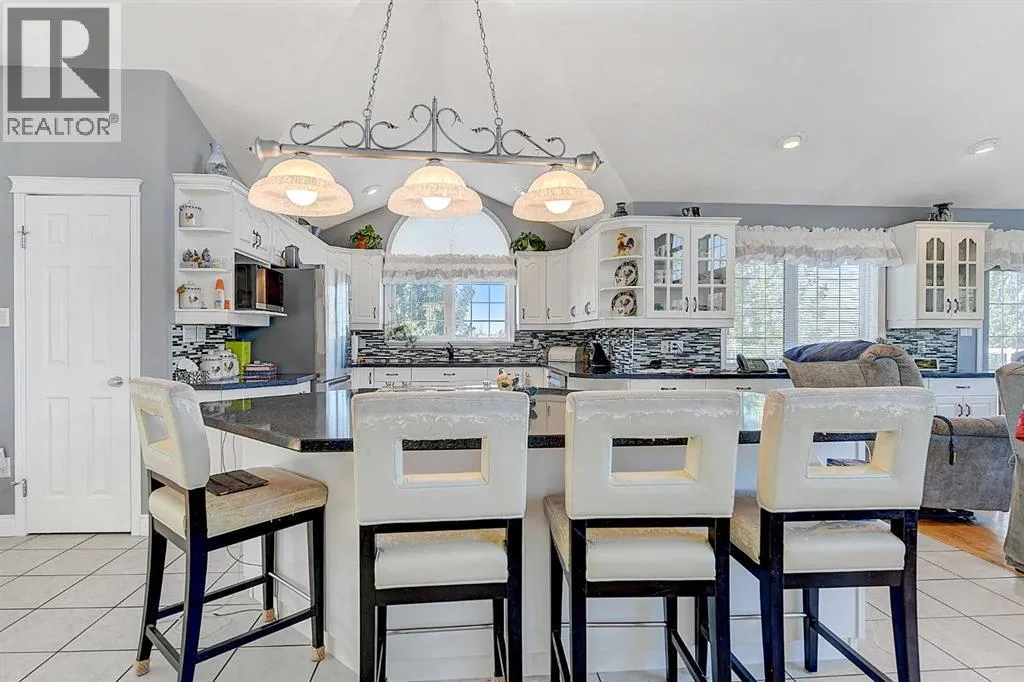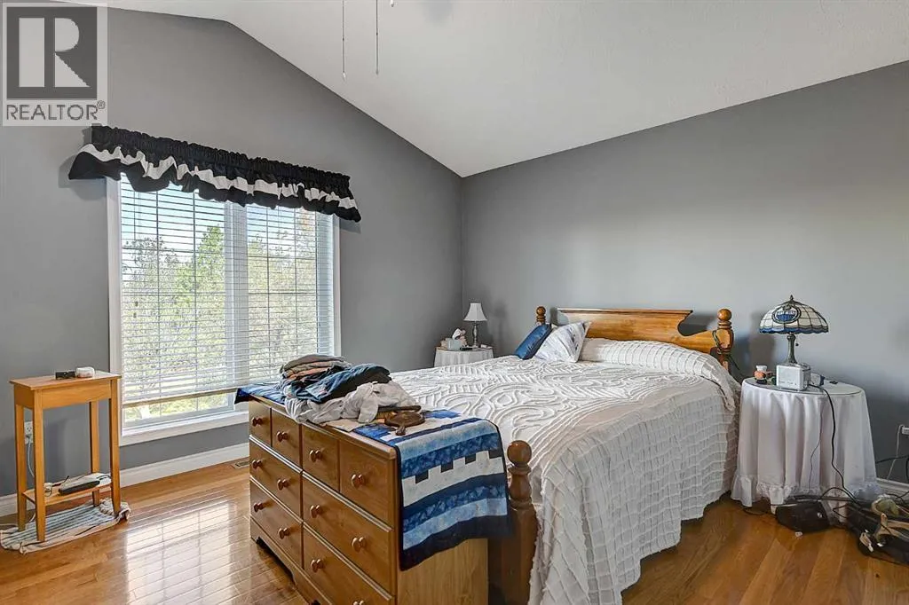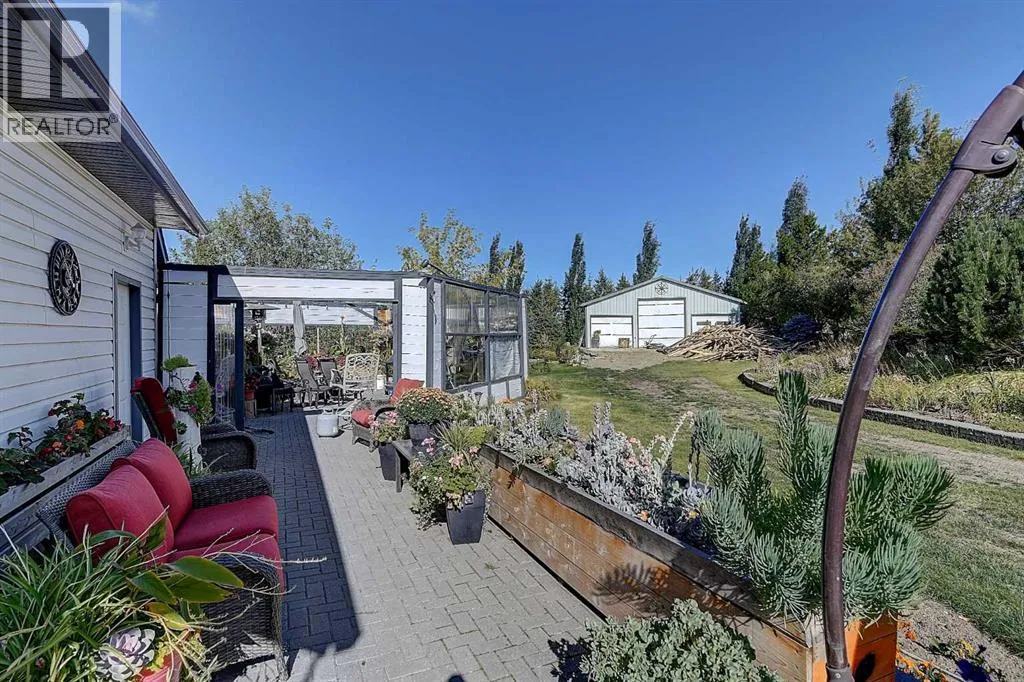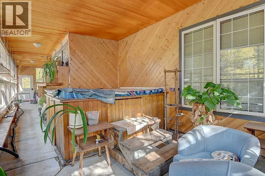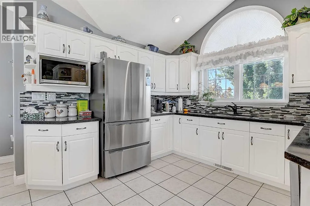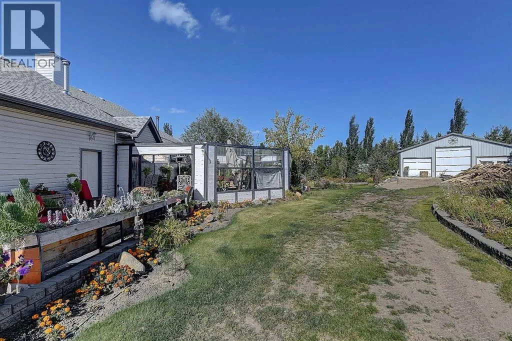 Welcome to Hayfield Drive, Old Town Estates - one of the nicest properties in the area. This 1.5-acre property offers mountain views, full town services and bussing to school. A beautifully designed home featuring an an open-concept kitchen, dining, and living area with vaulted ceilings and a view of the lower level. The main floor includes 2 bedrooms and 2 full bathrooms, and a spacious entry off the garage with laundry. A beautiful spiral staircase leads to the fully developed basement, which includes a family room with a wood fireplace, 2 additional bedrooms, a full bathroom, a cold room, a wine room, ample storage, and a walkout to a 3-season room/greenhouse and the rear yard. This home is equipped with in-floor heat, forced air heat, and central A/C. Enjoy outdoor living with a large west-facing deck and a stone patio on the east side. The double-heated garage includes a floor drain, while the additional shop/storage area provides power, lighting, and a wood floor. The paved driveway leads into park-like landscaping, complete with a variety of trees, shrubs, flower gardens, fruit trees, berry bushes, and a vegetable garden. (id:27476)