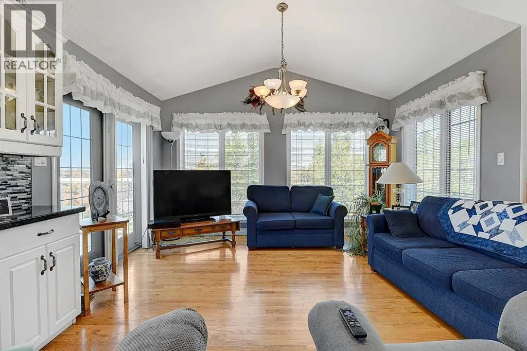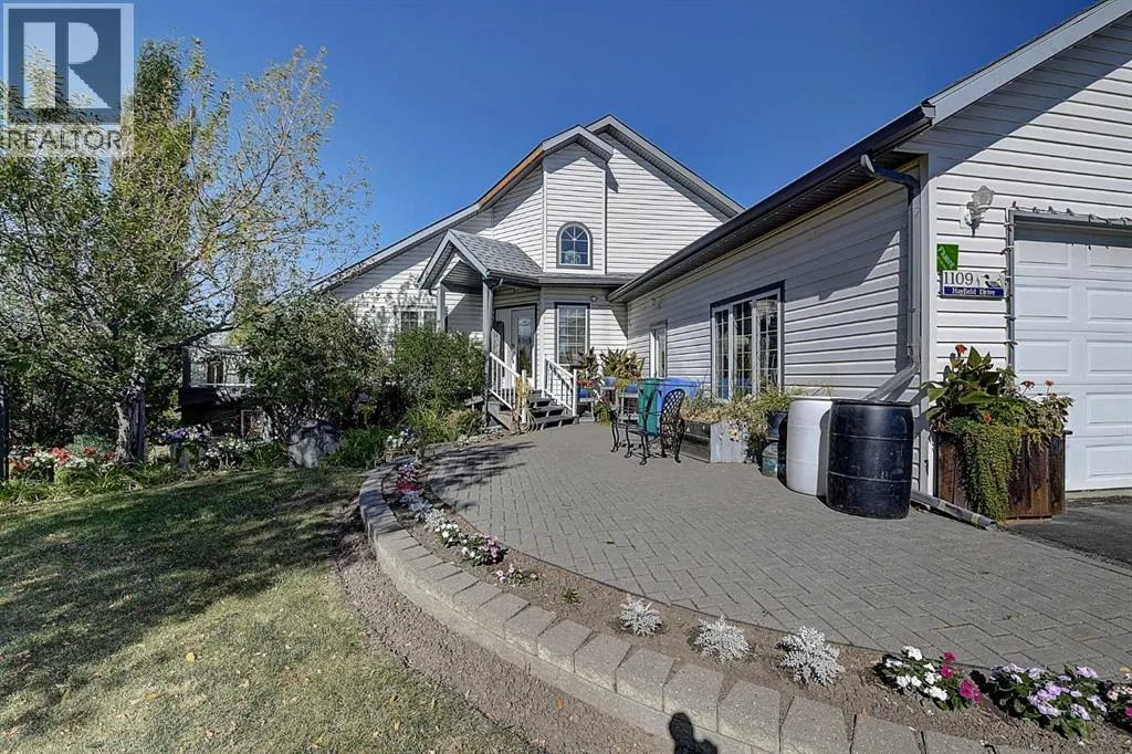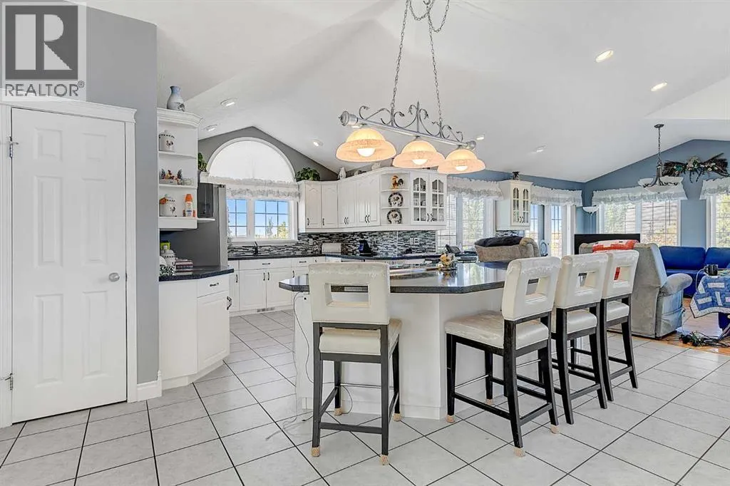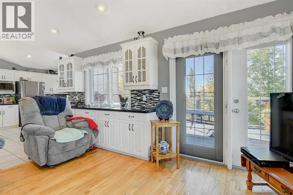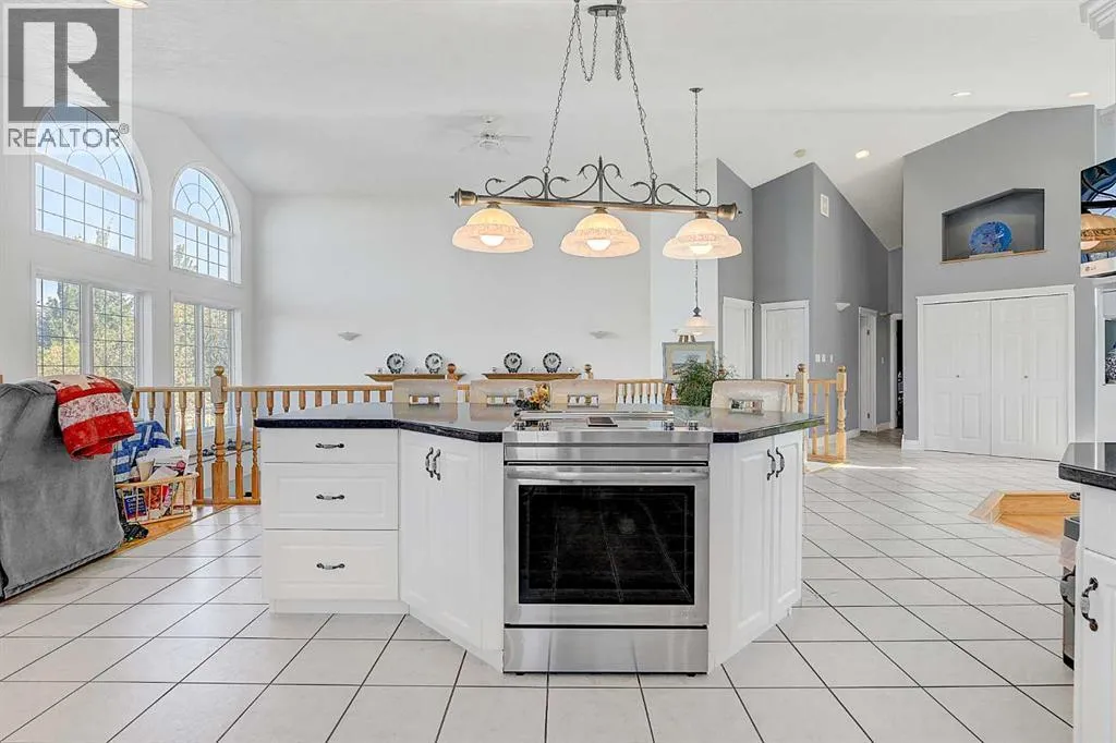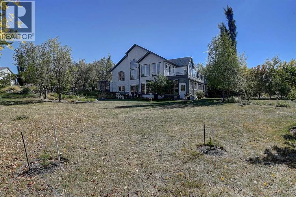 Welcome to Hayfield Drive, Old Town Estates - one of the nicest properties in the area. This 1.5-acre property offers mountain views, full town services and bussing to school. A beautifully designed home featuring an an open-concept kitchen, dining, and living area with vaulted ceilings and a view of the lower level. The main floor includes 2 bedrooms and 2 full bathrooms, and a spacious entry off the garage with laundry. A beautiful spiral staircase leads to the fully developed basement, which includes a family room with a wood fireplace, 2 additional bedrooms, a full bathroom, a cold room, a wine room, ample storage, and a walkout to a 3-season room/greenhouse and the rear yard. This home is equipped with in-floor heat, forced air heat, and central A/C. Enjoy outdoor living with a large west-facing deck and a stone patio on the east side. The double-heated garage includes a floor drain, while the additional shop/storage area provides power, lighting, and a wood floor. The paved driveway leads into park-like landscaping, complete with a variety of trees, shrubs, flower gardens, fruit trees, berry bushes, and a vegetable garden. (id:27476)