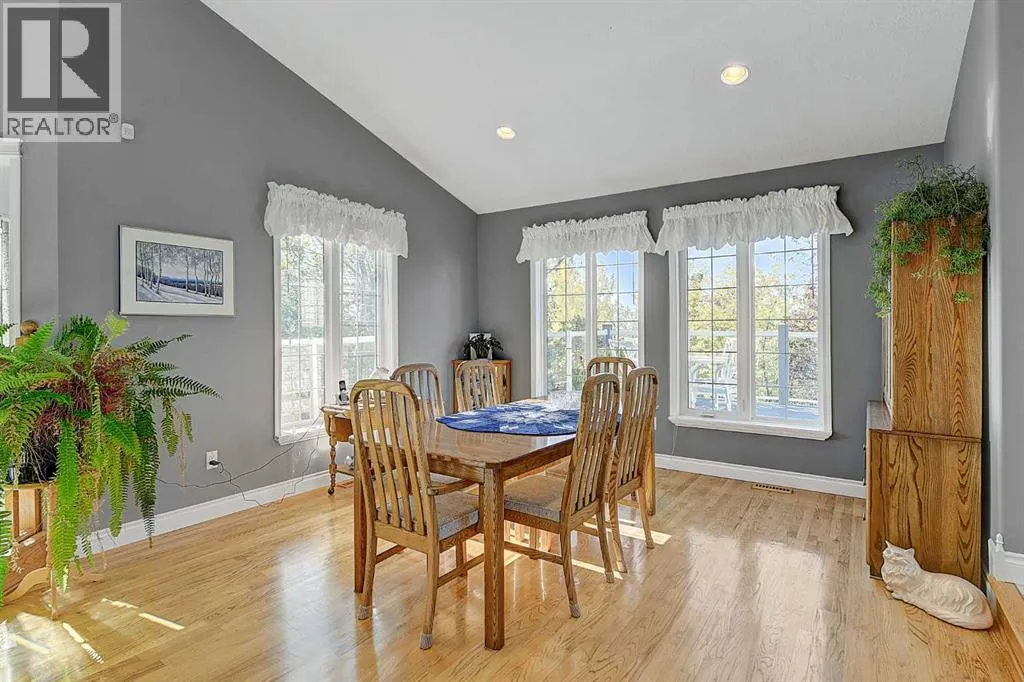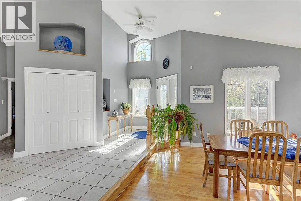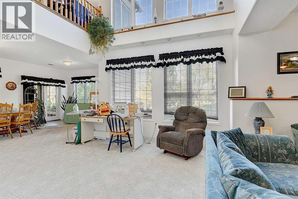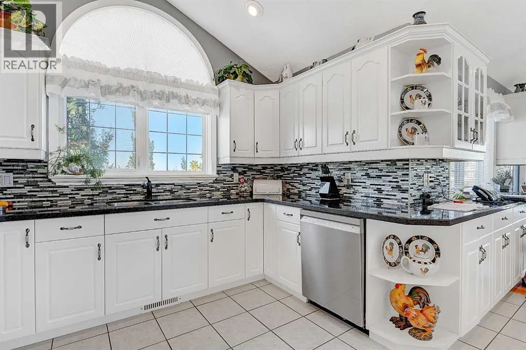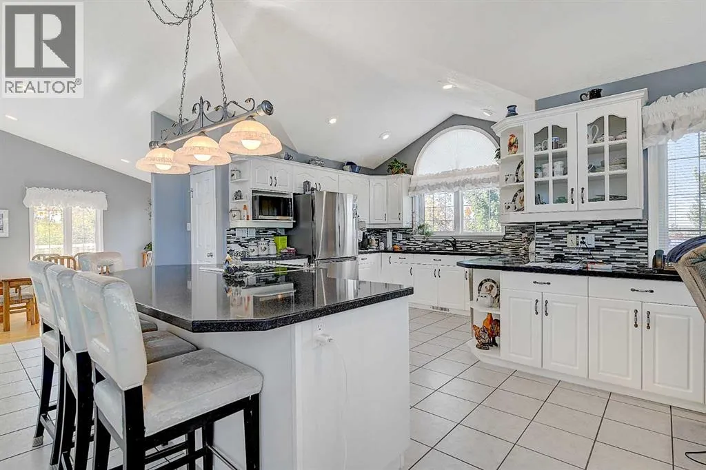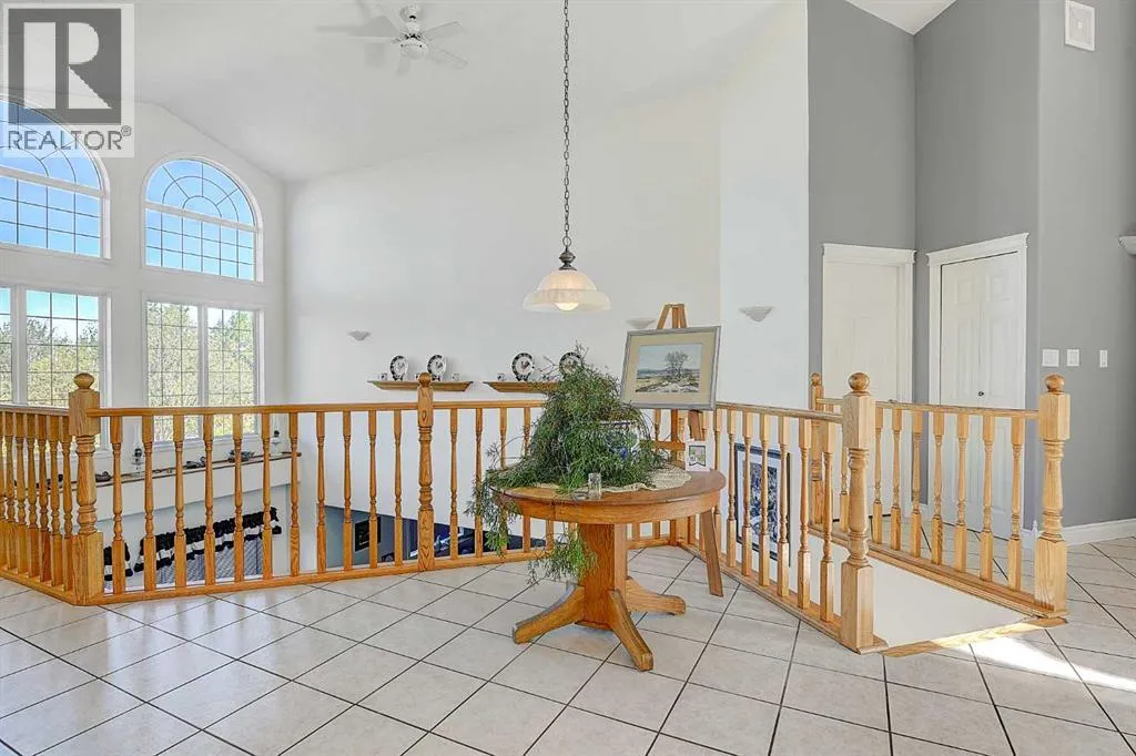 Welcome to Hayfield Drive, Old Town Estates - one of the nicest properties in the area. This 1.5-acre property offers mountain views, full town services and bussing to school. A beautifully designed home featuring an an open-concept kitchen, dining, and living area with vaulted ceilings and a view of the lower level. The main floor includes 2 bedrooms and 2 full bathrooms, and a spacious entry off the garage with laundry. A beautiful spiral staircase leads to the fully developed basement, which includes a family room with a wood fireplace, 2 additional bedrooms, a full bathroom, a cold room, a wine room, ample storage, and a walkout to a 3-season room/greenhouse and the rear yard. This home is equipped with in-floor heat, forced air heat, and central A/C. Enjoy outdoor living with a large west-facing deck and a stone patio on the east side. The double-heated garage includes a floor drain, while the additional shop/storage area provides power, lighting, and a wood floor. The paved driveway leads into park-like landscaping, complete with a variety of trees, shrubs, flower gardens, fruit trees, berry bushes, and a vegetable garden. (id:27476)