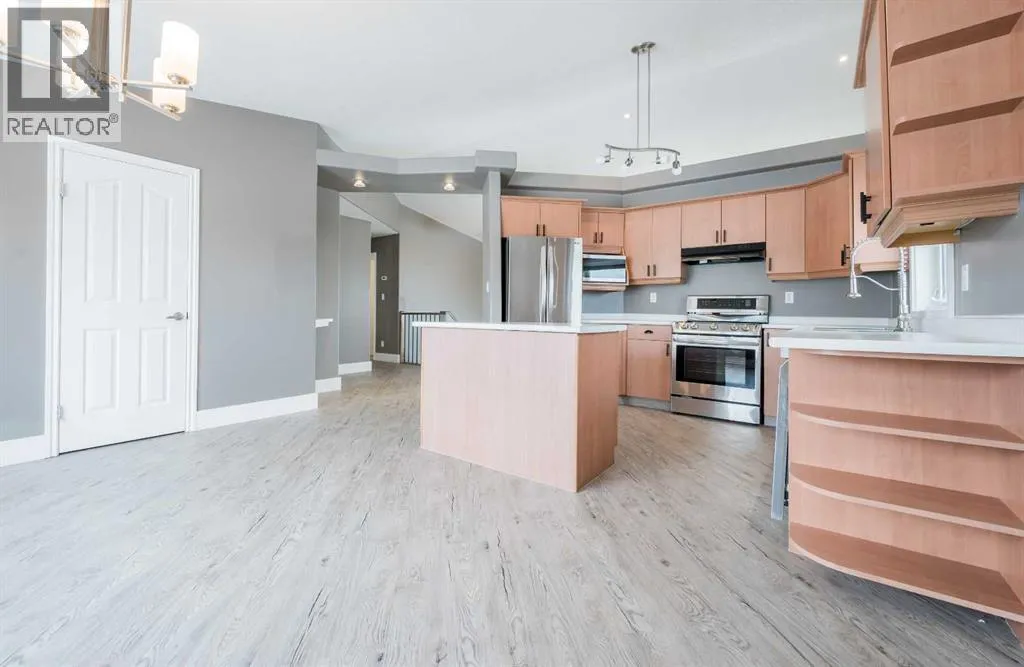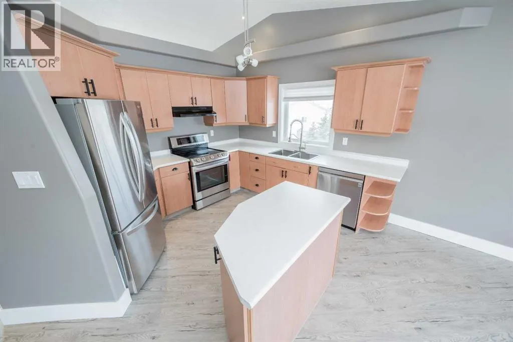 Stunning fully developed home situated on massive 0.61 acre lot that boasts mountain views from your living room! As you pull up to your new home you will appreciate the large driveway allowing for ample parking + true RV Parking. Spacious entry way welcomes you with open arms. Making our way up a few stairs into your living room with large window allowing natural sun light in all day long. Kitchen hosts ample cabinet + counter space with updated stainless steel appliances, kitchen island and must have pantry. Dining allows for a table of any shape or size for all occasions, with back deck access great for entertaining and BBQing. Remainder of main level is completed with the master bedroom with walk in closet and updated stunning en-suite with grande walk in tiled shower. Plus two more bedrooms and full bathroom. Let's make our way to the finished basement that has huge family room, fourth bedroom, underneath the stairs storage, and laundry/utility/storage room with plumbing for a third bathroom. Heated attached 22.1x25 double car garage with epoxy flooring is wonderful for our long winters. Back yard is fully fenced with no lack of space for activities or future detached garage/shop and is complimented nicely with large 12x20 shed and raised garden boxes. Extra insulation blown into attic with added vapour barrier 1.5 years ago, updated flooring upstairs, paint are just some of the renos completed by the sellers that show the pride of ownership of this lovely home. Book your viewing today! (id:27476)