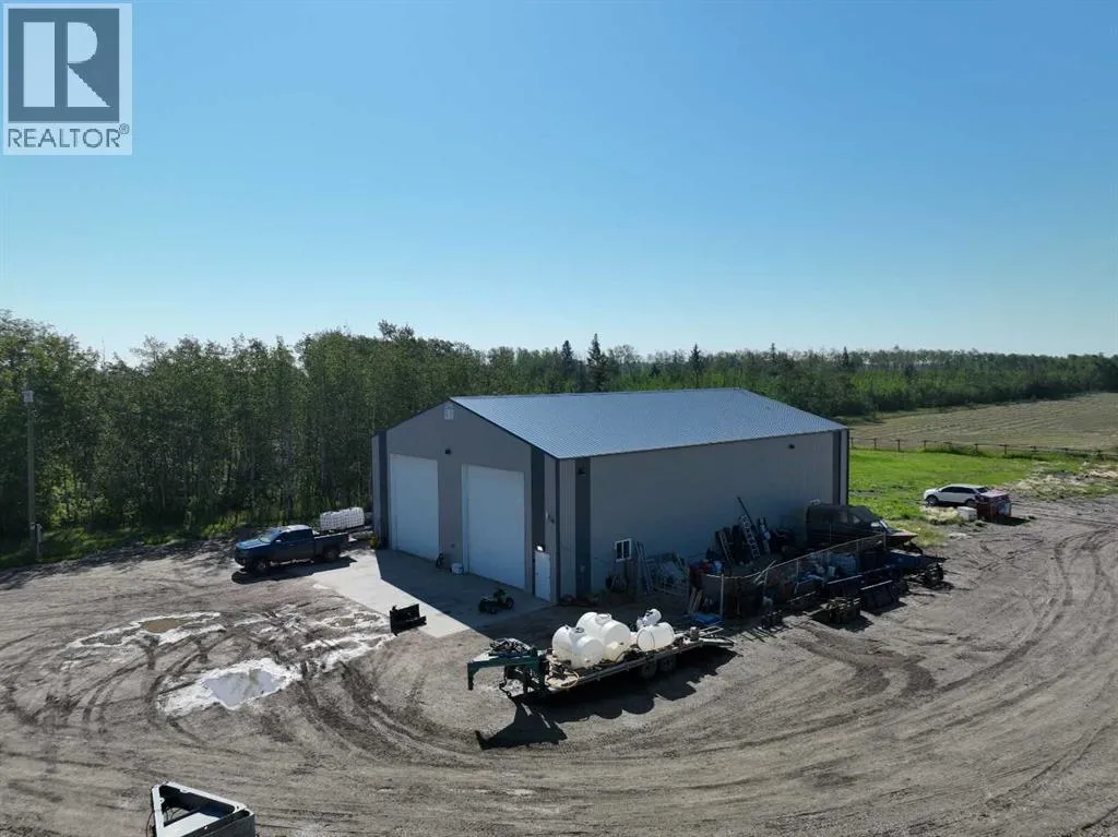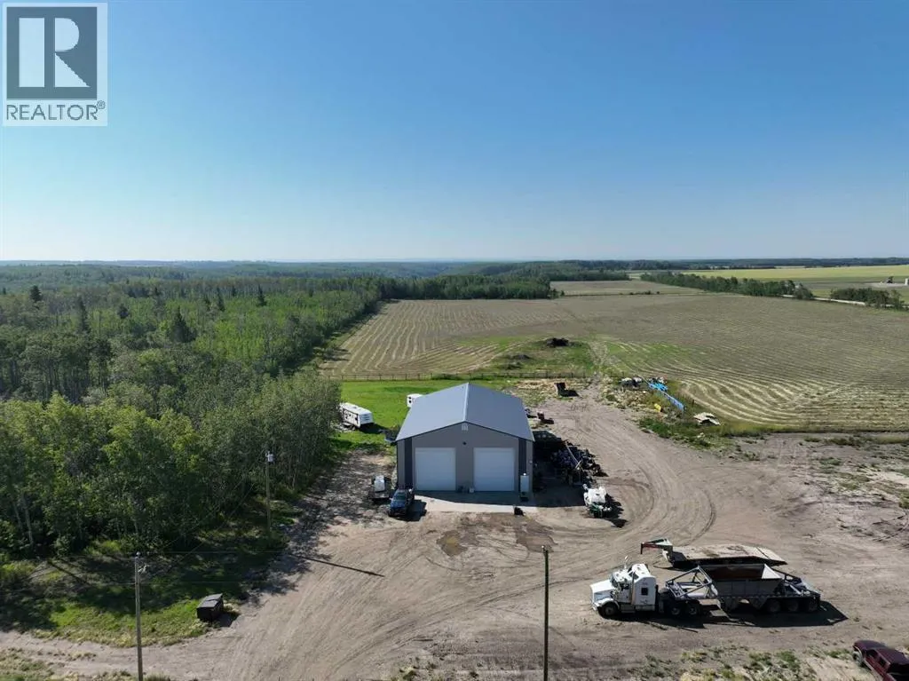 141 acres of land situated in the robust County of Grande Prairie! Massive shop on a concrete pad foundation also has attached residence built in 2012. The oversized, 54â x 80â shop has two overhead doors, sump and in floor heating plus wrap around concrete patio off the front and kitchen entry. Main floor features a family room open to the garage, 2-piece bathroom, den and utility room. Second floor features an open concept kitchen, dining and living room area.Custom features throughout includes hardwood & tile flooring, kitchen with wood cabinets & tile backsplash. Two bedrooms includes large bedroom with walk in closet plus there is laundry and 4 piece main bathroom.This unique parcel consists of approximately 4 acres of homestead, potential for gravel pit, and 77 acres treed with river bank acres along the âBeaverlodge Riverâ. Recreational dream property, with plenty of quiet, nature, and few neighbours plus flexibility of agricultural & business pursuits. Large, gravelled driveway and site, and is fenced and gated. ***Please note: property is sold âas is, where is, at time of possessionâ. No warranties or representations.*** Contact a REALTOR® today for more info or to book a viewing! (id:27476)