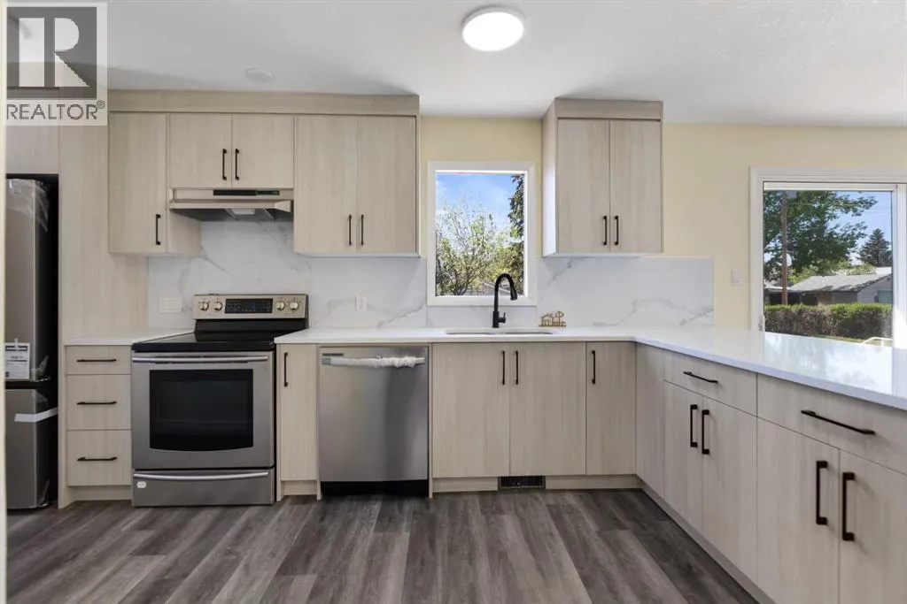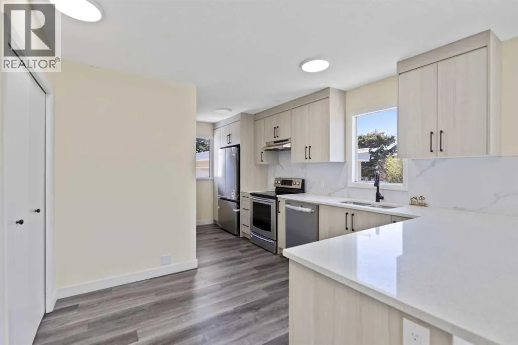 Discover exceptional value and space with this charming home nestled on a massive 120' x 130' lot â over 1/3 acre of beautifully landscaped grounds featuring manicured hedges and vibrant flower beds.From the moment you arrive, the grand entrance with elegant marble flooring sets the tone for the style and warmth found throughout the home. The spacious living room, filled with natural light from large windows and anchored by a cozy fireplace, offers the perfect setting for both relaxing evenings and lively gatherings.The main floor hosts three well-appointed bedrooms, a four-piece bathroom, a functional kitchen, and plenty of built-in cupboards providing generous storage.The lower level expands your living space with a welcoming family room, an additional bedroom, a cold room, a three-piece bathroom, and a recreation room ideal for hobbies or entertaining.Added convenience includes upstairs laundry and a large back entrance for easy everyday living.Outdoor enthusiasts will love the double garage with front and back doors, offering seamless drive-through access. A paved driveway enhances curb appeal and practicality alike.Properties with lots this large are truly rareâdonât miss your opportunity to make this exceptional home your own! (id:27476)