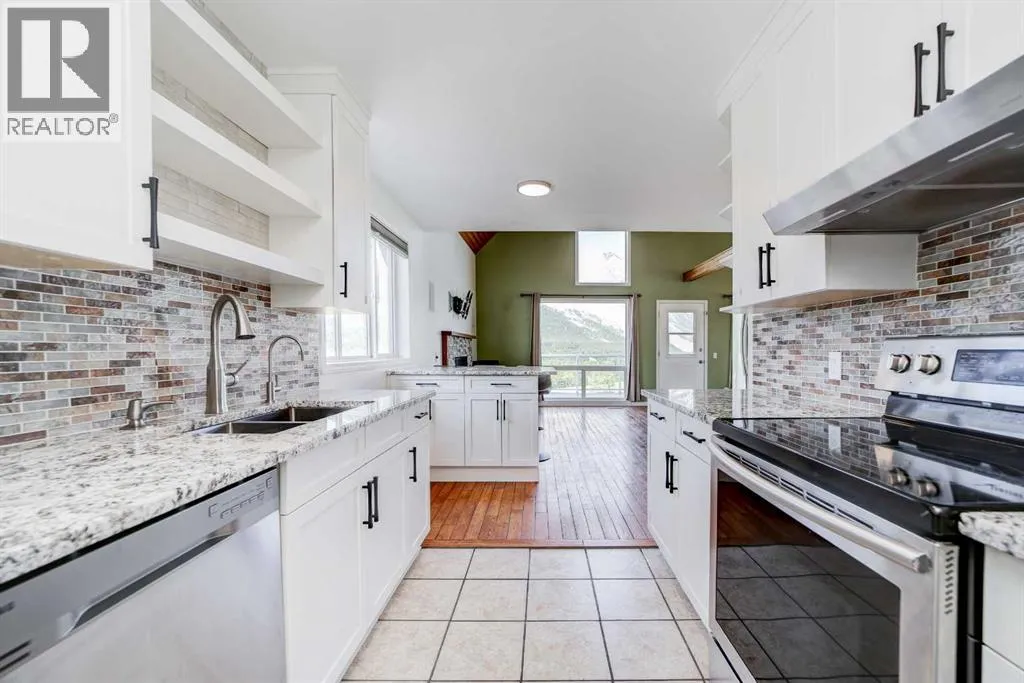 This property truly has it all and is move-in ready! Situated on 0.91 acres at the end of a quiet street, the home has the most amazing, unobstructed mountain views. Built on a slab foundation, the first floor features an enclosed sunroom - the perfect place to enjoy the views in any weather, with an electric fireplace for cooler days. The family room features dual patio doors leading to the sunroom, providing natural light and access to the views. This level also has a large bedroom and beautifully renovated bathroom and kitchenette. Subject to the appropriate municipal approval, it would make a great short-term rental. The second level features gorgeous, vaulted ceilings and a large deck, all designed to highlight the beautiful mountains. There are rich hardwood floors, and a fully renovated kitchen with granite countertops and good-sized breakfast bar peninsula. The open floor plan brings everyone together with a wood fireplace providing warmth & ambience. The top floor is dedicated to the private primary bedroom, complete with four-piece ensuite and walk-in closet. Additional amenities include a double heated garage and a custom-built 16â x 8â storage shed that matches the homeâs exterior. Part of the lot is newly fenced providing some privacy, with an expansive deck, built-in garden boxes and a large gate suitable for RV or additional parking. An added bonus - the electrical wiring is in place to add a hot tub to the deck. Recent upgrades to the property include central air conditioning, hot water tank, water softener, reverse osmosis water filtration system, carpeting, and remote- controlled blinds on the top windows, as well as insulation, windows and a gas furnace in the garage. The propertyâs exterior was improved with the addition of new foam insulation and new stucco on the house, a newly poured concrete driveway and walkway, and fresh paint on the garage. There is so much to see at this property - check out the attached video and virtual tour. Call your favourite REALTOR® to schedule a showing today! (id:27476)