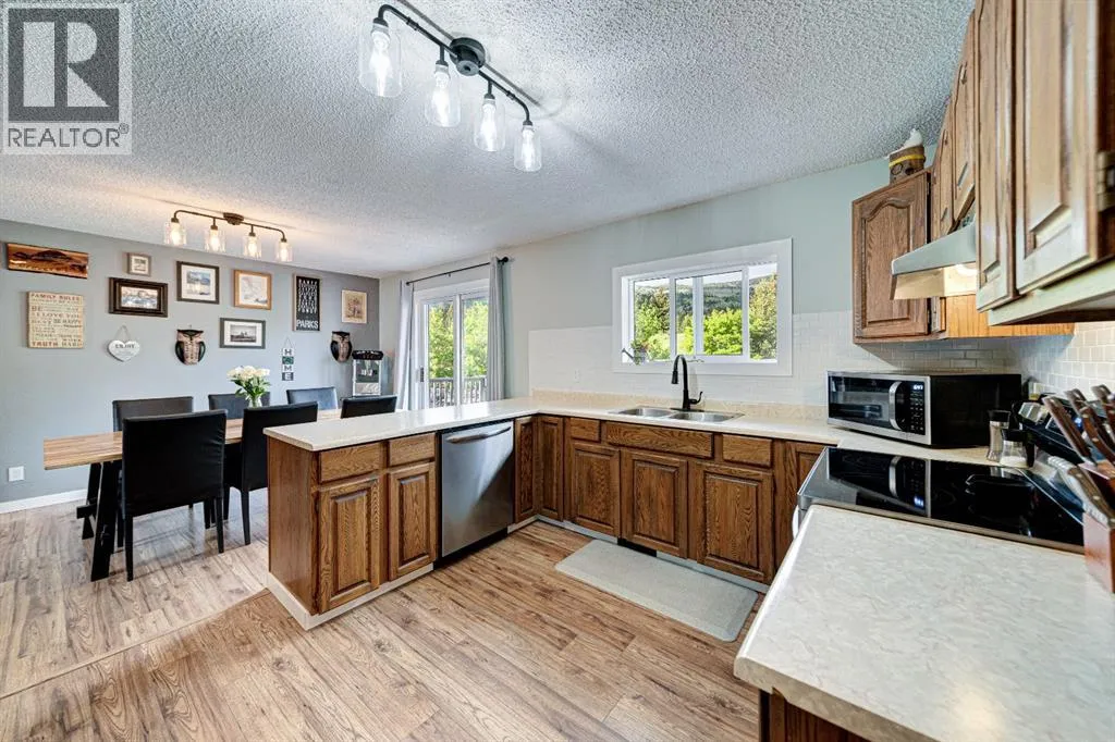 Beautifully renovated and ready to impress! This spacious 5-bedroom, 3-bathroom home offers modern updates, incredible views, and a massive backyard perfect for entertaining or family fun. Step outside to a large back deck overlooking your private oasis â complete with a fire pit area and plenty of room to play, garden, or relax.Inside, youâll find a bright, updated interior with thoughtful finishes throughout. The drive-through garage and convenient back lane access add functionality, while the open layout offers comfortable living for families of all sizes.Whether youâre hosting summer barbecues, enjoying quiet evenings under the stars in the hot tub, or just soaking in the view, this home truly has it all. Donât miss your chance to own this fantastic property with space, style, and scenery! (id:27476)