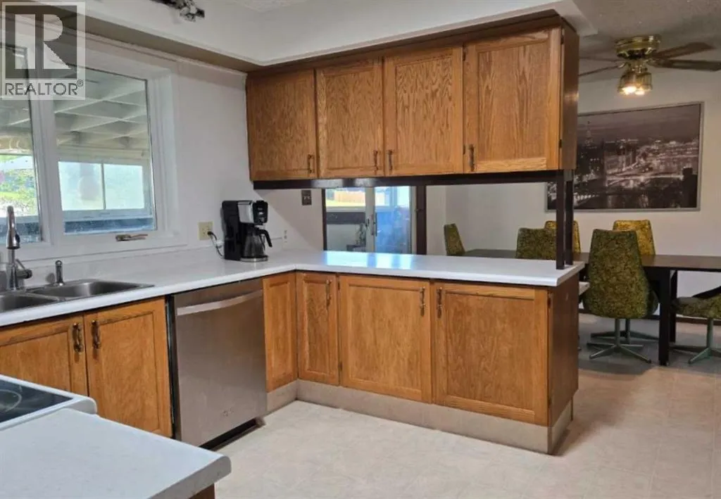 Room for everyone, plants included.This 1333 sq. ft. home sits on a sunny corner lot in Bellevue and has space for just about everything: 5 bedrooms, 3 bathrooms including an ensuite, and more storage than youâll know what to do with. The kitchen has generous cabinet space and a sit up bar for morning coffee or midnight snacks. The dining area leads straight into a bright 28' x 11' sun room, unheated, but absolutely perfect in the warmer months for lounging, entertaining, or turning into a full-blown plant paradise. Downstairs, the finished basement has a big family room, two more bedrooms, another full bath and enough space for guests, hobbies, a home office or just an escape tucked away downstairs. Outside, youâve got a fenced backyard, double garage with backyard access, a garden shed with power for DIY'ers and tinkerers, and mountain views that remind you daily that life here is pretty sweet. Don't miss out on this one! (id:27476)