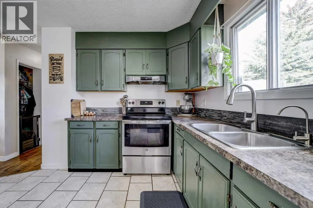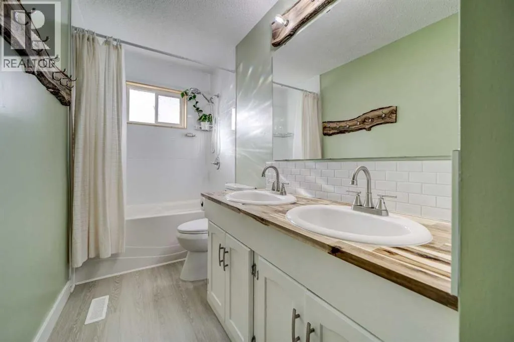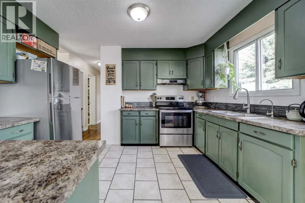 Four bedrooms under $500,000 in the Crowsnest Pass is genuinely hard to find, and this bi-level in Bellevue delivers exactly that. With 1,036 square feet on the main level and an additional 900 square feet below, there is real room here for a growing family to spread out, settle in, and make their own. The living room centres around a floor-to-ceiling stone wood-burning fireplace that gives the space an unmistakable warmth and character you simply cannot replicate. Three bedrooms sit on the main floor alongside a renovated five-piece bathroom that is one of the home's true highlights. The double vanity, live-edge wood countertop, and subway tile backsplash bring a thoughtful, finished feel to a space that gets used every single day. Downstairs, a fourth bedroom and a renovated three-piece bathroom with a corner shower add both function and privacy, making the lower level a natural fit for older kids, extended family, or overnight guests. A generous games room anchors the basement, and an additional flex space opens the door to a fifth bedroom, a home office, or whatever the next chapter of your life actually calls for. Outside, the fully fenced yard gives kids and pets room to run. A deck off the back of the home creates an easy outdoor living space, garden beds are ready for the growing season, and a storage shed keeps everything organized. Back lane access also leaves room for a future garage. Crowsnest Pass has seen steady growth over the past several years, with rising property values and increasing investment in the community reflecting strong demand from people who want to live differently. Bellevue sits quietly within that momentum, close to schools, parks, the local arena, and a community trail system that connects the entire Pass. Skiing at Pass Powderkeg, Castle Mountain, and Fernie are all within reach for families who live for the mountains as much as they live in them. This home has been loved by a young family and is ready for the next one. (id:27476)