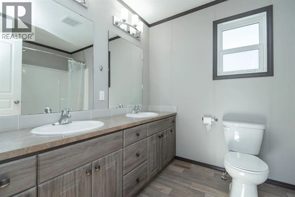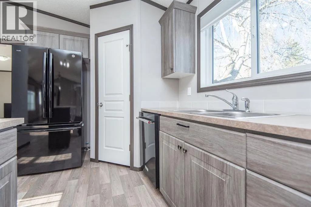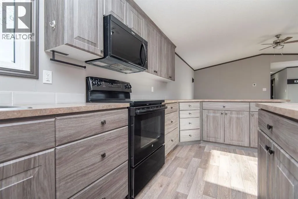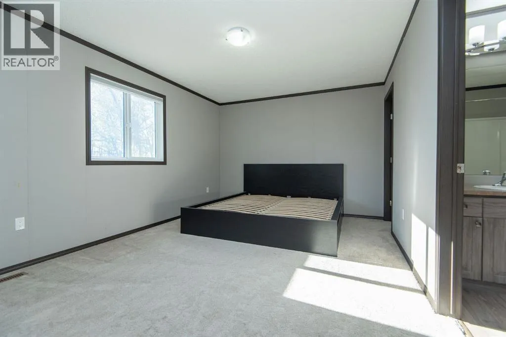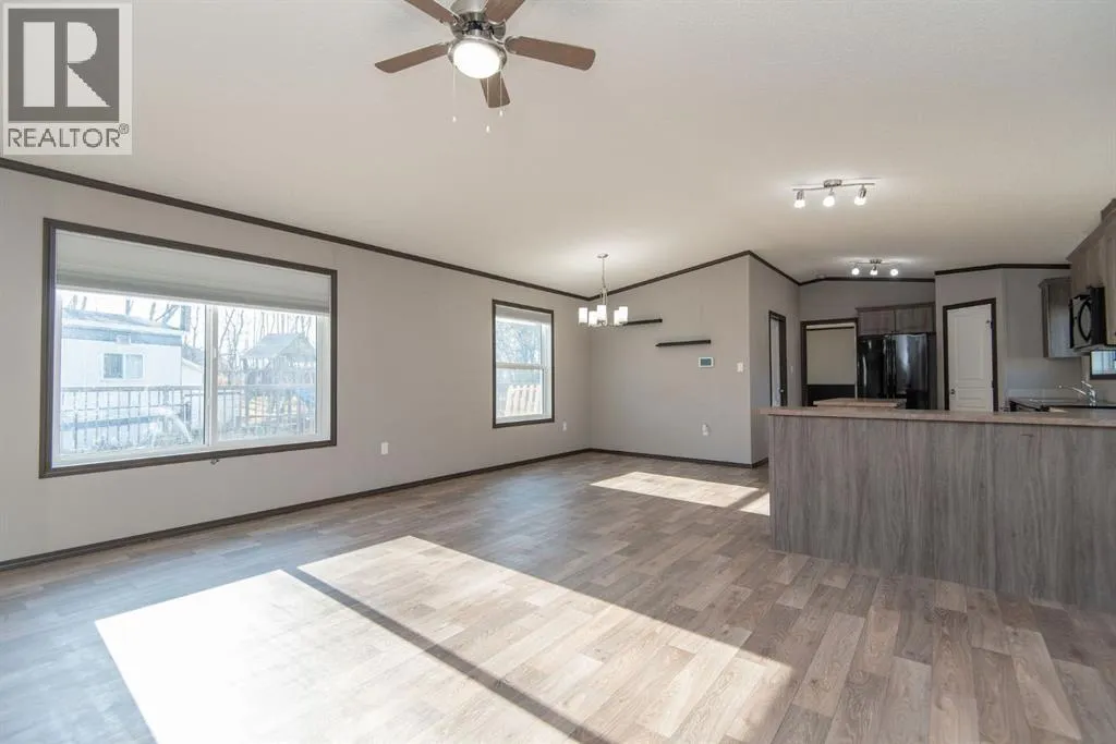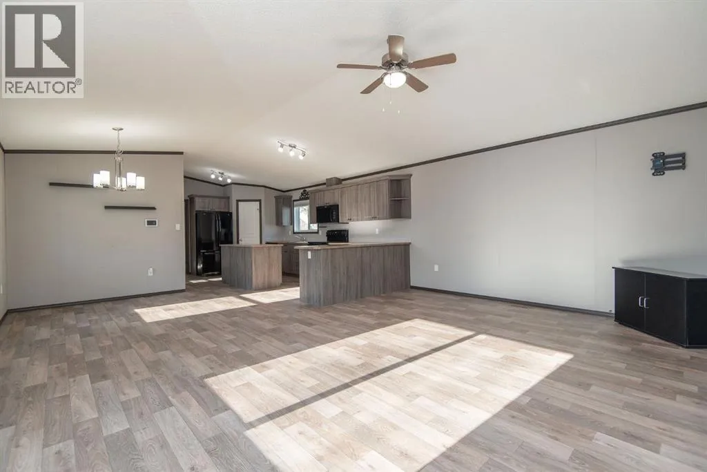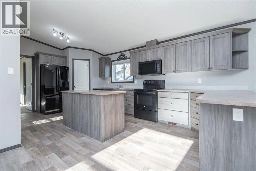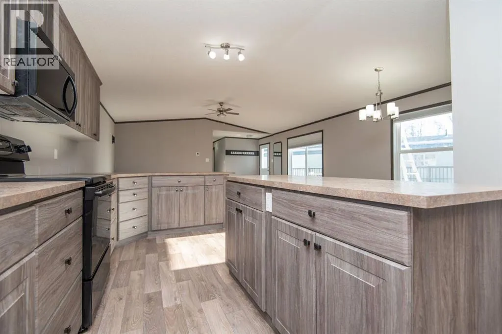 Beautifully maintained and move-in ready, this spacious modular home sits on a huge lot in Benalto Mobile Home Park. The yard is fully fencedâperfect for petsâand the home comes equipped with central air conditioning for those warm summer days. A massive deck runs nearly the full length of the home, offering an ideal space for outdoor entertaining or relaxing evenings.Inside, youâll love the open-concept design with vinyl flooring throughout the living room, dining area, and kitchen. The kitchen features a large island and a generous pantry for all your storage needs. This rare four-bedroom layout includes a full 4-piece main bath plus a luxurious 5-piece ensuite in the primary bedroom.Super easy to show and available for immediate possessionâcome see why this one stands out! (id:27476)