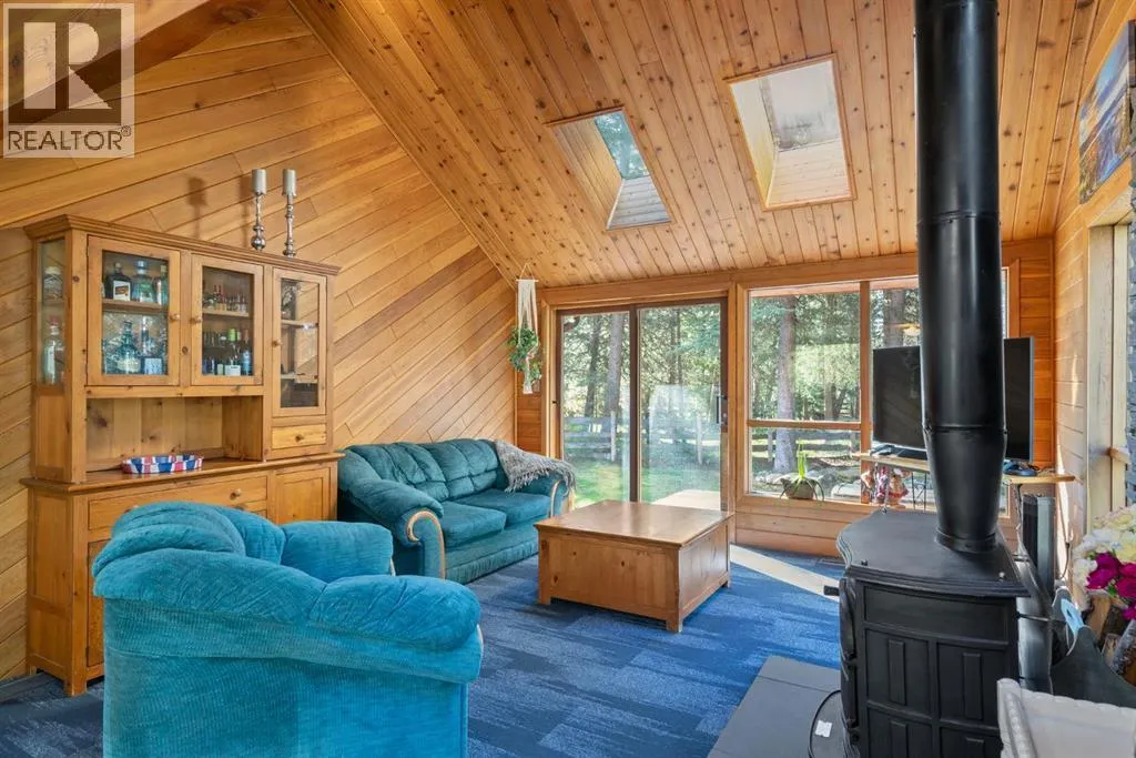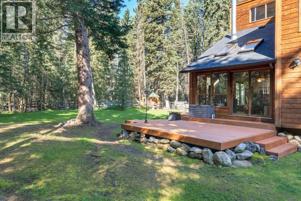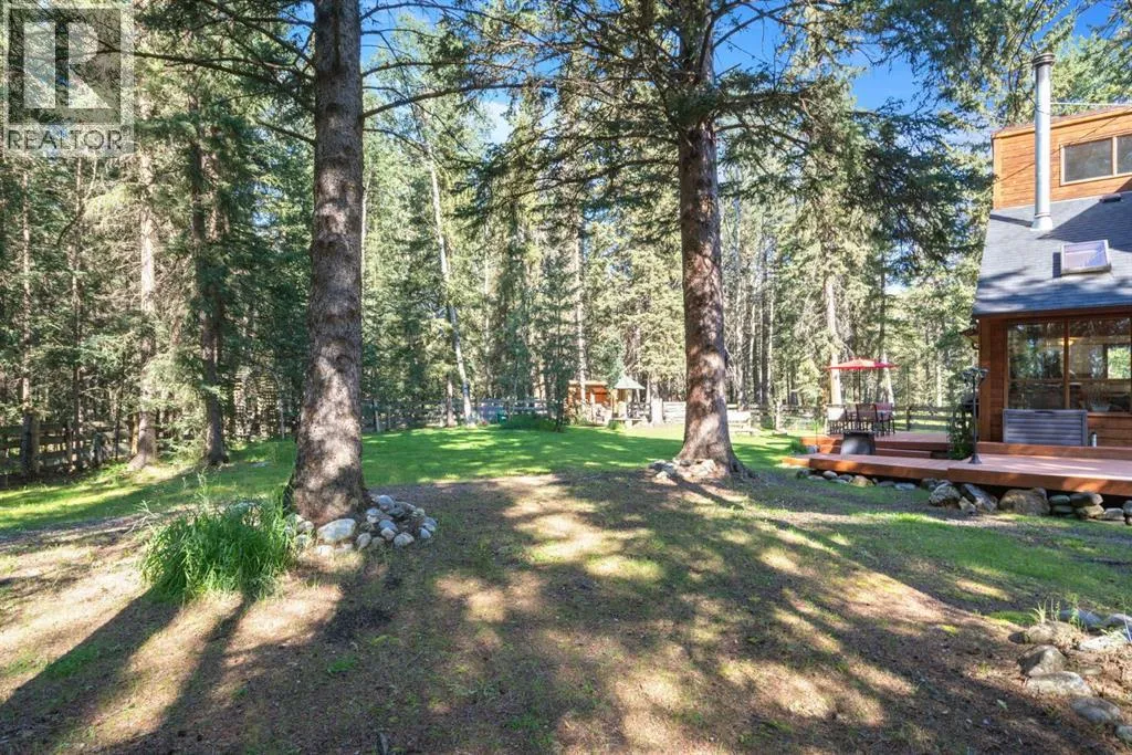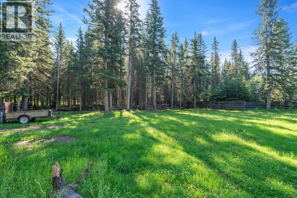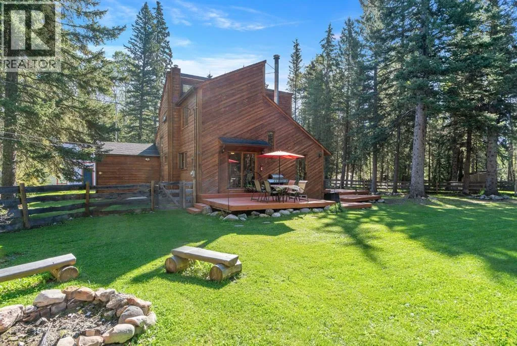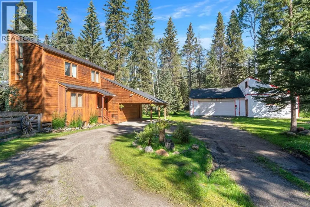 Escape to your own private 2.51 acre woodland paradise with this charming 4-bedroom, 2-bathroom home set on a beautifully treed lot in the serene Benchlands community. Nestled among towering evergreens, this property offers peace, privacy, and the perfect blend of rustic charm and modern comfort. Inside, warm wood accents and vaulted ceilings with skylights create a bright, inviting atmosphere. The sun filled living room features large windows overlooking the forest and a cozy airtight wood burning stove set against a stone feature wall. The spacious kitchen offers ample cabinetry, a gas stove, and direct access to the outdoors, ideal for both everyday living and entertaining. Bedrooms are generously sized, and bathrooms include unique touches such as vibrant tile work and wood finishes. The property includes an oversized detached garage with space to park 2 cars plus workshop space for quads or motorbikes, or woodworking, plenty of parking with a carport also attached to the house. Lush green space for outdoor activities, and the ability to have 2 horses onsite with corrals and horse shelter already in place. With its private driveway, fire pit area, and direct access to nature, this home is perfect for year-round living or a weekend getaway with easy access to the Waiparous area crown lands and the Ghost River just a few minutes walk from your front door. Call to book a showing today. New Starlink internet system just installed and will be left with the property. New roof 2024, new flooring 2024, new paint. (id:27476)