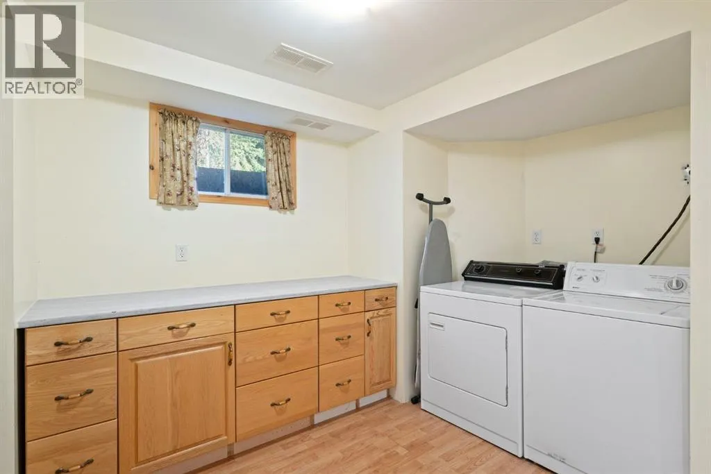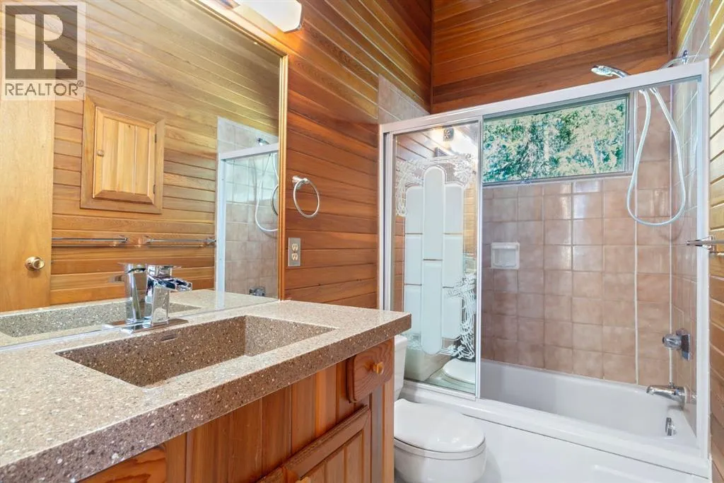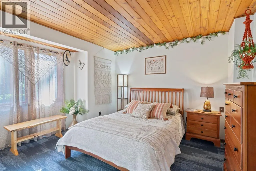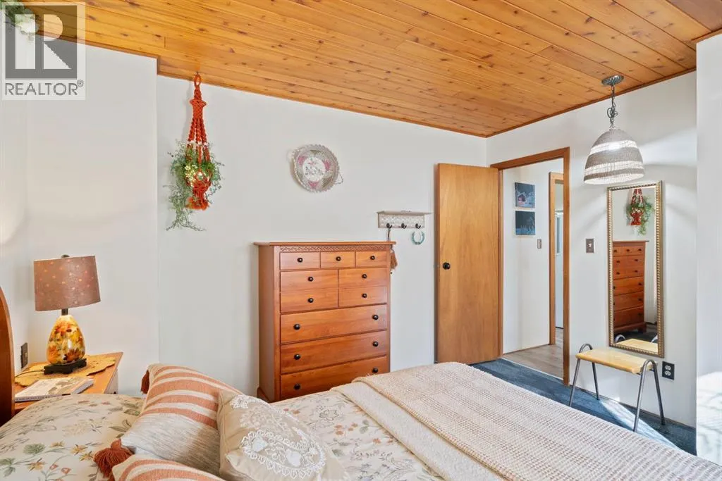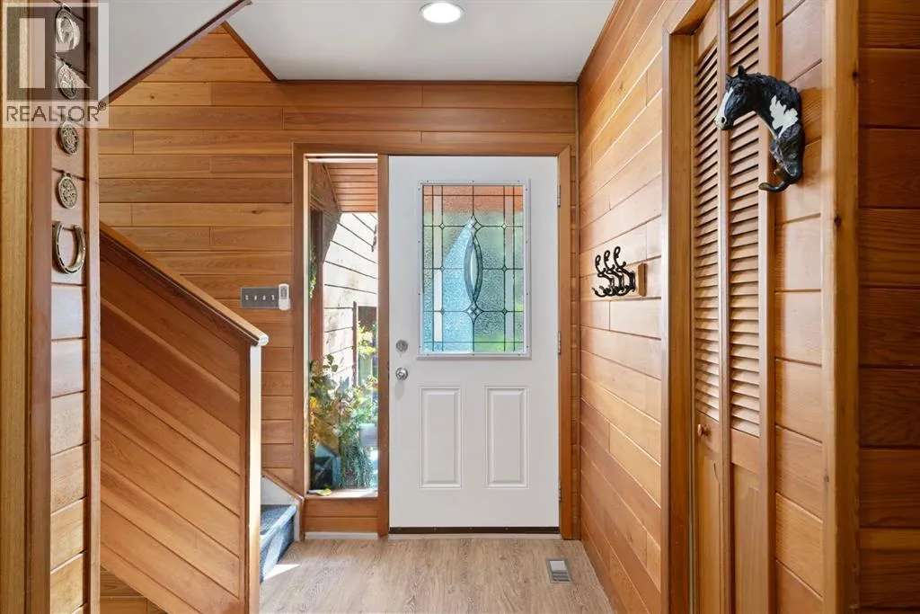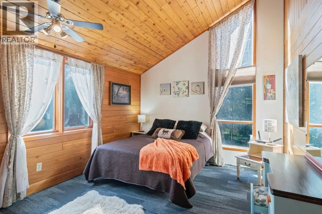 Escape to your own private 2.51 acre woodland paradise with this charming 4-bedroom, 2-bathroom home set on a beautifully treed lot in the serene Benchlands community. Nestled among towering evergreens, this property offers peace, privacy, and the perfect blend of rustic charm and modern comfort. Inside, warm wood accents and vaulted ceilings with skylights create a bright, inviting atmosphere. The sun filled living room features large windows overlooking the forest and a cozy airtight wood burning stove set against a stone feature wall. The spacious kitchen offers ample cabinetry, a gas stove, and direct access to the outdoors, ideal for both everyday living and entertaining. Bedrooms are generously sized, and bathrooms include unique touches such as vibrant tile work and wood finishes. The property includes an oversized detached garage with space to park 2 cars plus workshop space for quads or motorbikes, or woodworking, plenty of parking with a carport also attached to the house. Lush green space for outdoor activities, and the ability to have 2 horses onsite with corrals and horse shelter already in place. With its private driveway, fire pit area, and direct access to nature, this home is perfect for year-round living or a weekend getaway with easy access to the Waiparous area crown lands and the Ghost River just a few minutes walk from your front door. Call to book a showing today. New Starlink internet system just installed and will be left with the property. New roof 2024, new flooring 2024, new paint. (id:27476)