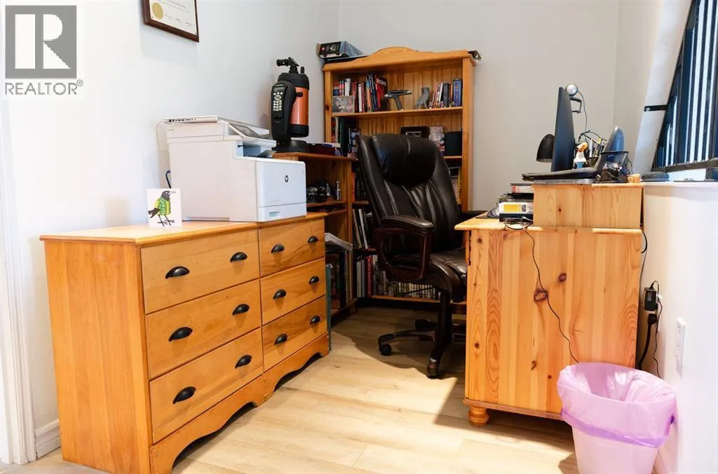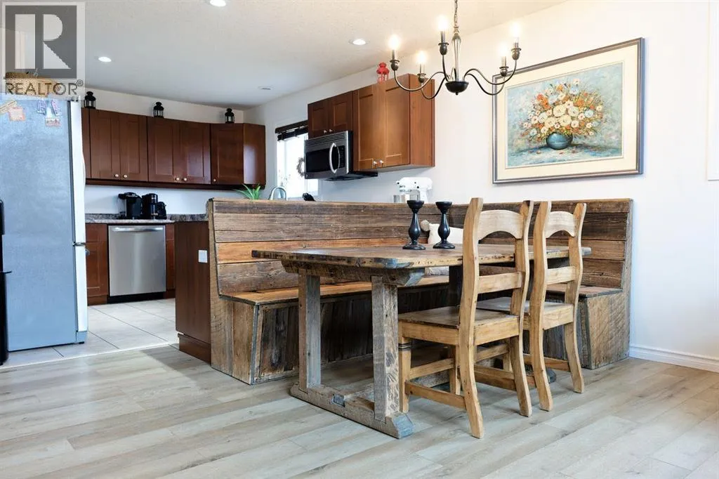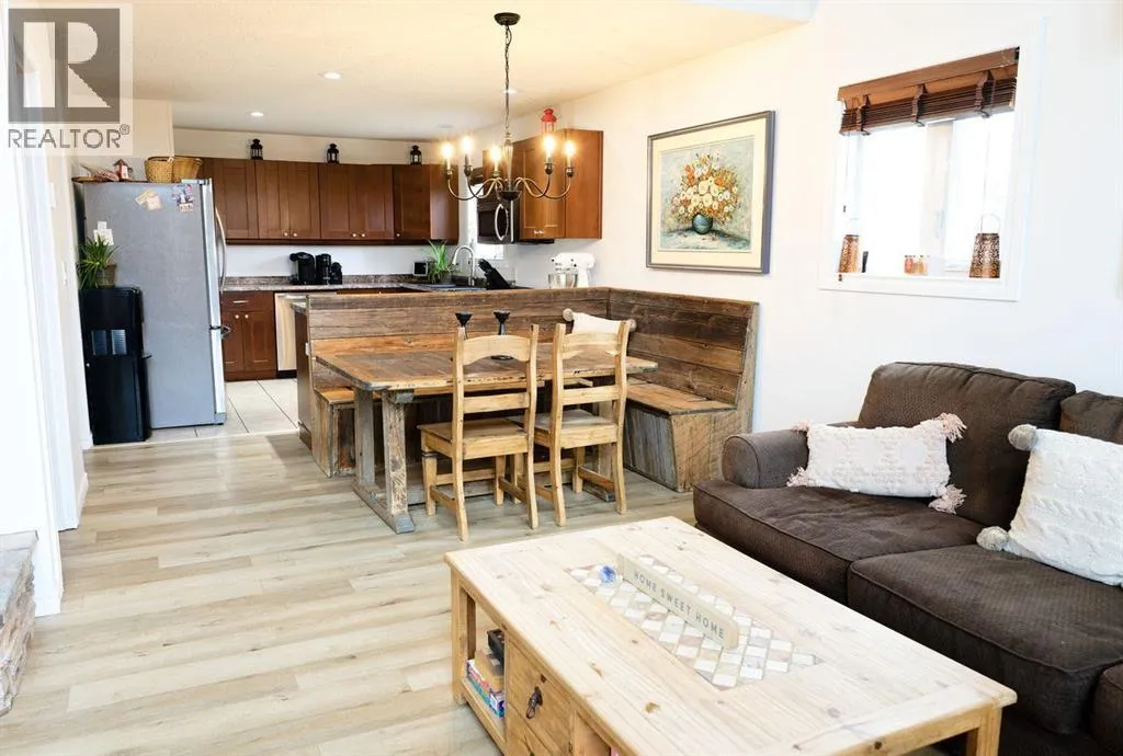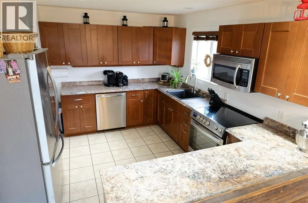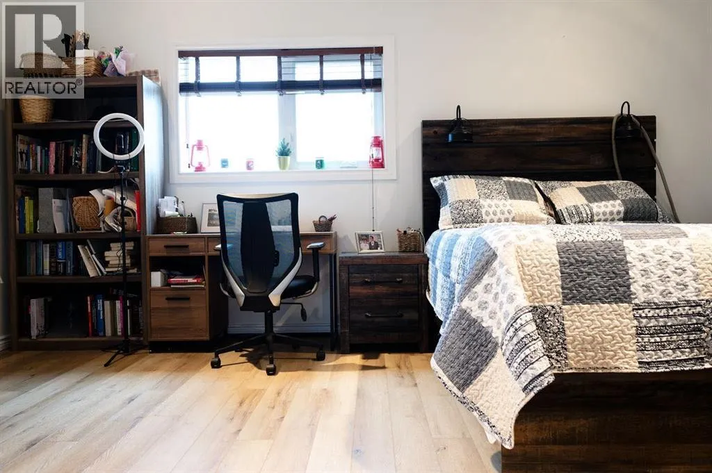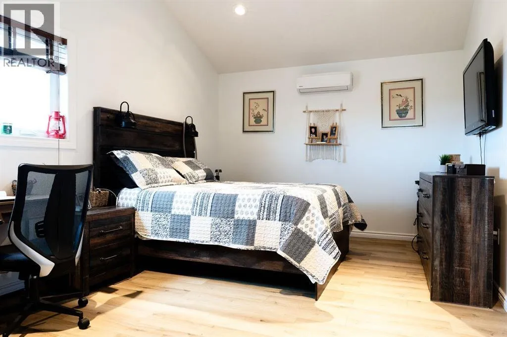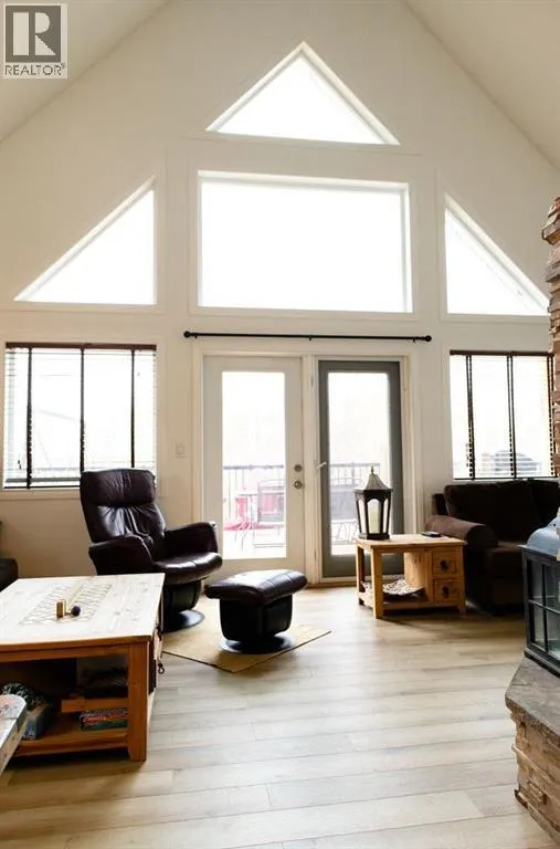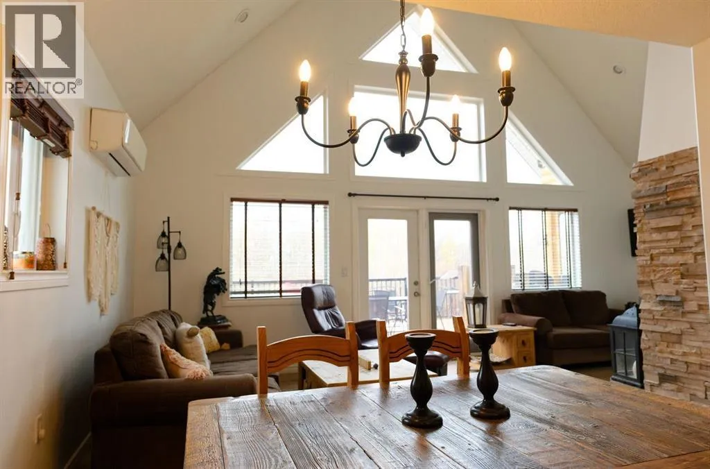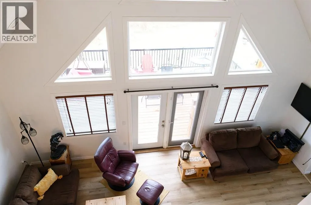 Welcome to your tucked-away retreat! This cozy home offers privacy and a true getaway feel â it may look like an A-frame cabin, but it comes with all the comforts of modern living. Inside, youâll find soaring 17-foot ceilings, a freshly painted interior and new vinyl flooring.This 2-bedroom, 3-bathroom home also offers the option for a 3rd bedroom and features a fully finished basement with in-floor heating. The spacious living room boasts stunning floor-to-ceiling windows with a serene, private view of the yard and a beautiful wood-burning fireplace for those cozy evenings. Garden doors open to a large deck overlooking the property and the creek that borders it.The kitchen includes stainless steel appliances, a rustic built-in nook, a large pantry, and that brand-new induction stove. Upstairs, the loft hosts a spacious primary suite complete with an ensuite and walk-in closet. A durable tin roof means no shingle repairs or replacements to worry about.Outside, enjoy the heated, oversized garage/workshop â perfect for projects, hobbies, or extra storage. This truly special property combines rustic charm with modern convenience â the perfect private escape! Seller is a licensed Realtor in the province of Alberta. (id:27476)