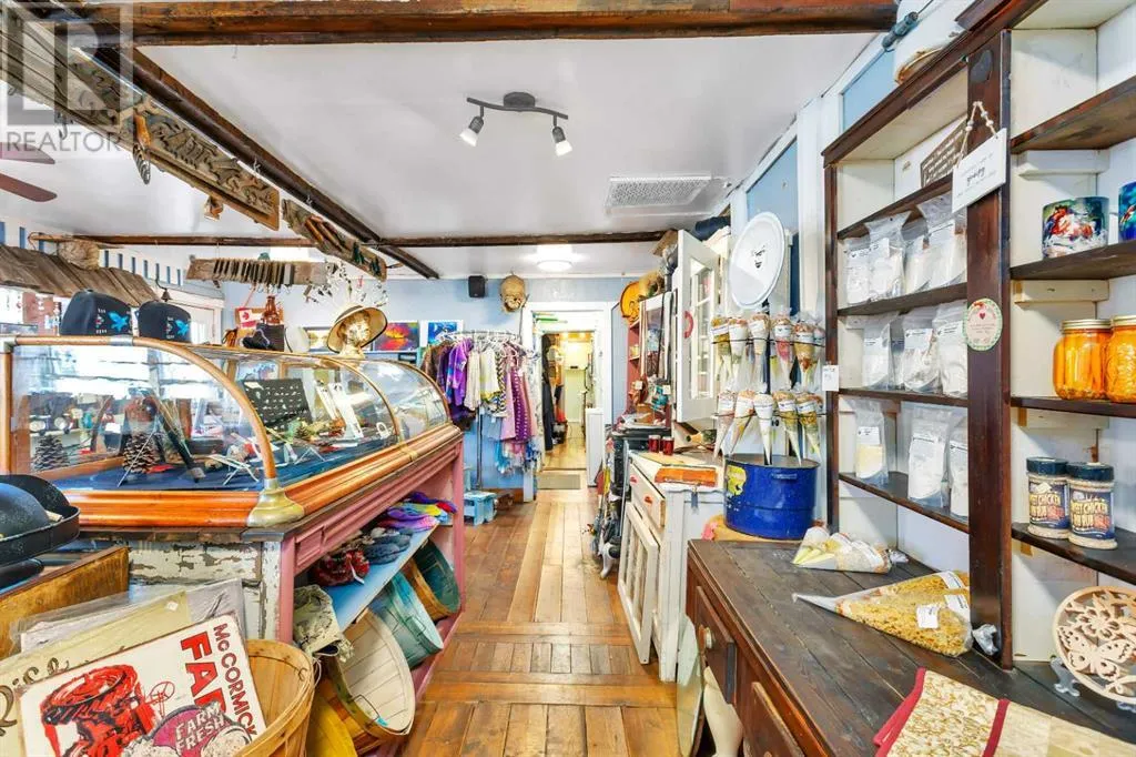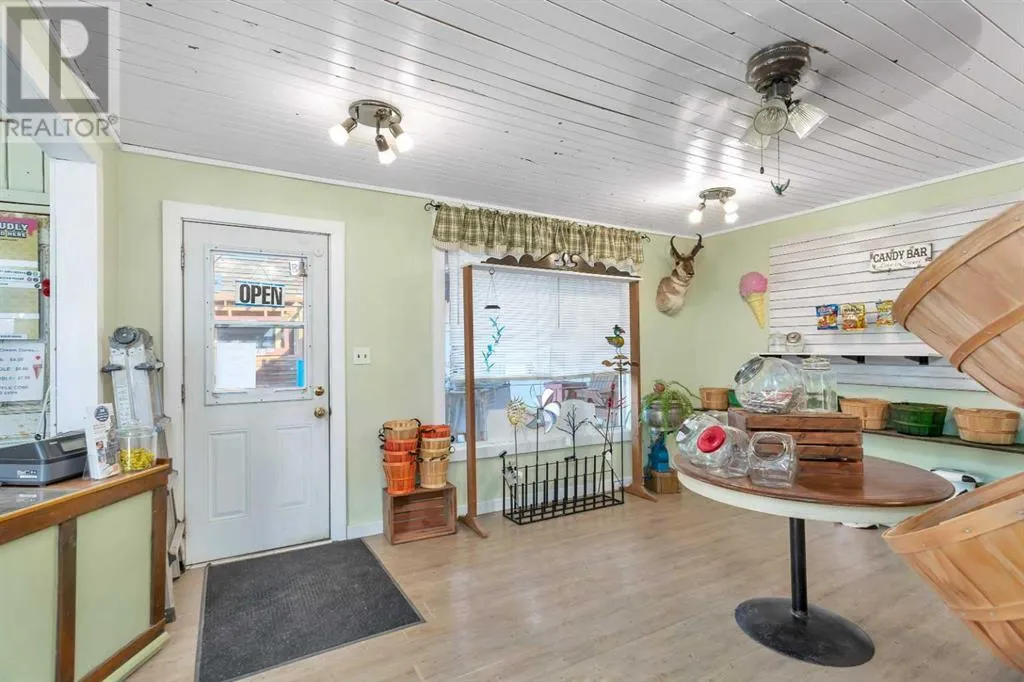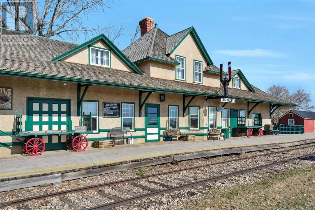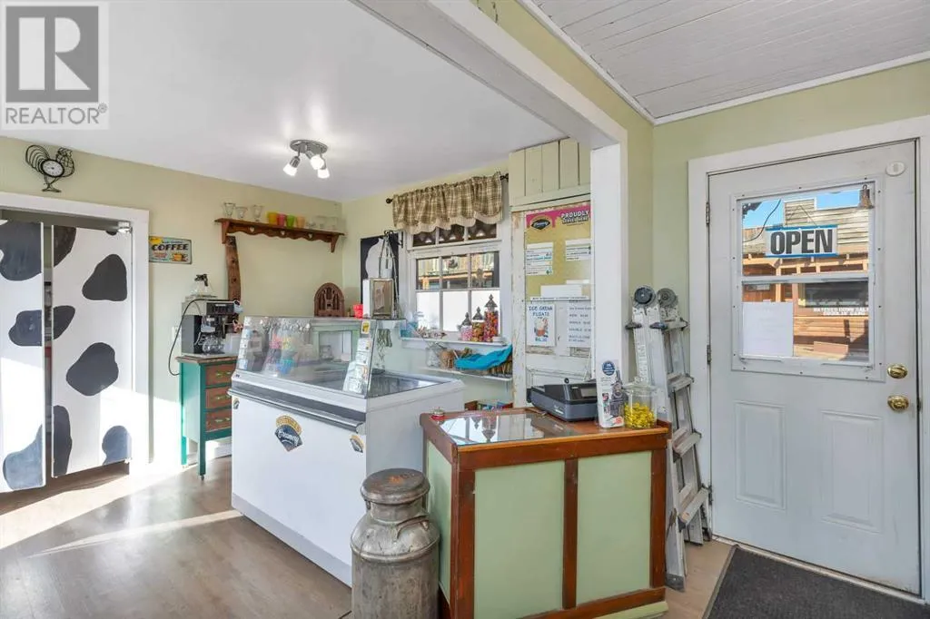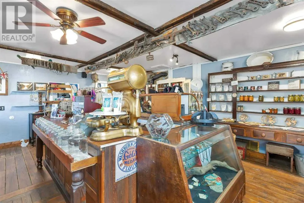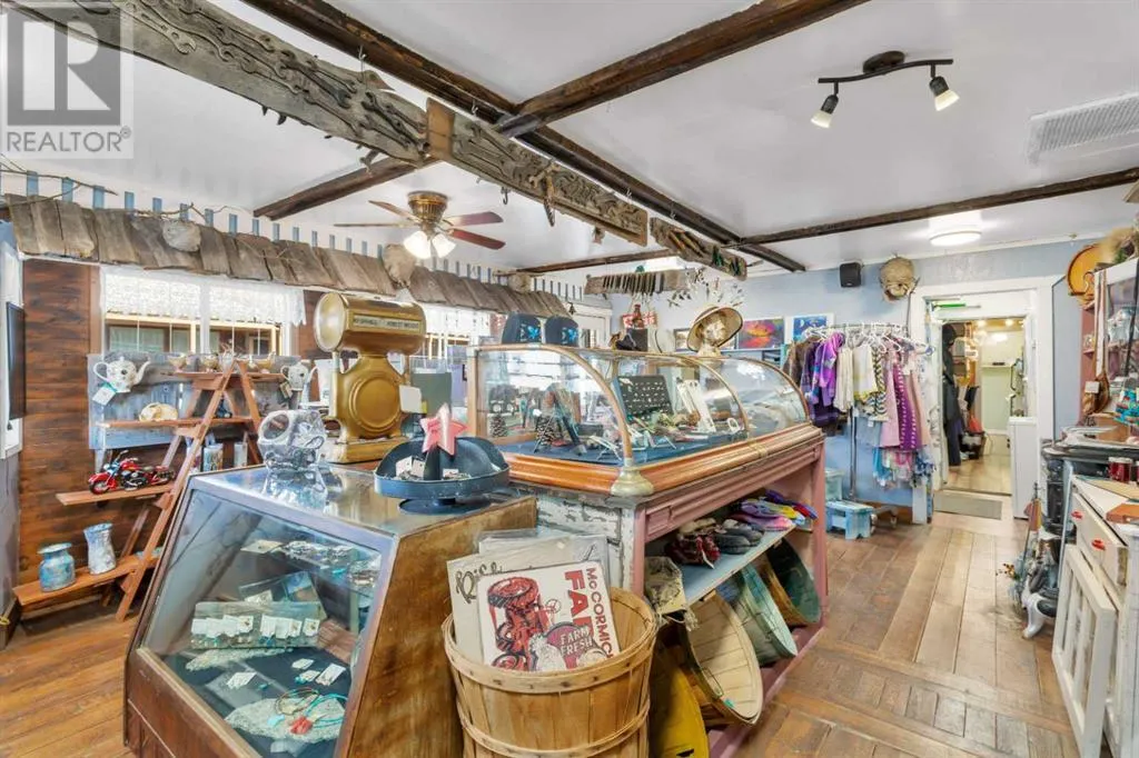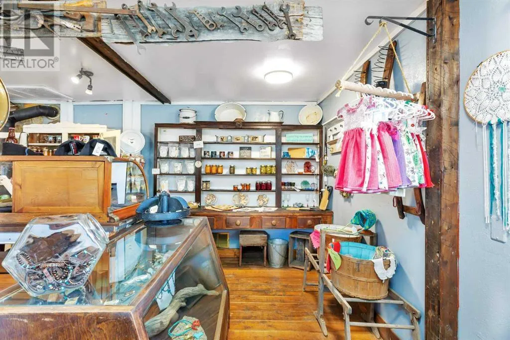 Calling entrepreneurs and investors seeking untapped potential in Central Alberta.Big Valley is rich with heritage, a strategic location, and a busy seasonal steam train. The Alberta Prairie Railway draws thousands of visitors annually, providing foot traffic for retail, hospitality, and entertainment services. With over 1600 square feet of commercial space right on Main Street, the possibilities are endless. The space currently runs as an antique shop, ice cream shop, and gift shop. The land, building, many inclusions, and most décor is offered at this price. There is a customer washroom accessible from the boardwalk on the main level making it easy and convenient for customers. The second storey has a four-piece washroom and separate entrance. Bring your name, business ideas, and make it yours. Do you have a similar business model? Current inventory can be easily negotiated into the sale price! While being a small village, Big Valley offers amenities such as an agriplex hosting minor hockey, tennis courts, baseball diamonds, a k-9 school, and a nine-hole golf course on the edge of the village. Red Deer, Stettler, Drumheller, and Innisfail are less than one hour drive away.Book a showing today and see what affordable business ownership can look like. (id:27476)