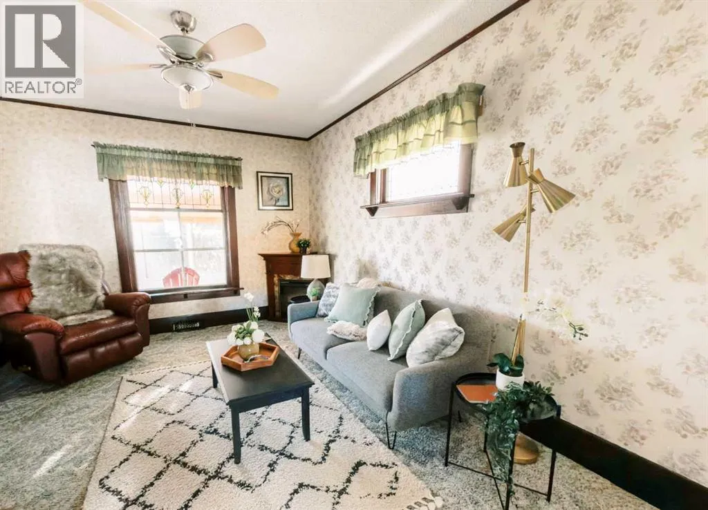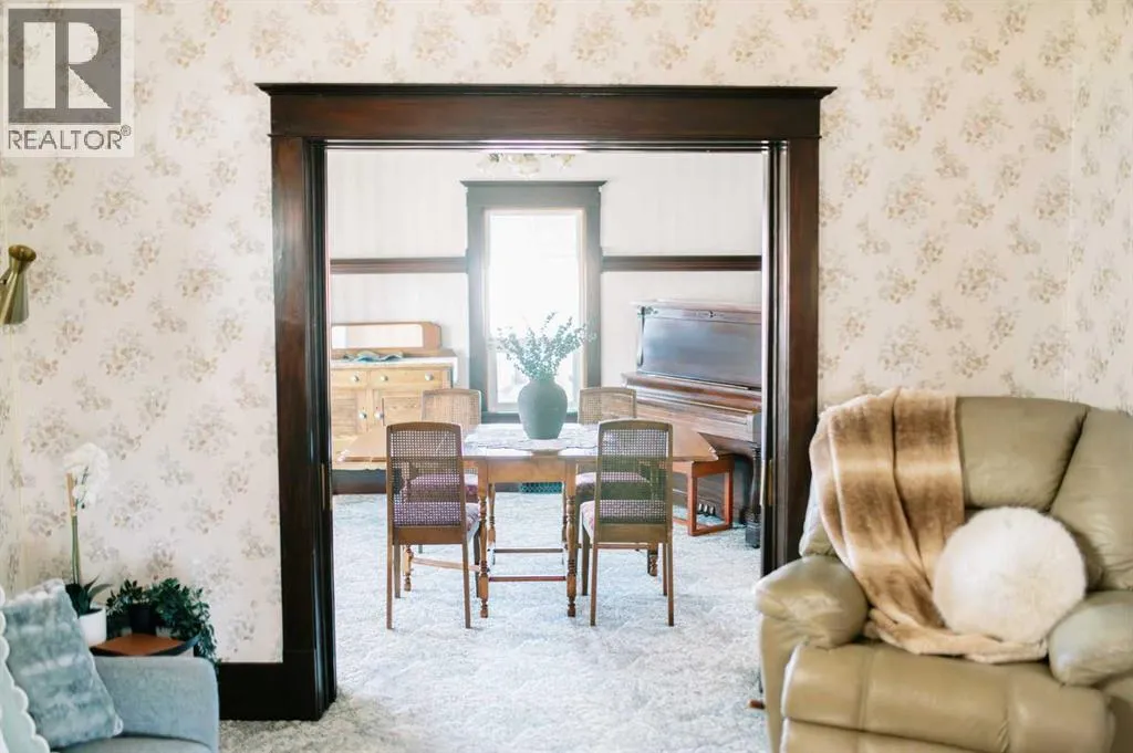 Step into the timeless appeal of this character home in Big Valleyâwhere vintage charm meets modern comfort. Filled with original details and enduring upgrades, this property offers both history and practicality.It has been thoughtfully updated over the years, featuring brand-new siding (2025), cedar shakes (approx. 15 years old), vinyl windows, a brand-new back door (2025), and five of the six appliances purchased within the last five years. Additional upgrades include a high-efficiency furnace (2023), a hot water tank (approx. 2020), and a sewer line roto-rooted in 2025. The list price also includes an electrical panel update (to be completed prior to possession), providing added value and peace of mind.Inside, the original woodwork and stained-glass windows showcase the craftsmanship of a bygone era, and hardwood flooring runs underneath the carpet currently in place. The enclosed front porch adds to the homeâs nostalgic charm, offering a cozy spot to enjoy your morning coffee while taking in the peaceful setting and open views.With four bedrooms and two full bathrooms, thereâs room for family and guests alike. The basement bathroom was redone in 2024 with all new fixtures, including a shower, vanity, and toilet, and most of the basement has been gutted and prepped for finishing, leaving a wide-open slate to design additional bedrooms, a family room, or recreation space.Outside, youâll find an insulated storage shed for all your outdoor essentials and a back deck thatâs perfect for relaxing or hosting casual get-togethers. Ideally located in a quiet spot in Big Valley, a beautiful little town filled with community pride and small-town charm, this home was owned and lovingly cared for by the same family for approximately 80 years, standing as a true testament to quality and pride of ownership (id:27476)