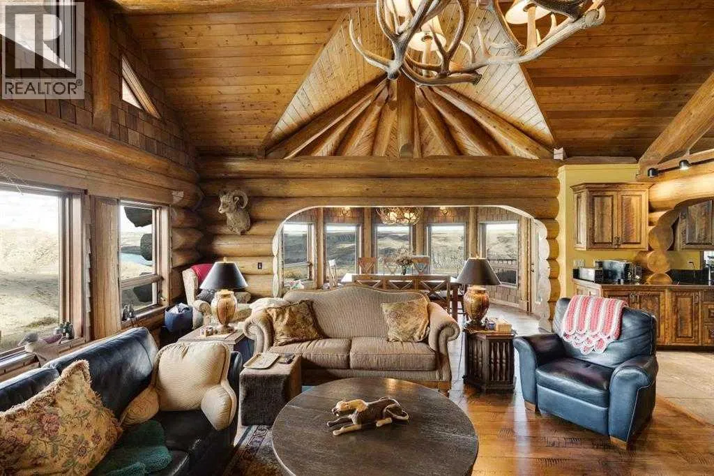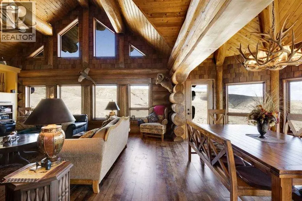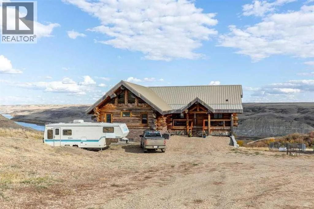 LUXURY RIVERFRONT ACREAGE WITH BUSINESS POTENTIAL â TWO CUSTOM LOG HOMES ON DEEDED LAND! Welcome to a truly rare opportunity to own a spectacular property offering both luxury living and income-generating potential. Nestled in a private setting overlooking the breathtaking South Saskatchewan River Valley, this one-of-a-kind property features two handcrafted Cascade log homes built from premium 16â18â Western Red Cedar, all on deeded land. Located just over an hour from Medicine Hat and 3.5 hours from Calgary, this remarkable retreat blends high-end rustic design with endless lifestyle and business possibilitiesâfrom a full-time luxury Airbnb or hunting lodge to an equestrian escape or artistâs retreat. MAIN RESIDENCE â WALKOUT BUNGALOW | ±5,000 SQ FT. This stunning log home is a masterpiece of craftsmanship and comfort. Step inside to soaring vaulted ceilings, distressed maple hardwood floors with granite counters, and artisan-built cabinetry throughout. Enjoy two custom antler chandeliers (elk & deer), solid carved wood doors, and commercial-grade appliances in the gourmet kitchen built for entertaining. The spacious layout includes: Grand country-style kitchen with panoramic views, expansive great room and formal dining area, massive primary suite with spa-like ensuite (dual sinks, soaker tub, walk-in tile shower, and two walk-in closets), Second bedroom, office/sunroom, guest bath, and laundry on the main level. Impressive view span through all the main level windows in the home. Walk-out basement with family room, rec room, flex room, full bath with a large jet tub, and a custom tiled shower and a sauna. Multiple decks/seating areas on both levels invite you to soak in the serenity and stunning views.SECOND RESIDENCE â âBIG BUCK LODGEâ | ±1,000 SQ FT - Perfect as a guest house, income suite, or family retreat, this charming 3-level log home offers: Open-concept main floor with kitchen, dining, and living area, loft-style bedroom with ensuite upstairs, fully dev eloped lower level with a second bedroom/family room, full bathroom, laundry, and utility space. Currently operated as a successful Airbnb/vrbo, the second home presents excellent short-term rental income potential or space for extended family and guests. THE LAND â ±150 ACRES OF DEEDED GRAZING LAND. This quarter section of flat, usable land is currently leased for cattle grazing, but its potential is limitless: build horse facilities, add outbuildings or a quonset, or even dream big with a private airstrip. Whether youâre looking to: Launch a luxury guest lodge or full-time Airbnb, establish a hunterâs paradise (renowned for deer and elk), create an equestrian or wellness retreat, build a private multi-family estate, or simply live a peaceful lifestyle immersed in natureâ¦.This property invites you to live boldly and dream big. Donât miss this once-in-a-lifetime opportunity to own a piece of Albertaâs pristine riverfront wilderness with luxury homes, income potential, and wide-open space to grow. (id:27476)