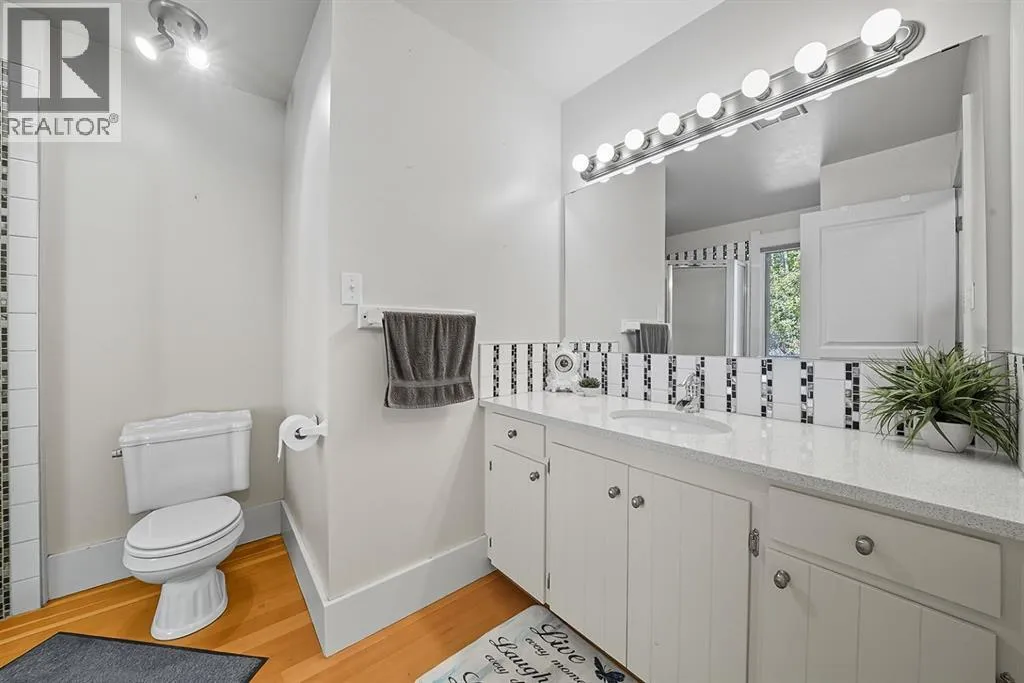 One of a kind opportunity for an acreage in the Summer Village of Birchcliff on the sunny side of Sylvan Lake! On pavement and steps away from the Lake sits 3.64 secluded acres nestled in mature trees with walking/quading trails. There is a one of a kind Charming 2672 sq foot home with a Double attached garage & Triple detached shop (complete with two 8' doors and one 10' door - ideal workshop or storage for your toys). The large country kitchen offers an abundance of countertop space and cabinets. The open concept has the dining room and kitchen looking onto the family room with gorgeous wood detailing. The large dining space is ideal for dinners with family and friends. It comes complete with the custom made wooden dining table. You'll enjoy the great views outside from the wall of windows in the family room. The wood burning fireplace is ideal for staying cozy on cold evenings. Plenty of space for your family to spread out as there is a living room with vaulted ceilings which also offers a second wood burning fireplace. There is a 3 piece bathroom on the main. You'll appreciate the hardwood flooring throughout most of the main floor and up the stairs to the upper bedroom evel. The home uniquely offers 4 bedrooms upstairs including the primary suite with a luxurious ensuite. 3 of the bedrooms have balconies. For your convenience there is a bedroom level bright laundry room. The basement is ideal for storage but also could be developed for your future needs. Peace and privacy are yours with the abundance of trees and private trails.The skys the limit with how youll enjoy the great outdoors. The property has a fire pit area and horseshoe pit. If you enjoy outdoor pursuits and you want to be close to the lake, this may be the Ideal property for your growing family or as a Lake getaway! (id:27476)
