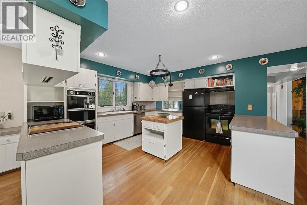 One of a kind opportunity for an acreage in the Summer Village of Birchcliff on the sunny side of Sylvan Lake! On pavement and steps away from the Lake sits 3.64 secluded acres nestled in mature trees with walking/quading trails. There is a one of a kind Charming 2672 sq foot home with a Double attached garage & Triple detached shop (complete with two 8' doors and one 10' door - ideal workshop or storage for your toys). The large country kitchen offers an abundance of countertop space and cabinets. The open concept has the dining room and kitchen looking onto the family room with gorgeous wood detailing. The large dining space is ideal for dinners with family and friends. It comes complete with the custom made wooden dining table. You'll enjoy the great views outside from the wall of windows in the family room. The wood burning fireplace is ideal for staying cozy on cold evenings. Plenty of space for your family to spread out as there is a living room with vaulted ceilings which also offers a second wood burning fireplace. There is a 3 piece bathroom on the main. You'll appreciate the hardwood flooring throughout most of the main floor and up the stairs to the upper bedroom evel. The home uniquely offers 4 bedrooms upstairs including the primary suite with a luxurious ensuite. 3 of the bedrooms have balconies. For your convenience there is a bedroom level bright laundry room. The basement is ideal for storage but also could be developed for your future needs. Peace and privacy are yours with the abundance of trees and private trails.The skys the limit with how youll enjoy the great outdoors. The property has a fire pit area and horseshoe pit. If you enjoy outdoor pursuits and you want to be close to the lake, this may be the Ideal property for your growing family or as a Lake getaway! (id:27476)