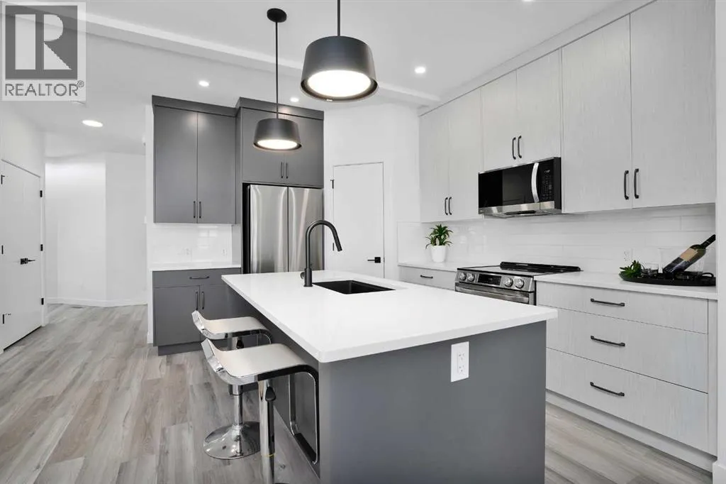 Welcome to the RUBY built by Award Winning Abbey Platinum Master Built on the highly desirable Palmer Circle in Blackfalds. This 1586 sq foot 2 storey has an amazing modern sight lines and curb appeal with stunning brick accents, wood grain metal siding . A spacious entrance greets you as you enter this 3 bedroom 2.5 bath home. An open floor plan , living room with a fireplace , large kitchen with amazing backsplash and quartz countertops . As you take a walk upstairs you will find a Primary bedroom with a 3 pcs ensuite, as well as 2 more ample sized bedrooms and a 4 pc bath. This home has an upstairs laundry are for added convivence. The unfinished basement features 9 foot ceilings and can accommodate a 4 pcs bath, family room and a bedroom, just add your own creative design. (id:27476)