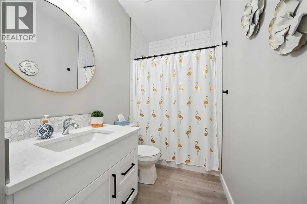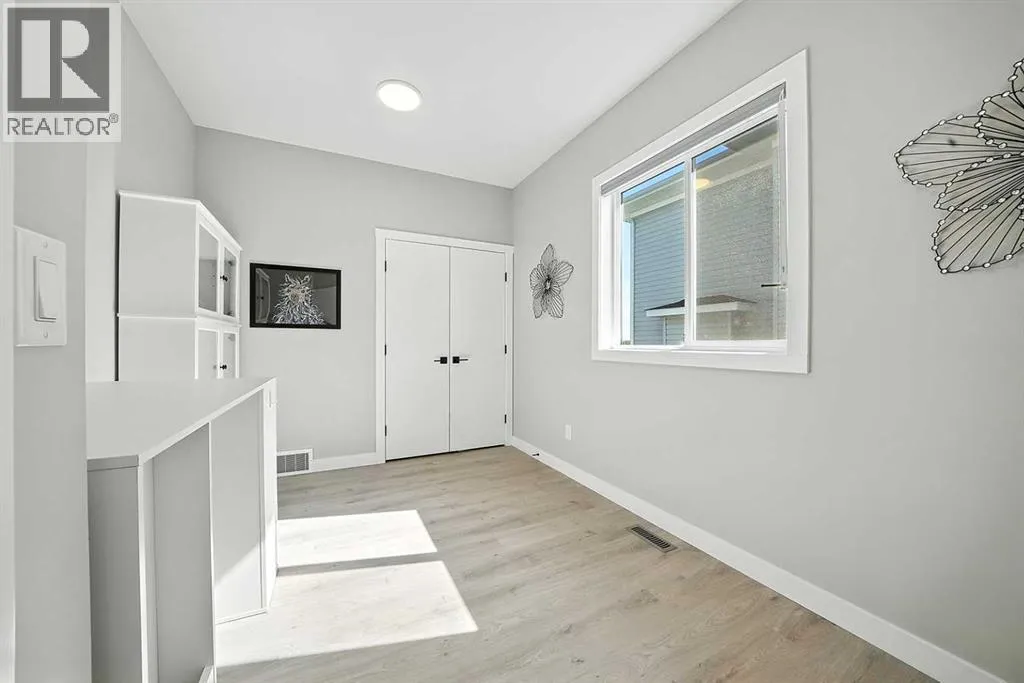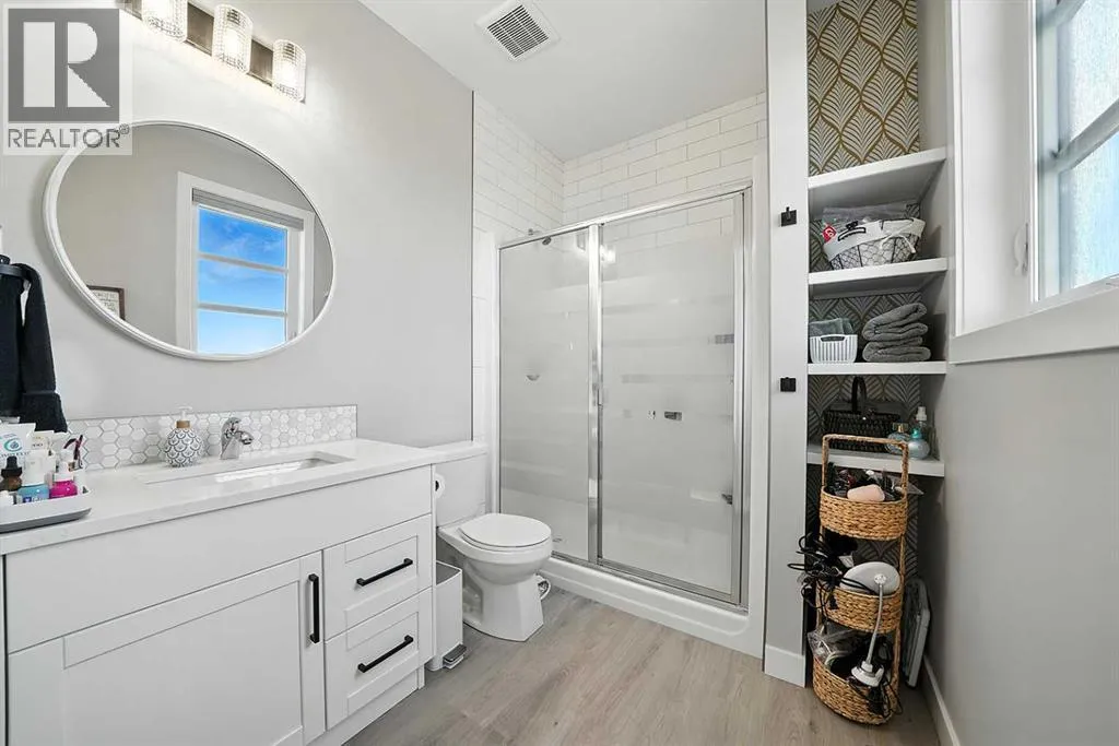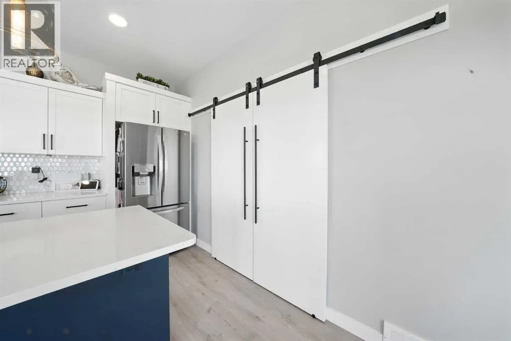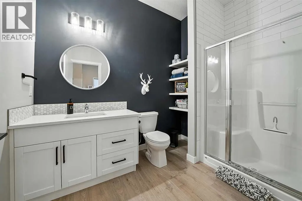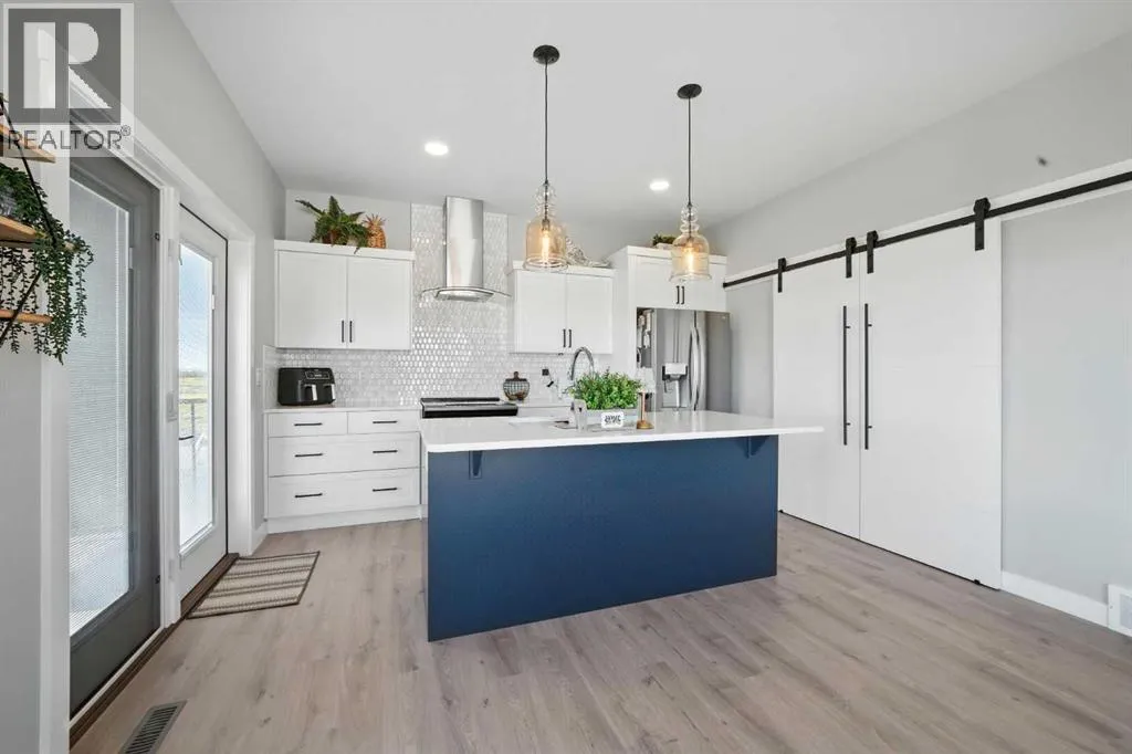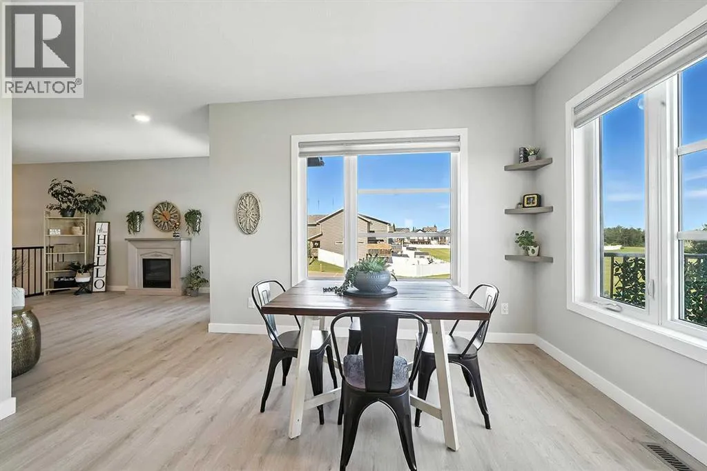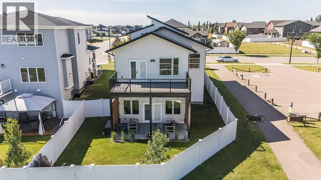Stunning Walk-Out Modified Bi-Level Backing onto a Park!This fully developed custom-built homeâoffering breathtaking views in every direction! Whether itâs glowing sunsets, peaceful sunrises, or the occasional northern lights, the scenery here is simply unforgettable.Step inside to find brand new luxury vinyl plank flooring throughout the main living areas, with cozy carpet in the bedrooms. The bright and spacious living room features an electric fireplace and flows beautifully into the dining area and open-concept kitchen. Youâll love the two-toned cabinetry, quartz countertops, full tile backsplash, coffee bar/pantry, and the oversized breakfast barâperfect for gatherings. Step out onto the full-width dura deck and enjoy summer BBQs while overlooking green space.The main floor offers two bedrooms (one without a closet), plus a generous primary suite complete with a large walk-in closet and a stylish 3-piece ensuite featuring a walk-in shower.Downstairs, the fully finished walk-out basement impresses with 12â ceilings and cozy in-floor heating. Thereâs a fourth bedroom, a huge 3-piece bath, and a spacious rec room with direct access to a private patio and beautifully landscaped, fully fenced yard. This home shows like Brand New! (id:27476)
