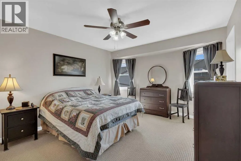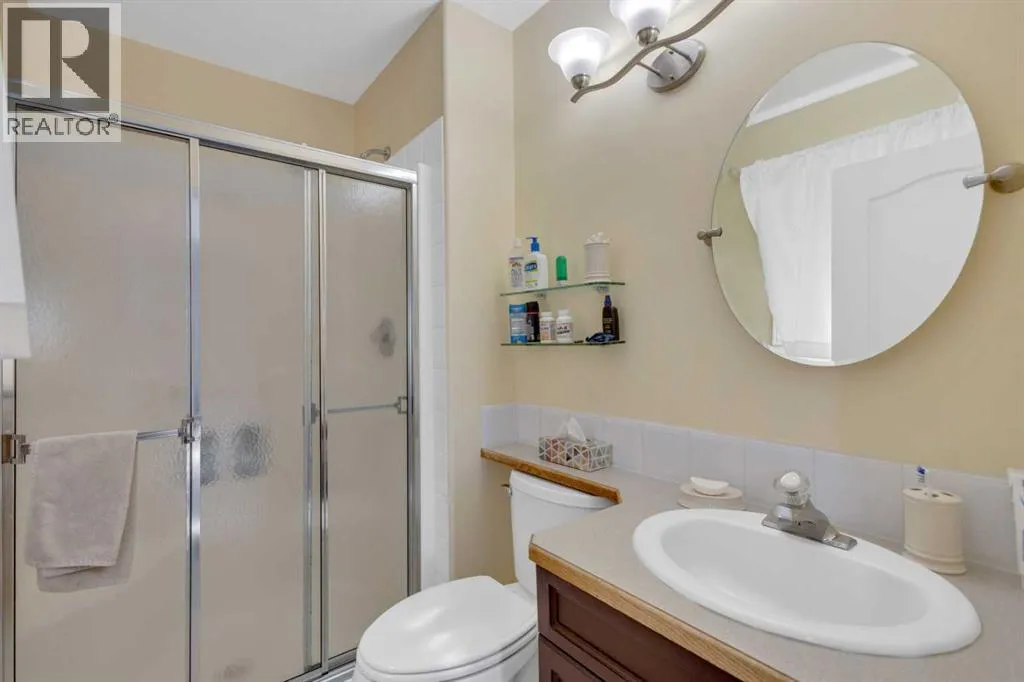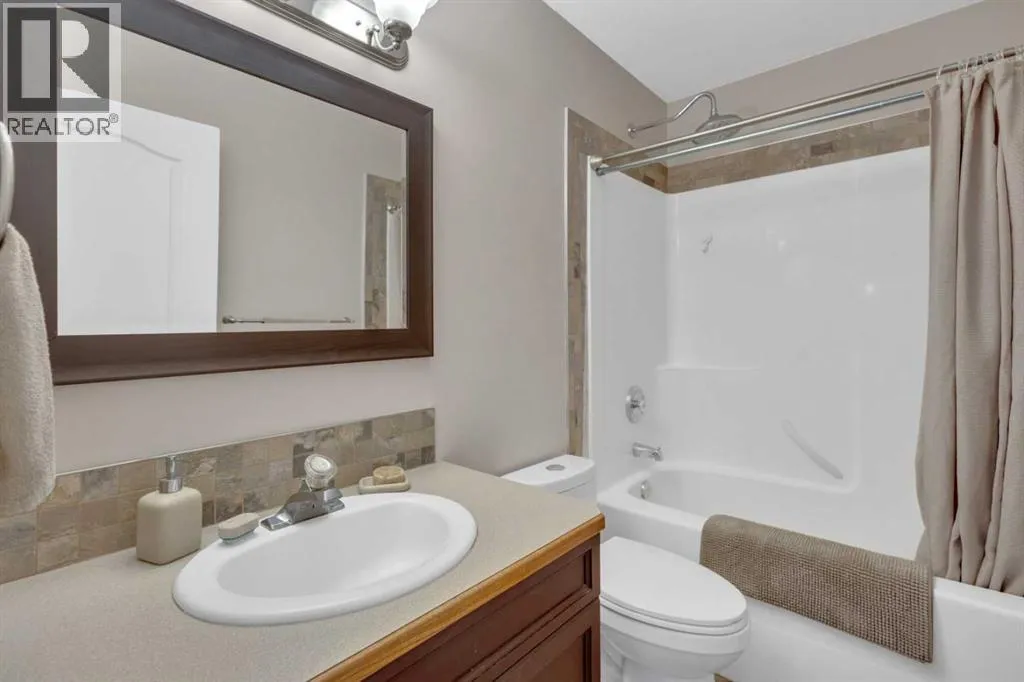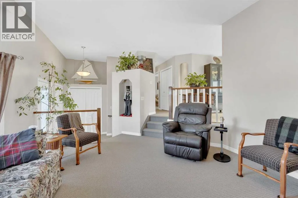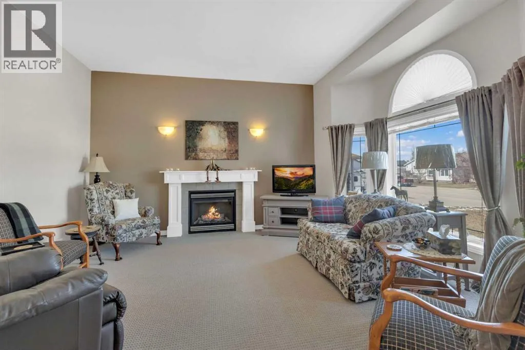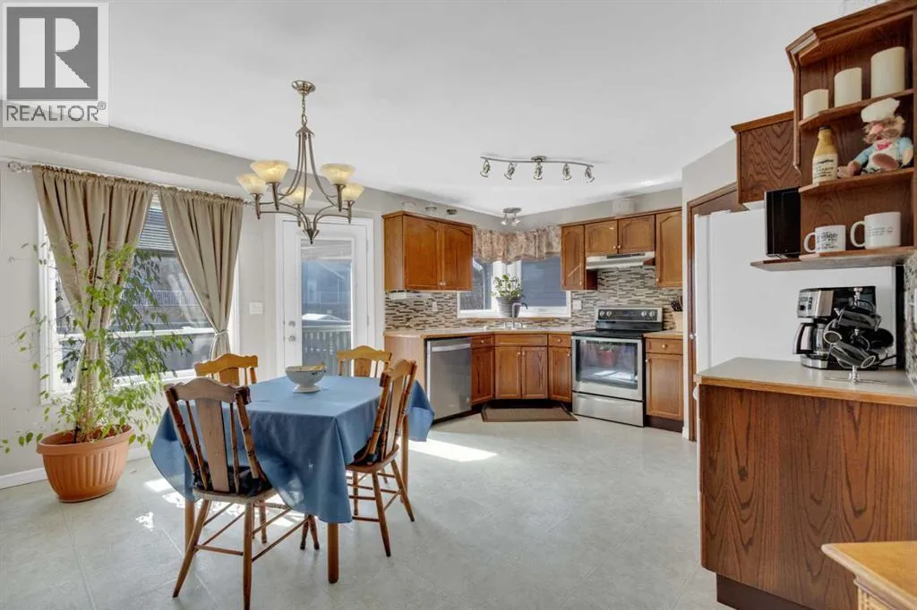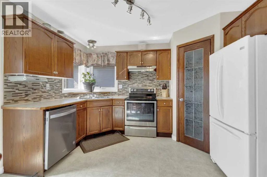 Move-in ready bilevel with an attached garage right in the heart of Blackfalds! Walk into a bright and freshly painted home with a large living room and gas fireplace right off the foyer. You'll fall in love with the dining room and kitchen filled with natural light and gorgeous oak soft-close cabinets. The newer tile backsplash and newer hood fan, stove, oven, and dishwasher are an added bonus.Just in time for Summer barbecues, the deck is right off the dining room and large enough for the whole family and a gas line hookup. Down the hall you will find a good sized bedroom, an updated 4 piece bathroom with tile flooring, and the king-sized primary with a huge walk-in closet and 3 piece ensuite. Spend your evenings in the newly finished basement that features tall ceilings, new potlights, new carpet, and a newly developed family/rec room! Downstairs also features 2 more large bedrooms (no closets), large laundry room, and a beautifully finished newer 4 piece bathroom with tile flooring. You'll also notice the unique custom storage space under the stairs with built in shelving for all your bins! The yard has room for the entire family and also has an RV gate! This home has been absolutely maintained over the years, you aren't going to want to miss this! New hot water tank being installed July 22! (id:27476)
