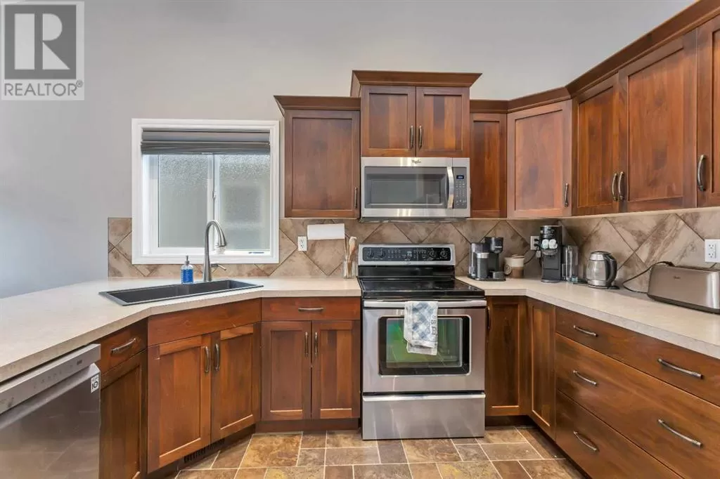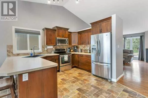 **Back on the Market** Welcome to Cottonwood Estates in family friendly Blackfalds!! This quiet neighbourhood is close to Schools, parks and shopping. A beautiful 1300+ sq ft Bungalow featuring 5 bedrooms, 3 bathrooms with a large double attached heated garage. The home boasts an open concept main floor with vaulted ceilings and large windows for that warm natural light. The u-shaped kitchen features a breakfast bar, ideal for entertaining, with plenty of rich cabinetry and counter space, and a pantry for extra storage. Plenty of room to host gatherings or entertain family and friends in the spacious Living Room. Retreat to the Primary bedroom complete with a walk-in closet and a 3pc ensuite for those relaxing days. A full 4pc bathroom and 2 more good sized bedrooms can be found on the main floor. Stay active in the fully finished basement with IN-FLOOR HEATING throughout. Bring your games to the enormous family room, 2 large bedrooms, another 4pc bathroom, and an oversized utility/laundry room with plenty of storage finish off of the well laid out lower level. Enjoy summer barbecues on the east facing deck overlooking the fully fenced and landscaped yard. The oversized HEATED garage has plenty of room for storage and parking. Sellers are MOTIVATED and open to earlier possession date! **Seller is continuing to update the interior of the home** (id:27476)
