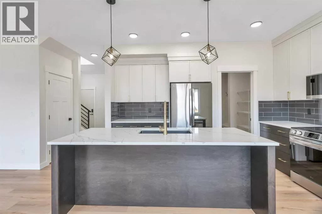Welcome to 13 Murphy Close, a 1,890 sqft two-storey home built by Manhani Builders, a 5-Star Central Alberta home builder. This home is located in the neighbourhood of McKay Ranch, Blackfalds. Carefully crafted for comfortable living, it boasts a desirable location near trails and parks. The spacious layout and thoughtful design elements create a stylish living experience. Highlights include a walkthrough pantry, second-floor laundry, a large bonus living room, upgraded carpeting, vinyl flooring, and large windows that fill the home with natural light. The kitchen features a mix of painted and stained maple cabinets, quartz countertops, and an upgraded stainless steel appliance package. The primary bedroom offers privacy with a walk-in closet, ensuite, and optional access to the laundry room. The 24x24 garage accommodates two vehicles comfortably, and the exterior blends vinyl, stone, window trims, and wood-grain paneling. Enjoy outdoor spaces with a composite front porch and a 12'x14' treated wood back deck. Additional features include a roughed-in garage heater, roughed-in in-floor heating, and potential for future basement development. A high-efficiency furnace and HRV system ensure clean air and a comfortable temperature throughout the home. Available for quick possession. This home is protected with a certified 10-year Progressive Home Warranty. Welcome to 13 Murphy Close, where comfortable living meets modern charm. (30946450) (id:27476)