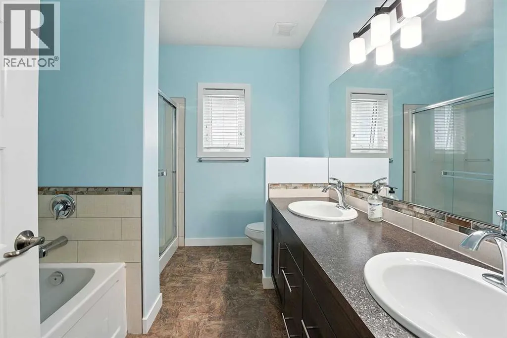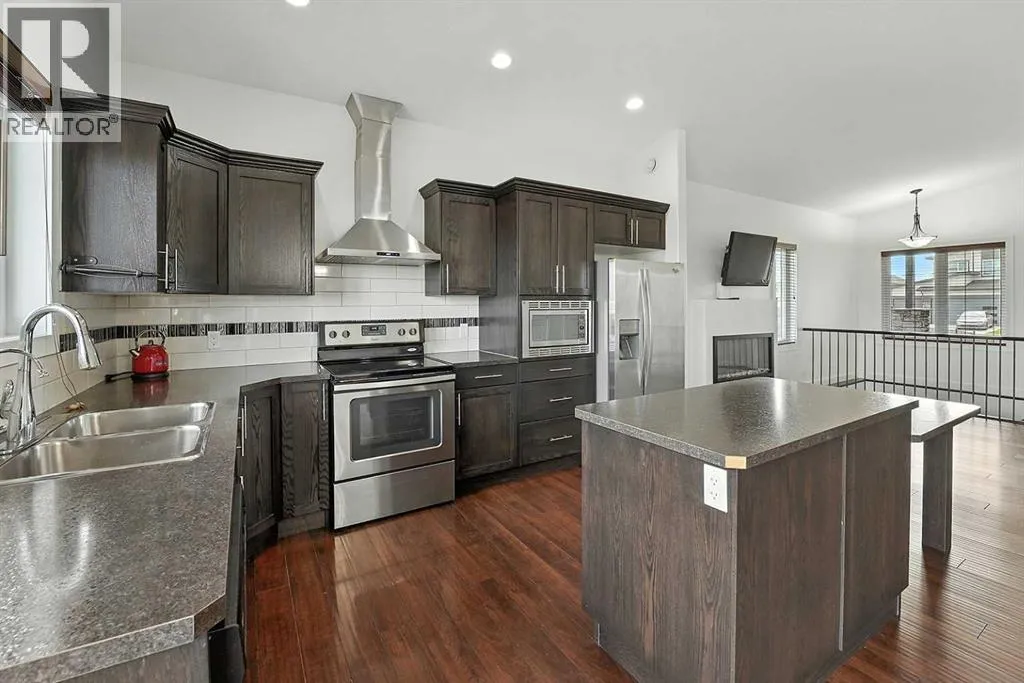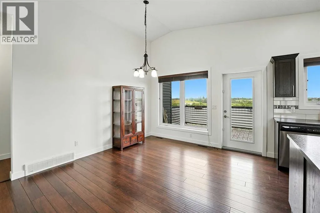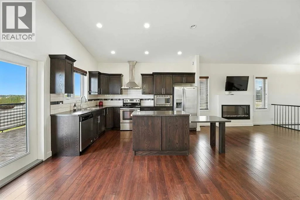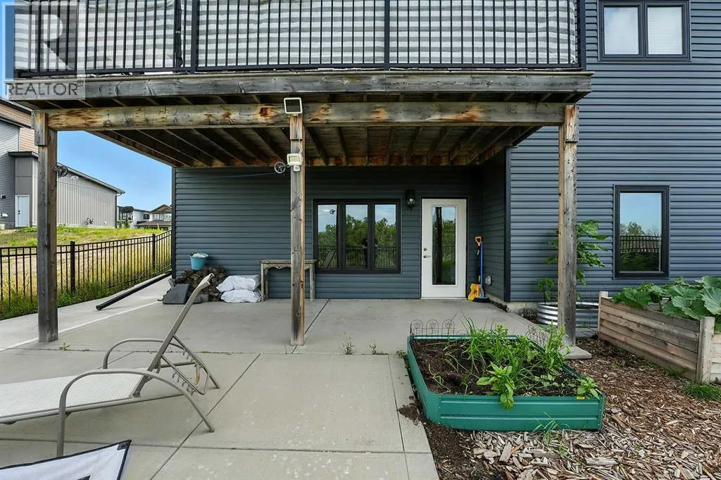 Step into this stunning 3-bedroom, 2-bathroom bungalow in the heart of Blackfaldsâ desirable Vista Trail neighbourhood. Built in 2015, this home offers a bright open concept living space, wheelchair accessibility, and a fully finished walkout basement perfect for entertaining or family living. Enjoy stunning sunsets and peaceful views in this thoughtfully designed home, complete with an elevator for seamless access between both levels. From the moment you arrive, the bright, open concept main floor welcomes you with vaulted ceilings, dark laminate flooring, and a perfect blend of spaciousness and cozy warmth.A large west facing window fills the living area with natural light and frames beautiful marshland views, where an abundance of birds and wildlife create a tranquil backdrop. The modern kitchen features stainless steel appliances, a generous island, abundant cabinetry for seamless storage and plenty of counter space for effortless meal prep. From the dining room, step through patio doors to an expansive deck overlooking the backyard, an ideal spot for morning coffee, evening sunsets, or entertaining friends.The main level also offers two large bedrooms and a full bathroom. Head downstairs via the expansive stairway or custom installed elevator to discover a beautifully designed lower level with in-floor heating, a spacious entertainment area, a secondary kitchen with mini fridge and microwave, a large bedroom, and an oversized custom built bathroom with a walk-in shower. The walkout leads to a fenced backyard featuring raised garden beds, rhubarb, raspberry, and strawberry bushes, a gardenerâs delight. Stay warm and protected year-round with the convenience of a spacious double car garage.This home has been thoughtfully crafted for comfort and convenience. Wide doorways, step free entry, and barrier free transitions ensure smooth flow throughout, while accessible counters, lever style handles, and well placed switches add everyday ease. Whether needed today or appreciated in the future, these features provide rare peace of mind. Quiet, family friendly neighbourhood with easy access to all amenities including schools, shopping, parks, and a community bus. Perfectly located between Calgary and Edmonton also just minutes from Red Deer. (id:27476)