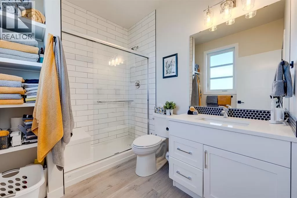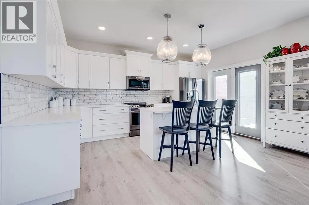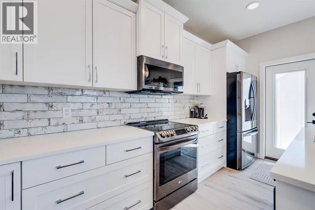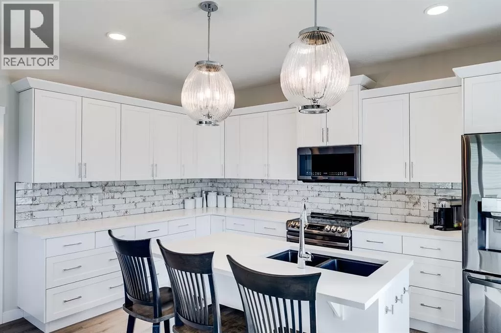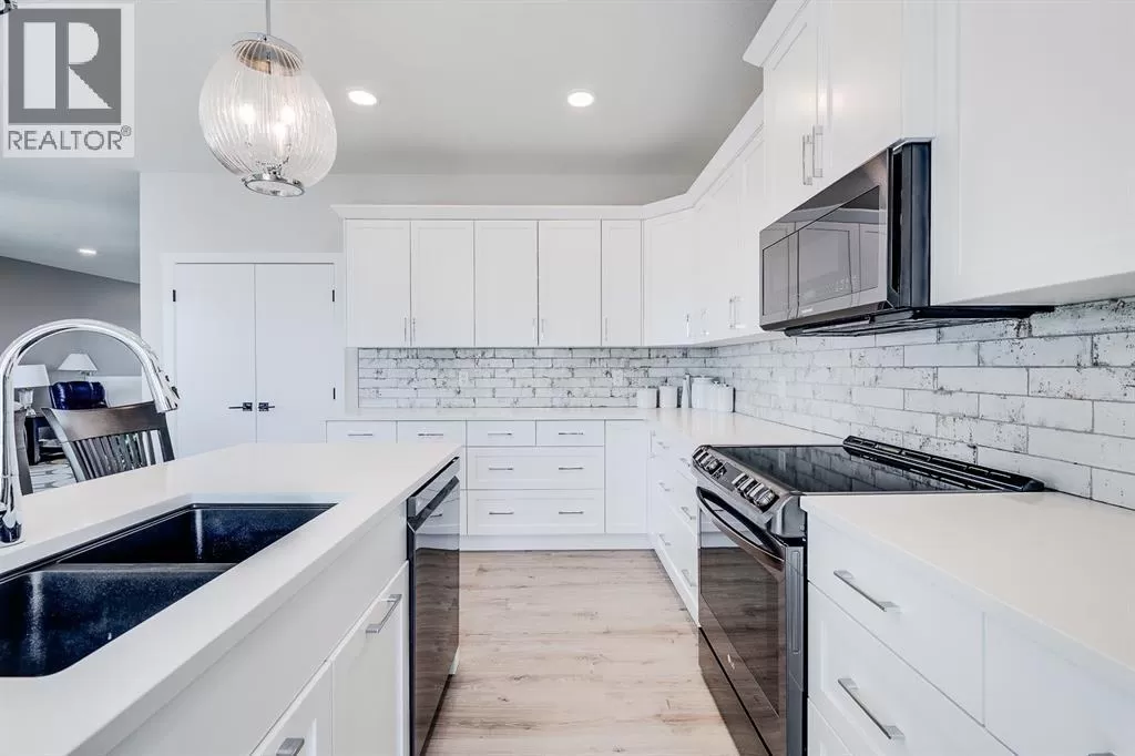 Welcome home to this stunning newly built 5 bedroom 3 bathroom modified bi-level on a quiet close in McKay Ranch in Blackfalds. This home offers the perfect blend of functionality and contemporary elegance. This home has a thoughtful layout with large bedrooms, ideal for families or anyone who loves to entertain in style. Step into a bright and airy open-concept main floor featuring white finishes throughout, enhancing the fresh, modern feel. The gourmet kitchen is equipped with sleek quartz countertops, upgraded applicances perfect for cooking or hosting guests, and flows seamlessly into the generous dining area â big enough for holiday gatherings or cozy family dinners. While the lower level features a cozy rec space and a built-in bar â the ultimate hangout spot for game nights or casual get-togethers. Comfortable year-round with central air conditioning, and enjoy the convenience of a heated garage â a must-have during colder months. Additional highlights include back alley access, in-floor heating in the basement and a layout thatâs as functional as it is stylish. This home checks all the boxes: modern finishes, spacious design, and quality craftsmanship throughout. Don't miss your chance to own this incredible property! (id:27476)