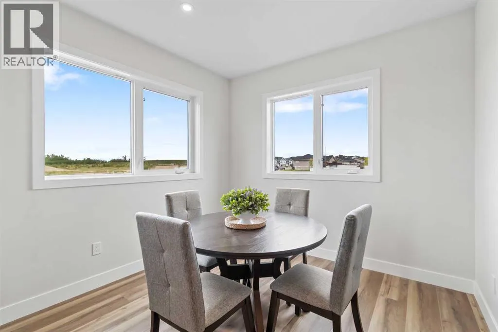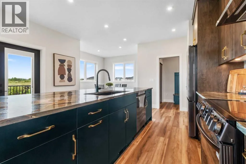 Brand new and ready for your family! This custom-built 2-storey walkout home by award-winning Ridgestone Homes offers 5 bedrooms, 3.5 bathrooms, and thoughtful design throughout. A covered front porch welcomes you into the open-concept main floor featuring a spacious kitchen, dining area, and living roomâperfect for everyday living and entertaining. Step out onto the deck from the kitchen and enjoy views of the playground right behind your backyard vinyl fence.Upstairs, youâll find the perfect layout for a young family: 4 bedrooms on one level, including a primary suite with a 3-piece ensuite and walk-in closet, a 4-piece main bath, and convenient upper-floor laundry.The fully finished walkout basement offers a large rec room with a wet bar, the 5th bedroom, and another full bath. A triple attached garage completes this incredible home.Donât miss this rare opportunity to own a stunning new build in a family-friendly location! (id:27476)
