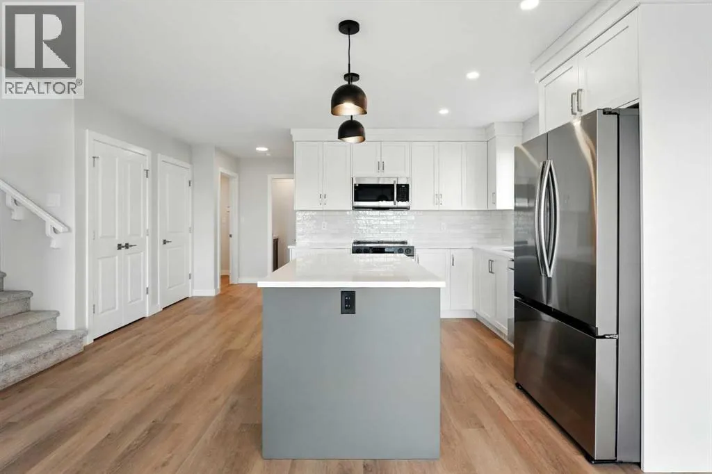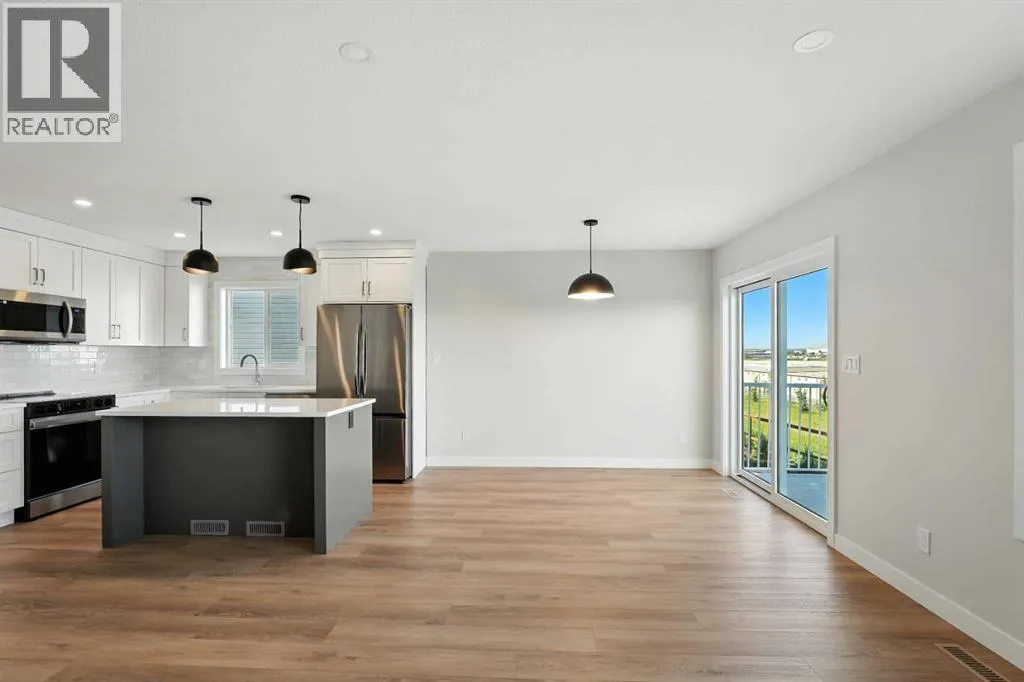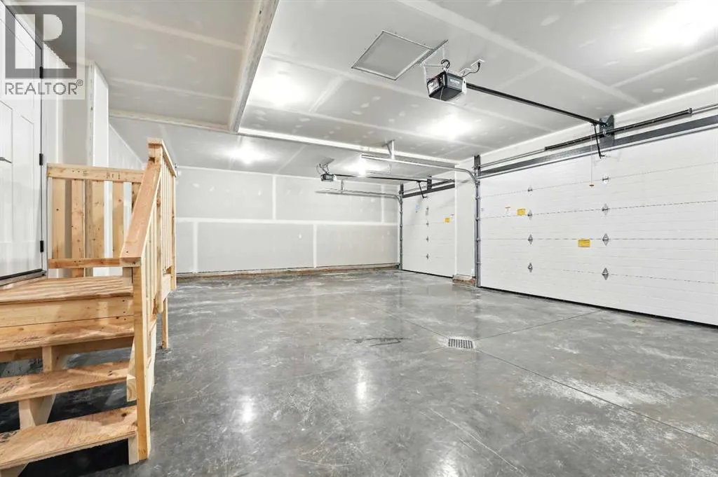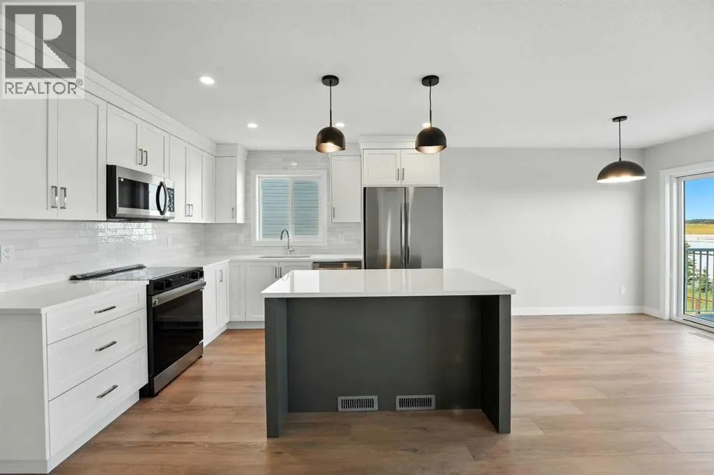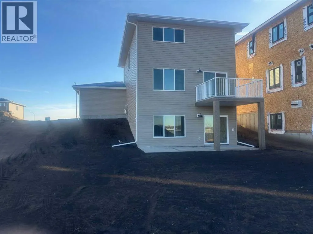 A brand new Larkaun Homes two storey with a front attached triple car garage and a walk-out basement! The curb appeal is accented by the composite-covered front veranda. The front entryway greets you with luxury vinyl plank flooring that spans the entire main floor. Two-toned ceiling height kitchen cabinets are complemented by full tile subway backsplash, quartz countertops, crown moldings, pot/pan drawers and an eating bar island. The dining room has patio doors out to the upper level deck that has a view to the west. The living room is flooded with natural light through the large picture window. You'll appreciate the large back entry way that leads to the triple car garage that boasts 2 floor drains and rough in gas for a future heater. Follow the wrought iron railings up to the second floor. The primary bedroom has a walk-in closet & a 3-piece ensuite with a raised vanity, drawers & a window. There are 2 more bedrooms & a 4-piece bathroom that has a jack & jill divider pocket door for functionality. You'll appreciate the convenience of the upper-floor laundry room. The walk-out basement is ready for your development with rough in underfloor heat and patio doors out to a 10x23 concrete pad and fenced yard. The home includes front sod. (id:27476)