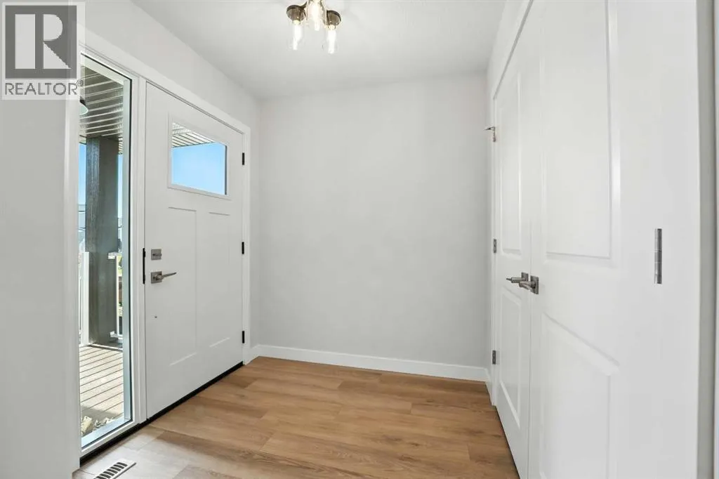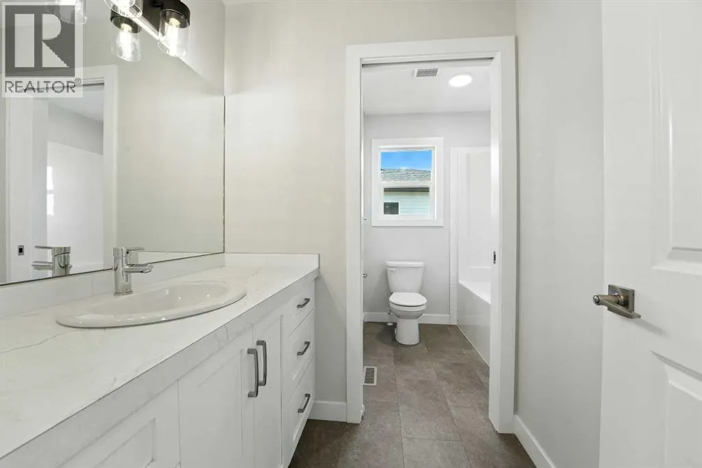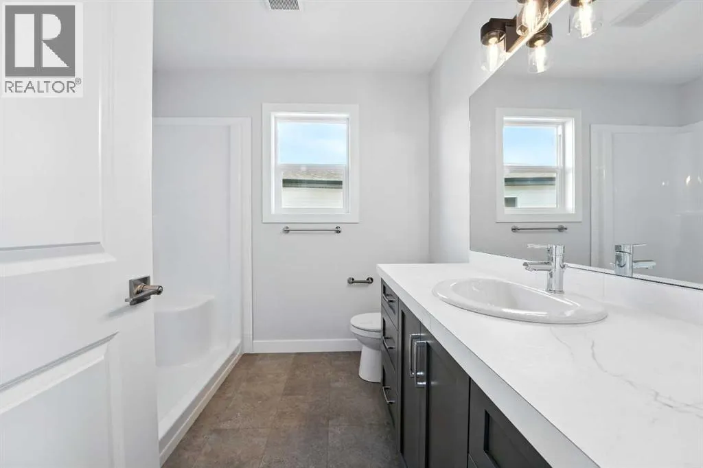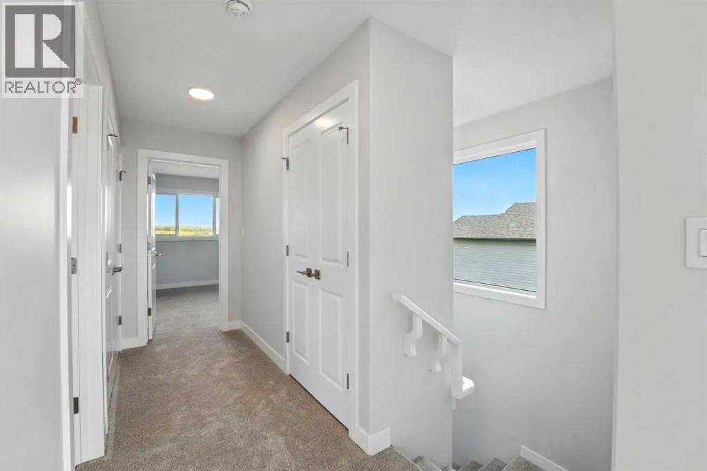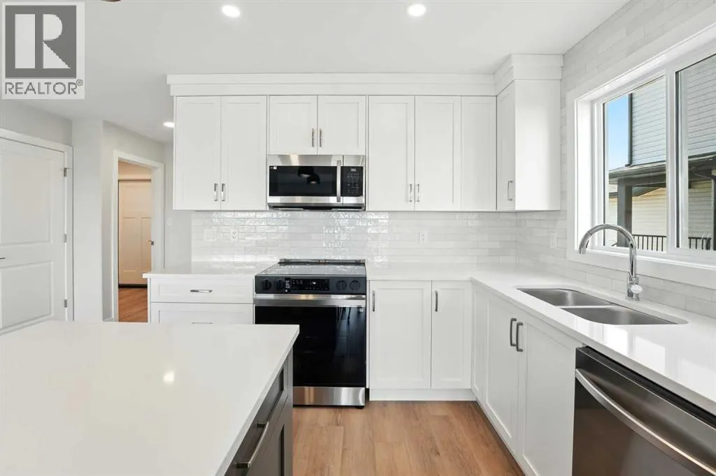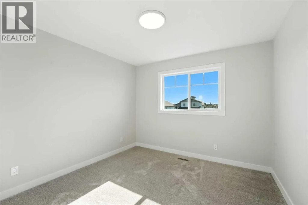 A brand new Larkaun Homes two storey with a front attached triple car garage and a walk-out basement! The curb appeal is accented by the composite-covered front veranda. The front entryway greets you with luxury vinyl plank flooring that spans the entire main floor. Two-toned ceiling height kitchen cabinets are complemented by full tile subway backsplash, quartz countertops, crown moldings, pot/pan drawers and an eating bar island. The dining room has patio doors out to the upper level deck that has a view to the west. The living room is flooded with natural light through the large picture window. You'll appreciate the large back entry way that leads to the triple car garage that boasts 2 floor drains and rough in gas for a future heater. Follow the wrought iron railings up to the second floor. The primary bedroom has a walk-in closet & a 3-piece ensuite with a raised vanity, drawers & a window. There are 2 more bedrooms & a 4-piece bathroom that has a jack & jill divider pocket door for functionality. You'll appreciate the convenience of the upper-floor laundry room. The walk-out basement is ready for your development with rough in underfloor heat and patio doors out to a 10x23 concrete pad and fenced yard. The home includes front sod. (id:27476)