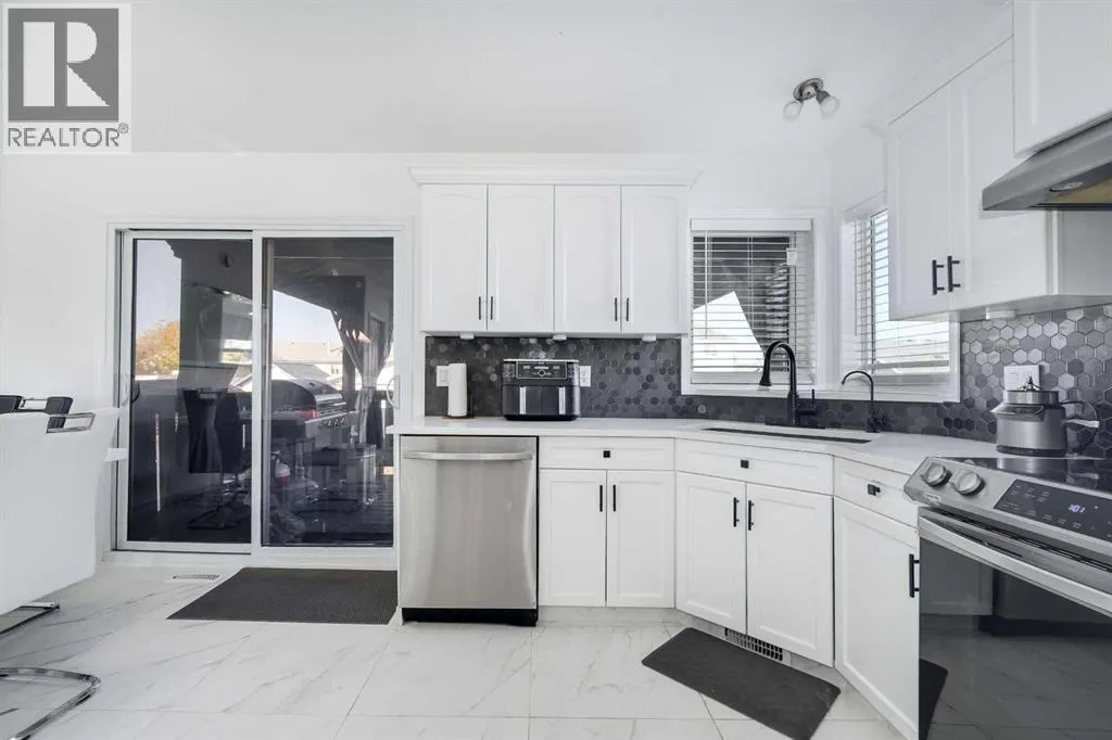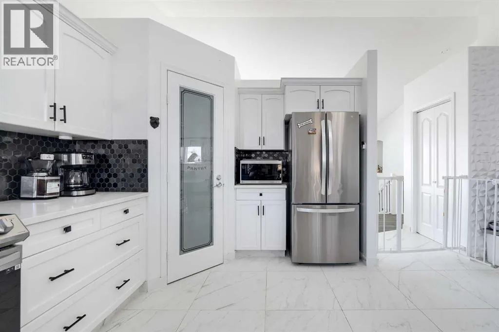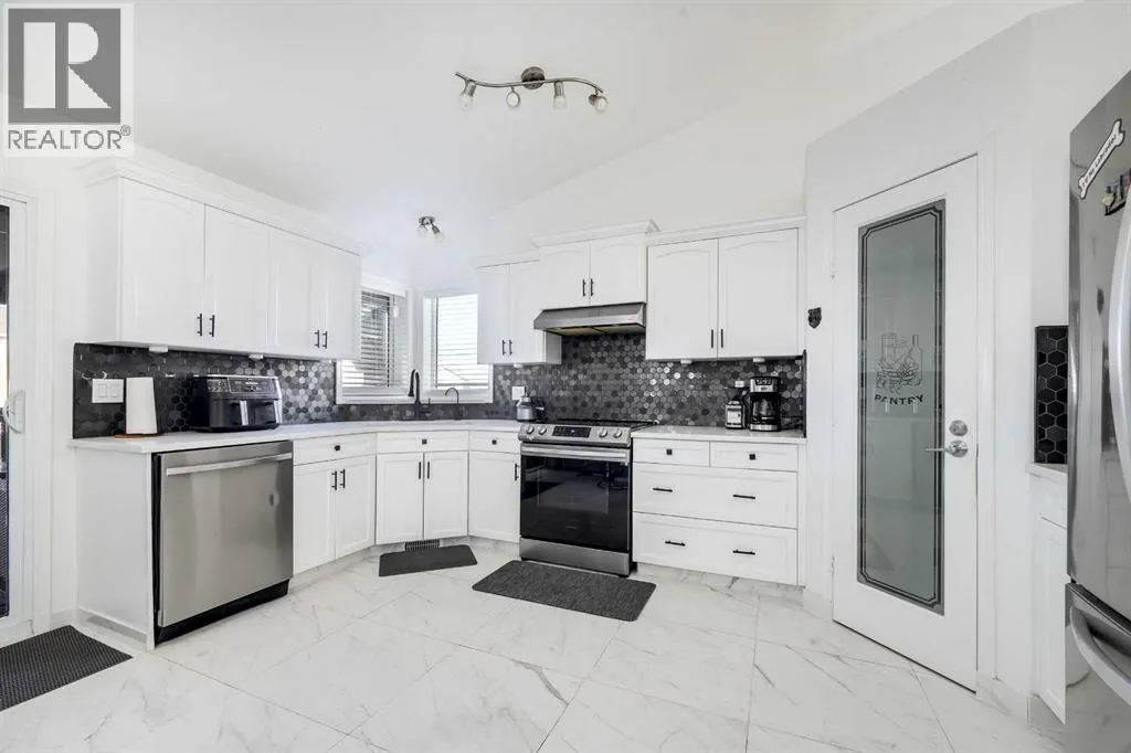 This fully developed family friendly Bi-Level offers a spacious & functional floor plan with 4 bedrooms & 3 bathrooms. The main floor is bright & inviting with vinyl flooring & porcelain tile throughout. This home is light and bright with large windows and vaulted ceilings offering plenty of natural light and modern feel has been created throughout the home with 3D decor wall, upgraded lighting, paint, flooring. The kitchen boosts plenty of cabinetry, stone counter tops, a large corner pantry, upgraded appliances, and dining area perfect for entertaining. Relax in the large master bedroom with double closets & a beautiful 4pc ensuite. One more good sized bedroom & 4pc bathroom completes the main level space. The fully finished basement offers a large family room, two more generously sized bedrooms, a 3pc bathroom, separate laundry room, and plenty of storage. Take the entertaining outside to the west facing deck complete with Gazebo overlooking the fully fenced yard with a fire-pit area, and large Shed 20 x 14 giving you plenty of extra outside storage. This home has an attached heated garage with lots of cabinetry storage and deep freezer. Located close to several walking paths and playgrounds. Its time for you to call Blackfalds your new home! (id:27476)